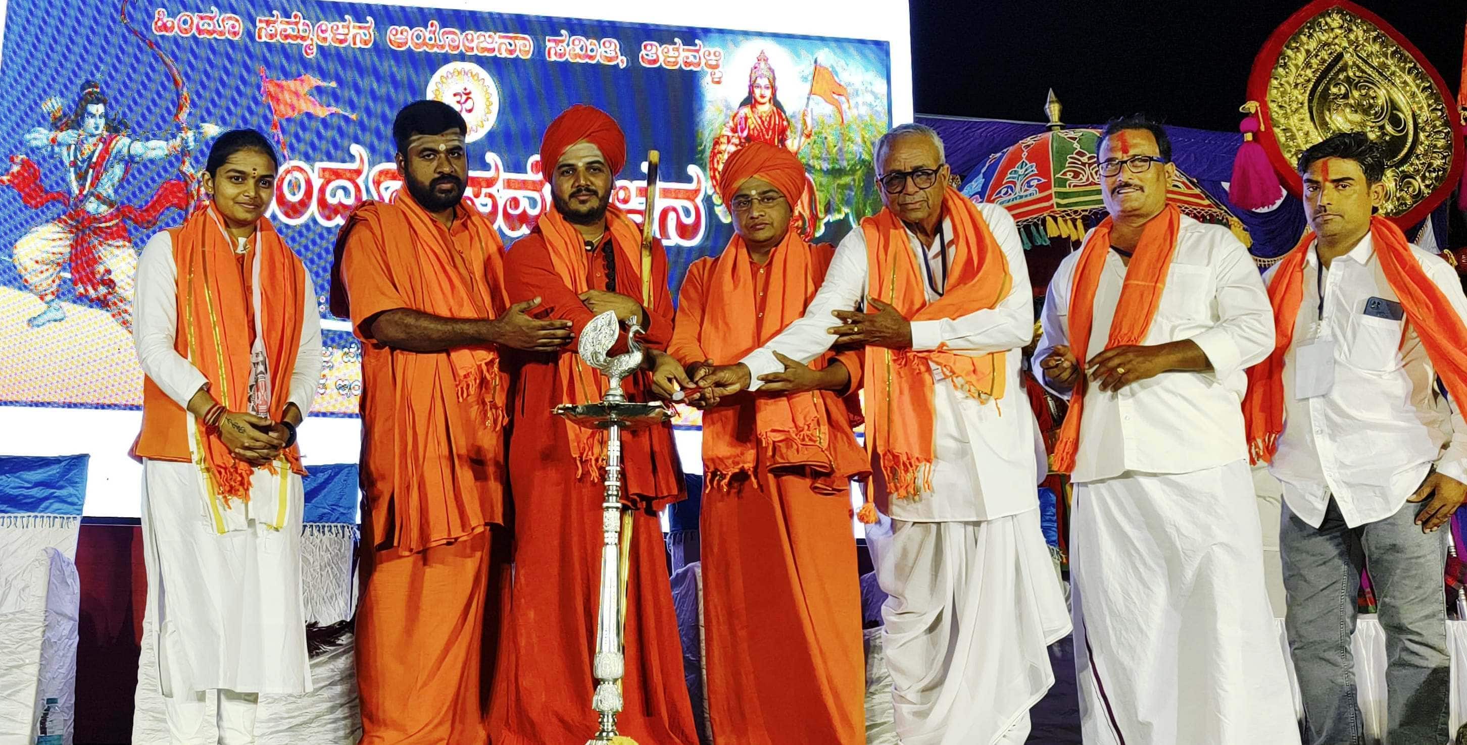 ನನ್ನ ಬದುಕು ಇಡೀ ಸಮಾಜಕ್ಕೆ, ಪ್ರಕೃತಿಗೆ ಮೀಸಲು ಎನ್ನುವವರು ಹಿಂದೂಗಳು. ಇಂತಹ ವಿಚಾರವನ್ನು ಜಗತ್ತಿಗೆ ಕೊಟ್ಟಿದ್ದು ಭಾರತ. ನಮ್ಮ ಸಂಸ್ಕೃತಿ ಬಗ್ಗೆ ನಮಗೆ ಹೆಮ್ಮೆಯಿದೆ. ಊರು, ಓಣಿ ನಮ್ಮದು ಎನ್ನುವುದು ಹಿಂದೂವಿನ ಗುಣ. ಪರಿಸರ ಸಂರಕ್ಷಣೆಯಲ್ಲಿ ಪಾಲ್ಗೊಳ್ಳಬೇಕು. ಪೂರ್ವಜರ ಪದ್ಧತಿ, ಆಚರಣೆಗಳನ್ನು ಪಾಲಿಸಬೇಕು. ಹಿಂದೂ ಸಮಾಜ ಶಕ್ತಿಶಾಲಿಯಾಗಬೇಕು. ಹಿಂದೂ ಸಮಾಜವನ್ನು ಸಂಘಟಿಸುವ ಕೆಲಸವಾಗಬೇಕು ಎಂದು ಕರೆ ನೀಡಿದರು.ಹಿಂದೂ ಸಮ್ಮೇಳನದ ಮುಖ್ಯ ವಕ್ತಾರರಾಗಿದ್ದ ಹಾರಿಕಾ ಮಂಜುನಾಥ ಮಾತನಾಡಿ, ನಮ್ಮ ದೇಶದಲ್ಲಿ ಸಂಸ್ಕೃತಿ, ಸಂಪ್ರದಾಯ, ಖನಿಜ ಸಂಪತ್ತಿಗೆ ಕೊರತೆ ಇಲ್ಲ. ಆದರೆ ನಮ್ಮಲ್ಲಿ ಇಚ್ಛಾಶಕ್ತಿಯ ಕೊರತೆ ಇದೆ. ಇಚ್ಛಾಶಕ್ತಿ ಇದ್ದರೆ ಯಾವುದೂ ಅಸಾಧ್ಯವಲ್ಲ. ಮೊದಲು ನಾನು ಹಿಂದೂ, ನಾನು ಭಾರತೀಯ ಎನ್ನುವ ಭಾವ ಮೂಡಬೇಕು. ಅಂದಿನಿಂದ ಇಲ್ಲಿಯವರೆಗೂ ಸನಾತನ ಧರ್ಮ ಹಿಂದೂಗಳ ಸಂಘಟನೆ ಮಾಡುವಲ್ಲಿ ನಿರತವಾಗಿದೆ. ಹಿಂದೂಗಳಲ್ಲಿ ನೂರಾರು ಜಾತಿಗಳಿವೆ. ಇವರೆಲ್ಲರೂ ತಮಗಿಷ್ಟವಾದ ದೇವರನ್ನು ಪೂಜೆ ಮಾಡಬಹುದು. ನಮ್ಮ ಹಿಂದೂ ಧರ್ಮ ಭವ್ಯ ಪರಂಪರೆಯನ್ನು ಹೊಂದಿದೆ. ಹಿಂದೂ ಸಂಸ್ಕೃತಿ, ಸಮಾಜವನ್ನು ಇಂದು ನಾವೆಲ್ಲರೂ ಒಗ್ಗೂಡಿಸಲು ಶ್ರಮಿಸಬೇಕು. ರಾಮ, ಕೃಷ್ಣ, ವಾಲ್ಮೀಕಿ, ವ್ಯಾಸ, ಶಿವಾಜಿ ಈ ರೀತಿ ಅನೇಕ ಮಹನೀಯರನ್ನು ನಾವು ಜಾತಿಗೆ ಸೀಮಿತ ಮಾಡಿ ಅನುಸರಿಸೊಲ್ಲ. ಆ ರೀತಿ ಹಿಂದೂ ಧರ್ಮದಲ್ಲಿ ಯಾವುದೇ ಜಾತಿಗಳಿರಲಿ, ಯಾವುದೇ ದೇವರನ್ನು ಪೂಜಿಸಲಿ, ನಾವೆಲ್ಲರೂ ಹಿಂದೂಗಳು ಎಂಬ ಏಕತಾಭಾವ ಮರೆಯಬಾರದು ಎಂದರು.ಹಿಂದೂ ಸಮ್ಮೇಳನದ ಅಧ್ಯಕ್ಷ ಗಣೇಶಪ್ಪ ಕೋಡಿಹಳ್ಳಿ, ತಿಳವಳ್ಳಿ ಕಲ್ಮಠದ ಬಸವನಿರಂಜನ ಮಹಾಸ್ವಾಮಿಗಳು, ಘೋಡಗೇರಿಯ ಪ್ರಭುಲಿಂಗ ಮಹಾಸ್ವಾಮಿಗಳು, ಹಿಂದೂ ಸಮ್ಮೇಳನ ಆಯೋಜನಾ ಸಮಿತಿ ಸದಸ್ಯರು ಹಾಗೂ ಎಲ್ಲ ಸಮಾಜದ ಮುಖಂಡರುಗಳು ಪಾಲ್ಗೊಂಡಿದ್ದರು. ಭವ್ಯ ಶೋಭಾಯಾತ್ರೆ: ಸಮ್ಮೇಳನದ ನಿಮಿತ್ತ ಗ್ರಾಮದ ವೀರಭದ್ರೇಶ್ವರ ದೇವಸ್ಥಾನದಲ್ಲಿ ಗೋಮಾತೆಗೆ ಪೂಜೆ ಸಲ್ಲಿಸುವ ಮೂಲಕ ಆರಂಭಗೊಂಡ ಶೋಭಾಯಾತ್ರೆ, ಗ್ರಾಮದ ಮಡಿವಾಳರ ಓಣಿ, ಕರೇಗಲ್ಲ ಸರ್ಕಲ್, ಹನುಮಂತ ದೇವಸ್ಥಾನದ ರಸ್ತೆ, ಪೇಟೆ ಓಣಿ ಹಾಗೂ ಹರ್ಡೀಕರ ಸರ್ಕಲ್ ಮೂಲಕ ಶಾಂತೇಶ್ವರ ಪ್ರೌಢ ಶಾಲಾ ಆವರಣಕ್ಕೆ ಬಂದು ತಲುಪಿತು. ಶೋಭಾ ಯಾತ್ರೆಯಲ್ಲಿ ಸಾವಿರಾರು ಹಿಂದೂಗಳು ಭಾಗವಹಿಸಿ ಭಾರತ್ ಮಾತಾ ಕೀ ಜೈ ಸೇರಿದಂತೆ ದೇಶಭಕ್ತಿಯ ಘೋಷಣೆಗಳನ್ನು ಹಾಕಿದರು. ವಿವಿಧ ಕಲಾ ತಂಡಗಳು ವಾದ್ಯ ಮೇಳಗಳು, ಟ್ರ್ಯಾಕ್ಟರ್ಗಳಲ್ಲಿ ಭಾರತ ಮಾತೆ ಪೋಟೊ ಸೇರಿದಂತೆ ವಿವಿಧ ಸಮಾಜದ ಕುಲ ದೇವರುಗಳು, ಸಂತರು, ಶರಣರು, ಮಹಾತ್ಮರು ಹಾಗೂ ದೇಶದ ಮಹಾನ ನಾಯಕರ ಸ್ತಬ್ಧ ಚಿತ್ರಗಳು ಗಮನ ಸೆಳೆದವು.ಹಿಂದೂ ಸಮಾಜ ಒಗ್ಗೂಡಿಸುವ ಪ್ರಯತ್ನವಾಗಬೇಕು-ಸ್ವಾಮೀಜಿ