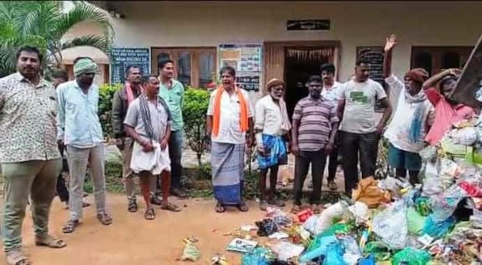 ಪೋಟೋ 1 :ಸೋಂಪುರ ಪಂಚಾಯಿತಿ ಕಚೇರಿ ಮುಂದೆ ಕಸ ಸುರಿದು ಪ್ರತಿಭಟನೆ ನಡೆಸಿದ ತಿಮ್ಮನಾಯಕನಹಳ್ಳಿ ಗ್ರಾಮಸ್ಥರು.