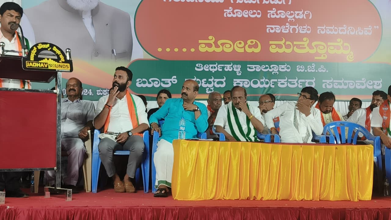 ಲೋಕಸಭಾ ಕ್ಷೇತ್ರದ ಬಿಜೆಪಿ ಅಭ್ಯರ್ಥಿ ಬಿ.ವೈ.ರಾಘವೇಂದ್ರ ಮಾತನಾಡಿ, ಪಕ್ಷದ ಕಾರ್ಯಕರ್ತರ ನಿಸ್ವಾರ್ಥ ನೆರವಿನ ಫಲವಾಗಿ ಪುರಸಭೆಯಿಂದ ಮೂರು ಬಾರಿ ಪಾರ್ಲಿಮೆಂಟಿನ ಸದಸ್ಯನಾಗುವ ಅವಕಾಶ ದೊರೆತಿದೆ. ಈ ಅವಧಿಯಲ್ಲಿ ಶಕ್ತಿ ಮೀರಿ ಕೆಲಸ ಮಾಡಿದ ತೃಪ್ತಿಯೂ ಇದೆ. ನಿಮ್ಮೆಲ್ಲರ ಆಶೀರ್ವಾದದಿಂದ ನಾಲ್ಕನೇ ಬಾರಿಗೆ ಗೆಲ್ಲುವ ಭರವಸೆಯೂ ಇದೆ ಎಂದು ವಿಶ್ವಾಸ ವ್ಯಕ್ತಪಡಿಸಿದರು.ನೂರಾರು ಕಾರ್ಯಕರ್ತರ ಬಲಿದಾನದ ಮೂಲಕ ನರೇಂದ್ರ ಮೋದಿಯವರ ನೇತೃತ್ವದಲ್ಲಿ ರಾಮಮಂದಿರ ನಿರ್ಮಾಣವಾಗಿದೆ. ಭಾರತ ವಿಶ್ವಗುರು ಆಗುವ ನಿಟ್ಟಿನಲ್ಲಿ ಮತ್ತೊಮ್ಮೆ ಮೋದಿ ಪ್ರಧಾನಿಯಾಗುವುದು ಶತಃಸಿದ್ಧ. ಪಕ್ಷಕ್ಕೆ ಶಕ್ತಿ ತುಂಬಿದ ಈ ಕ್ಷೇತ್ರದಲ್ಲಿ ಜೆಡಿಎಸ್ ಬಂಧುಗಳ ಜೊತೆ ಹಾಲು ಜೇನಿನಂತೆ ಬೆರೆತು ಮೋದಿಯವರ ಕೈ ಬಲಪಡಿಸಲು ಕಾರ್ಯಕರ್ತ ಬಂಧುಗಳ ಸಹಕರಿಸಬೇಕು. ಸಚಿವ ಮಧು ಬಂಗಾರಪ್ಪ ಅಧಿಕಾರದ ಮದದಿಂದ ಪಕ್ಷದ ಕಾರ್ಯಕರ್ತರ ಕುರಿತು ಆಡಿರುವ ಮಾತುಗಳು ಖಂಡನೀಯ ಎಂದೂ ಹೇಳಿದರು.