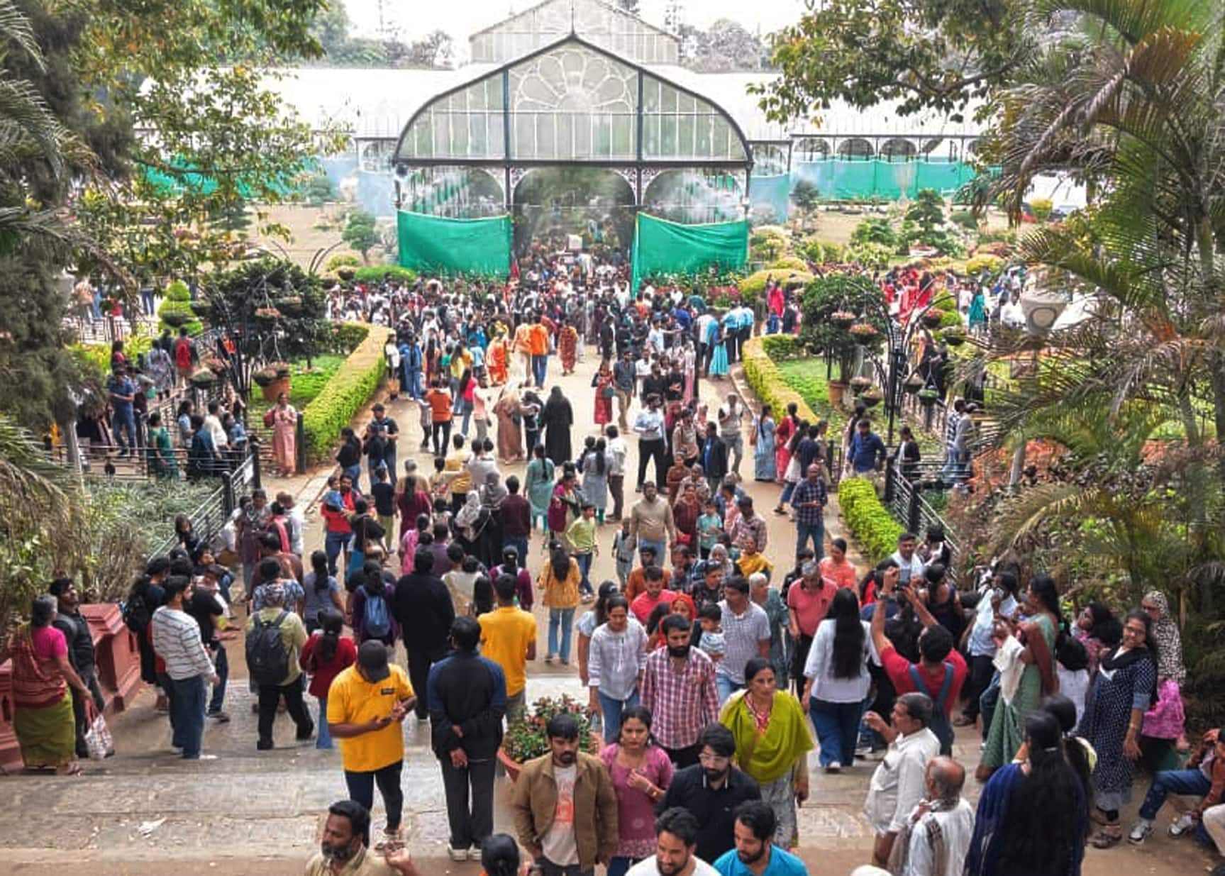 ನೋಡುಗರು ಹೆಚ್ಚಿನ ಸಂಖ್ಯೆಯಲ್ಲಿ ಆಗಮಿಸಿದ್ದುದರಿಂದ ಗಾಜಿನ ಮನೆ ಪ್ರವೇಶಿಸಲು ಉದ್ದನೆಯ ಸರತಿ ಸಾಲು ಕಂಡುಬಂತು. ಹೀಗಾಗಿ ಭದ್ರತಾ ಸಿಬ್ಬಂದಿ ಜನರನ್ನು ನಿಯಂತ್ರಿಸಲು ಹರಸಾಹಸ ಪಡುತ್ತಿದ್ದರು. ಉದ್ಯಾನದ ನಾಲ್ಕು ಪ್ರವೇಶ ದ್ವಾರಗಳಲ್ಲಿ ಟಿಕೆಟ್ ಕೌಂಟರ್ಗಳ ಬಳಿಯೂ ಜನಸಾಗರವೇ ನೆರೆದಿತ್ತು. ಹೀಗಾಗಿ ಸರತಿ ಸಾಲು ರಸ್ತೆ ತಲುಪಿತ್ತು. ಇದರಿಂದಾಗಿ ಟ್ರಾಫಿಕ್ ಸಮಸ್ಯೆ ಉಂಟಾಗಿತ್ತು. ಲಾಲ್ ಬಾಗ್ ಸುತ್ತಮುತ್ತಲಿನ ರಸ್ತೆಗಳು ಇಡೀ ದಿನ ಸಂಚಾರ ದಟ್ಟಣೆಯಿಂದ ಕೂಡಿದ್ದವು. ಸಂಜೆ ವೇಳೆಗೆ ಸಂಚಾರ ದಟ್ಟಣೆ ಮತ್ತಷ್ಟು ಹೆಚ್ಚಾಗಿತ್ತು. ಇದರಿಂದ ವಾಹನ ಸವಾರರು ಪರದಾಡುವಂತಾಗಿತ್ತು.