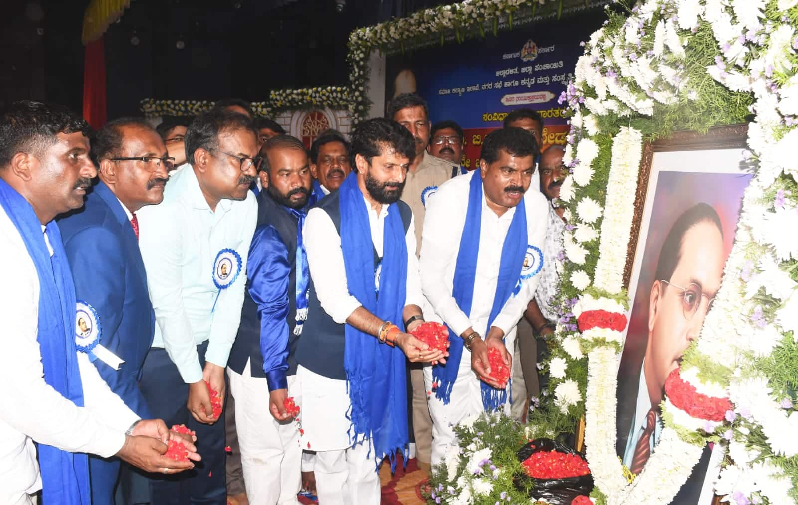 ಅಂಬೇಡ್ಕರ್ ಸಂವಿಧಾನ ರಚನೆ ಮಾಡದಿದ್ದರೆ ಇಂದು ನಾವ್ಯಾರೂ ಈ ಸ್ಥಾನಗಳಲ್ಲಿ ಕೂರಲು ಸಾಧ್ಯವಾಗುತ್ತಿರಲಿಲ್ಲ. ಶೋಷಿತ ವರ್ಗದಿಂದ ಬಂದ ನಾವೆಲ್ಲರೂ ಇಂದು ಸಮಾಜದ ಮುಖ್ಯವಾಹಿನಿಯಲ್ಲಿ ಕಾಣಿಸಿಕೊಳ್ಳಲು ಬಾಬಾಸಾಹೇಬರು ಹಾಕಿಕೊಟ್ಟ ಭದ್ರ ಬುನಾದಿಯೇ ಕಾರಣ ಎಂದು ಸ್ಮರಿಸಿದರು.ಹಿಂದೆ ಮತದಾನದ ಹಕ್ಕು ಕೇವಲ ವಿದ್ಯಾವಂತರು ಮತ್ತು ಜಮೀನ್ದಾರರಿಗೆ ಮಾತ್ರ ಸೀಮಿತವಾಗಿರಬೇಕು ಎಂಬ ವಾದವಿತ್ತು. ಆದರೆ, ಕರಡು ಸಮಿತಿ ಅಧ್ಯಕ್ಷರಾಗಿದ್ದ ಅಂಬೇಡ್ಕರ್ ಎಲ್ಲರ ವಿರೋಧದ ನಡುವೆಯೂ ಶ್ರೀಮಂತ-ಬಡವ, ಸುಶಿಕ್ಷಿತ-ಅಶಿಕ್ಷಿತ, ಪುರುಷ-ಮಹಿಳೆ ಎಂಬ ಭೇದವಿಲ್ಲದೆ ಎಲ್ಲರಿಗೂ ಸಮಾನ ಮತದಾನದ ಹಕ್ಕು ನೀಡಿದರು. ಸಂವಿಧಾನದಲ್ಲಿ ಸರ್ವಧರ್ಮ ಸಮಾನತೆ, ಅಲ್ಪಸಂಖ್ಯಾತರ ಹಕ್ಕುಗಳು, ಸಾಮಾಜಿಕ ನ್ಯಾಯ ಹಾಗೂ ಆರ್ಥಿಕ ಸ್ವಾತಂತ್ರ್ಯದ ಬಗ್ಗೆ ಮಹತ್ವದ ಕೊಡುಗೆ ನೀಡಿದ್ದಾರೆ. ಇಂದಿನ ಯುವ ಪೀಳಿಗೆ ಅಂಬೇಡ್ಕರ್ ಸಂವಿಧಾನದ ಪ್ರಸ್ತಾವನೆ ಹಾಗೂ ಬಸವಣ್ಣನ ವಚನಗಳನ್ನು ಓದಿ ಕೊಂಡರೆ ಮಾತ್ರ ಸುಸಂಸ್ಕೃತ ಪ್ರಜೆಗಳಾಗಲು ಸಾಧ್ಯ ಎಂಬ ಉದ್ದೇಶದಿಂದ ಸರ್ಕಾರ ಇಂದು ಎಲ್ಲಾ ಶಾಲೆ ಮತ್ತು ಕಚೇರಿಗಳಲ್ಲಿ ಸಂವಿಧಾನ ಪೀಠಿಕೆ ಪ್ರದರ್ಶಿಸುವ ಕೆಲಸ ಮಾಡಿದೆ ಎಂದು ಅಭಿಪ್ರಾಯಪಟ್ಟರು.ವಿಧಾನ ಪರಿಷತ್ ಶಾಸಕ ಸಿ.ಟಿ.ರವಿ ಮಾತನಾಡಿ, ಯಾರೂ ಕೀಳರಿಮೆಯಿಂದ ಬಳಲಬೇಕಾಗಿಲ್ಲ. ನಾವೆಲ್ಲರೂ ಒಂದೇ ಎನ್ನುವ ಆತ್ಮವಿಶ್ವಾಸ ನಮ್ಮಲ್ಲಿ ಬೆಳೆಯಬೇಕು. ಈ ಆತ್ಮವಿಶ್ವಾಸವನ್ನು ನಮಗೆ ಶಿಕ್ಷಣ ಮಾತ್ರ ನೀಡಲು ಸಾಧ್ಯ ಹೇಳಿದರು.