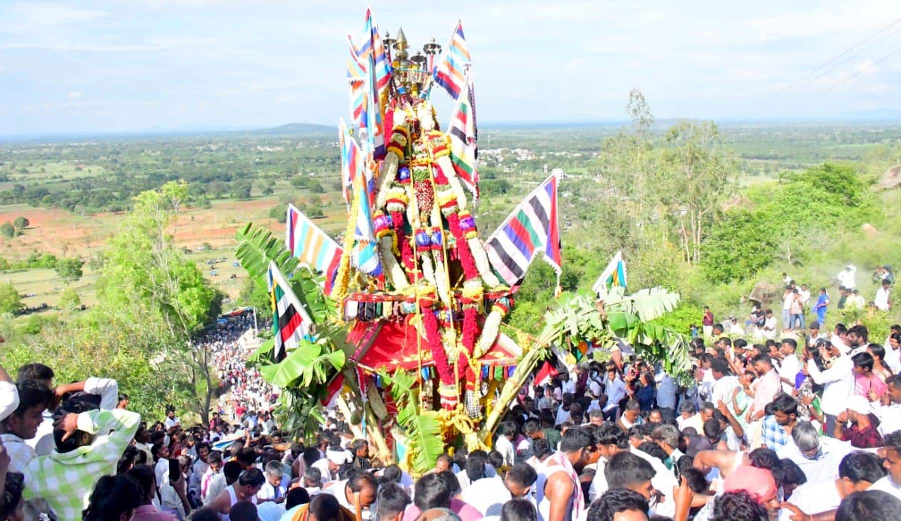 ಕನ್ನಡಪ್ರಭ ವಾರ್ತೆ ನಂಜನಗೂಡುತಾಲೂಕಿನ ಕಾರ್ಯ ಗ್ರಾಮದ ಶ್ರೀ ಸಿದ್ದೇಶ್ವರಸ್ವಾಮಿ ಬೆಟ್ಟದಲ್ಲಿ ಸಿದ್ದೇಶ್ವರ ಸ್ವಾಮಿ ಜಾತ್ರಾ ಮಹೋತ್ಸವ ಅಂಗವಾಗಿ ಉತ್ಸವಮೂರ್ತಿಯ ರಥೋತ್ಸವ ಶ್ರದ್ಧಾ ಭಕ್ತಿಯಿಂದ ನೆರವೇರಿತು.ರಾಜ್ಯದ ನಾನಾ ಮೂಲೆಗಳಿಂದ ಆಗಮಿಸಿದ್ದ ಸಾವಿರಾರು ಸಂಖ್ಯೆಯ ಭಕ್ತರು ರಥೋತ್ಸವ ಕಣ್ತುಂಬಿಕೊಂಡರು.ಬೆಳಗಿನ ಜಾವ ದೇವಾಲಯದ ಗರ್ಭಗುಡಿಯಲ್ಲಿ ವಿಶೇಷ ಪುಷ್ಪಾಲಂಕಾರ ಹಾಗೂ ಪೂಜಾ ಕೈಂಕರ್ಯ ಕೈಗೊಂಡು ಮಹಾಮಂಗಳಾತಿ ನೆರವೇರಿಸಿದ ನಂತರ ಭಕ್ತರ ದರ್ಶನಕ್ಕೆ ಅನುವು ಮಾಡಿಕೊಡಲಾಯಿತು. ದೇವಾಲಯ ಒಳಪ್ರವೇಶಿಸಲು ಸರತಿ ಸಾಲಿನಲ್ಲಿ ಭಕ್ತರ ಸಂಖ್ಯೆ ಏರಿಕೆ ಕಂಡಿದ್ದರಿಂದ ನೂಕುನುಗ್ಗಲು ಉಂಟಾಯಿತು.ಇದಕ್ಕೂ ಮುನ್ನ ಕಾರ್ಯ ಗ್ರಾಮದಲ್ಲಿ ಸಿದ್ಧೇಶ್ವರಸ್ವಾಮಿಯ ಉತ್ಸವಮೂರ್ತಿಯನ್ನು ಅಲಂಕರಿಸಿದ ಪಲ್ಲಕ್ಕಿಯಲ್ಲಿ ಪ್ರತಿಷ್ಠಾಪಿಸಿ ಬಗೆಬಗೆಯ ಪುಷ್ಪಾಲಂಕಾರ, ಹೊಂಬಾಳೆ, ಚಾಮರ, ವಿವಿಧ ವರ್ಣದ ವಸ್ತ್ರಗಳಿಂದ ಸಿಂಗರಿಸಿದ ರಥಕ್ಕೆ ವಾಟಾಳು ಮಠದ ಶ್ರೀ ಸಿದ್ದಲಿಂಗ ಶಿವಾಚಾರ್ಯ ಸ್ವಾಮಿಗಳು ಚಾಲನೆ ನೀಡಿದರು.ಉತ್ಸಾಹ ಭರಿತರಾದ ಭಕ್ತರು ಜೈಕಾರ ಹಾಕುತ್ತಾ ರಥವನ್ನು ಬೆಟ್ಟದ ತಪ್ಪಲಿಗೆ ಎಳೆದು ತಂದರು. ನಂತರ ರಥದಿಂದ ಪಲ್ಲಕ್ಕಿಯನ್ನು ಬೇರ್ಪಡಿಸಿ ಭಕ್ತರು ಉತ್ಸವಮೂರ್ತಿ ಸಮೇತ ಪಲ್ಲಕ್ಕಿಯನ್ನು ಹೊತ್ತುಕೊಂಡು ಬೆಟ್ಟವನ್ನು ಏರಿದರು. ಬೆಟ್ಟದ ಮೇಲೆ ಹಾಗೂ ತಪ್ಪಲಿನ ಆಯಕಟ್ಟಿನ ಸ್ಥಳಗಳಲ್ಲಿ ಜಾತ್ರೆಗೆ ಆಗಮಿಸಿದ ಭಕ್ತರಿಗೆ ಸೇವಾರ್ಥದಾರರು ಪ್ರಸಾದ ವಿನಿಯೋಗ ಮಾಡಿದರು.ಜಾತ್ರಾ ಮಹೋತ್ಸವಕ್ಕೆ ಬೆಂಗಳೂರು, ಮೈಸೂರು ಹಾಗೂ ಚಾಮರಾಜನಗರ ಸೇರಿದಂತೆ ರಾಜ್ಯದ ನಾನಾ ಭಾಗಗಳಿಂದ ಸಾವಿರಾರು ಸಂಖ್ಯೆಯ ಜನರು ಭಾಗವಹಿಸಿದ್ದರು. ಯಾವುದೇ ಅಹಿತಕರ ಘಟನೆ ನಡೆಯದಂತೆ ಬಿಗಿ ಪೊಲೀಸ್ ಬಂದೋಬಸ್ತ್ ಮಾಡಲಾಗಿತ್ತು.
