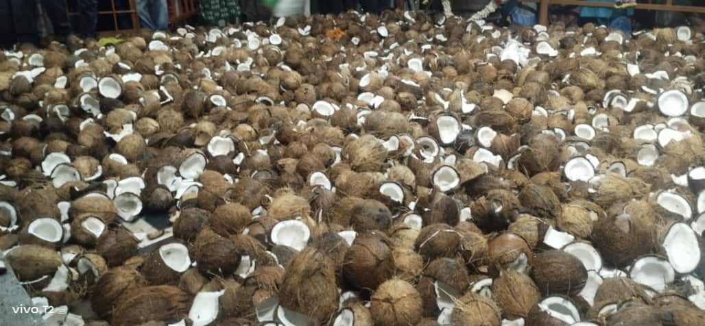 ರಾಮನಾಥಪುರ: ಇಲ್ಲಿನ ಪ್ರಸನ್ನ ಶ್ರೀ ಸುಬ್ರಹ್ಮಣ್ಯ ಸ್ವಾಮಿ ಸನ್ನಿಧಿಯಲ್ಲಿರುವ ಶಕ್ತಿ ದೇವತೆಯಾದ ಹೊಸಳಿಗಮ್ಮ ಅವರಿಗೆ ದೇವಸ್ಥಾನದವರು ಹಾಗೂ ಭಕ್ತರು ಸೇರಿ ಸಾವಿರಾರು ತೆಂಗಿನ ಕಾಯಿಗಳನ್ನು ಈಡುಗಾಯಿ ಹಾಕಿದರು. 26ರಂದು ಶ್ರೀ ಸುಬ್ರಮಣ್ಯಸ್ವಾಮಿ ಮಹಾ ರಥೋತ್ಸವ ಹಾಗೂ ಎರಡನೇ ತುಳು ಸೃಷ್ಟಿ ಮಹಾ ರಥೋತ್ಸವ ನಂತರ ಮಾರನೇ ದಿವಸ ಮುಕ್ತಾಯದ ಶ್ರೀ ಪ್ರಸನ್ನ ಸುಬ್ರಮಣ್ಯ ಸ್ವಾಮಿಯವರ ದೇವಾಲಯದ ಸಭಾಂಗಣದಲ್ಲಿರುವ ಶಕ್ತಿ ದೇವತೆಯಾದ ಹೊಸಳಿಗಮ್ಮನವರಿಗೆ ಈ ಹಿಂದಿನ ಎಲ್ಲಾ ಕಾರ್ಯಗಳು ಸುಸೂತ್ರವಾಗಿ ನಡೆದಿರುವುದಕ್ಕೆ ಭಕ್ತರು ಸುಮಾರು 2 ಸಾವಿರ ತೆಂಗಿನಕಾಯಿ ಹಾಕಿದರು.