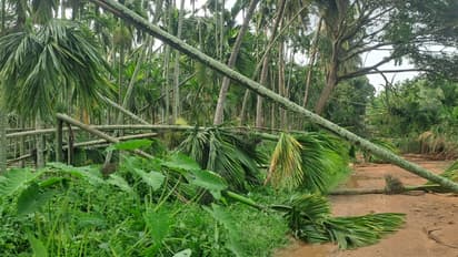 ಭಾರಿ ಗಾಳಿಯಿಂದ ಸುಮಾರು 300ಕ್ಕೂ ಹೆಚ್ಚು ವಿದ್ಯುತ್ ಕಂಬಗಳು ಮತ್ತು10ಕ್ಕೂ ಹೆಚ್ಚು ಟಿಸಿ ಕಂಬಗಳು ಮುರಿದು ಬಿದ್ದಿರುವುದರಿಂದ ಗ್ರಾಮಗಳಿಗೆ ವಿದ್ಯುತ್ ಪೂರೈಕೆ ಮಾಡುವುದು ತಡವಾಗುತ್ತದೆ. ಆದ್ದರಿಂದ ಸಾರ್ವಜನಿಕರು ಸಹನೆಯಿಂದ ಸಹಕರಿಸಬೇಕು ಎಂದು ಇಲ್ಲಿನ ಜೆಇಇ ಚಂದ್ರಪ್ಪ ಹೇಳಿದ್ದಾರೆ.ಹಾರಿಹೋದ ಮನೆ ಮೇಲ್ಛಾವಣಿ: