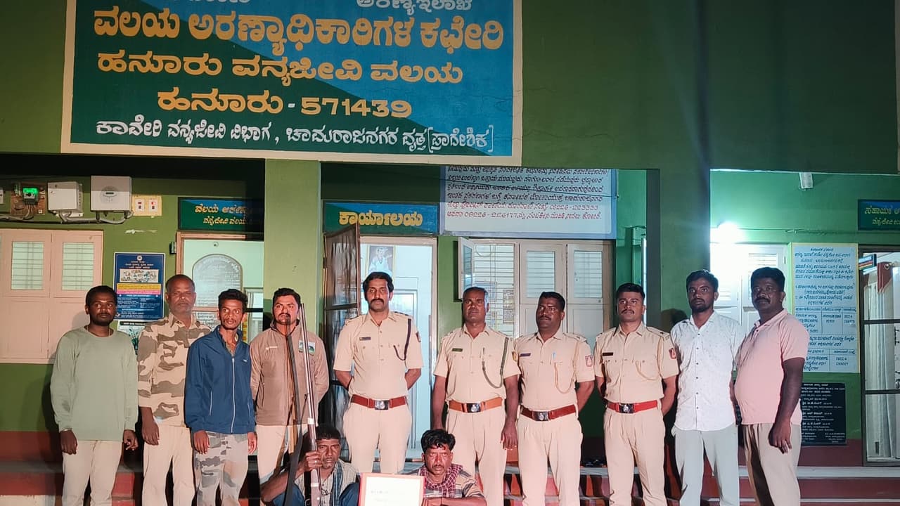 ಈ ಪ್ರಕರಣದಲ್ಲಿ ಕಾವೇರಿ ವನ್ಯಜೀವಿ ವಿಭಾಗದ ಉಪ ಅರಣ್ಯ ಸಂರಕ್ಷಣಾಧಿಕಾರಿಗಳಾದ ಸುರೇಂದ್ರ ಎಂ.ಸಿ, ಹಾಗೂ ಕಾವೇರಿ ವನ್ಯಜೀವಿ ಉಪ ವಿಭಾಗದ ಸಹಾಯಕ ಅರಣ್ಯ ಸಂರಕ್ಷಣಾಧಿಕಾರಿ ನಾಗೇಂದ್ರ ಪ್ರಸಾದ್. ಎಸ್ ರವರ ಮಾರ್ಗದರ್ಶನದಲ್ಲಿ ವಲಯ ಅರಣ್ಯಾಧಿಕಾರಿ ನಿರಂಜನ ಅವರ ನೇತೃತ್ವದಲ್ಲಿ ಉಪ ವಲಯ ಅರಣ್ಯಾಧಿಕಾರಿ ಶ್ರೀನಿ, ಶಾಗ್ಯಂ ಶಾಖೆ ಯಲಗೂರಪ್ಪ ಗುಬ್ಬಿ, ಗಸ್ತು ವನಪಾಲಕ ಬೇಟೆಗಾರನಗುಡ್ಡ ಗಸ್ತು ವಿವೇಕಾನಂದ ಸತ್ಯಪ್ಪ ಹಡಗಿನಾಳ, ರುದ್ರಾಪುರಂ ಗಸ್ತು ಗೋರಿಸಾಬ ಸನದಿ, ಗಾಣಿಗಮಂಗಲ ಗಸ್ತು ರವಿಚಂದ್ರ ಎನ್ ದಾಸನಟ್ಟಿ ಹಾಗೂ ವಾಹನಚಾಲಕ ಪ್ರಭು ಮತ್ತು ವಲಯದ ಇತರೆ ಸಿಬ್ಬಂದಿ ಕಾರ್ಯಾಚರಣೆಯಲ್ಲಿ ಭಾಗವಹಿಸಿದ್ದರು.