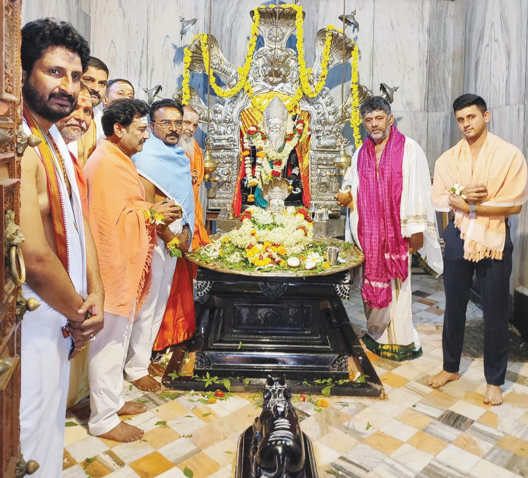 ಈ ವೇಳೆ ಮಾತನಾಡಿ, ಮುಕ್ತಿಮಂದಿರ ಧರ್ಮಕ್ಷೇತ್ರ ಲಿಂ.ವೀರಗಂಗಾಧರ ಸ್ವಾಮಿಗಳ ತಪೋಭೂಮಿಯಾಗಿದ್ದು, ಇದು ವಿಶೇಷವಾದ ಸ್ಥಳವಾಗಿರುವುದರಿಂದ ಇಲ್ಲಿಗೆ ಭೇಟಿ ನೀಡಿ ಗಂಗಾಧರ ಶ್ರೀಗಳ ಆಶೀರ್ವಾದ ಪಡೆದುಕೊಂಡಿದ್ದೇನೆ. ವೀರಗಂಗಾಧರ ಸ್ವಾಮಿಗಳಲ್ಲಿ ವಿಶೇಷ ಶಕ್ತಿ ಇರುವುದರಿಂದ ಇಲ್ಲಿಗೆ ಭೇಟಿ ನೀಡಿದ್ದೇನೆ ಎಂದರು.‘ಡಿಕೆಶಿ ಮುಂದಿನ ದಿನಗಳಲ್ಲಿ ರಾಜ್ಯದ ಮುಖ್ಯಮಂತ್ರಿಯಾಗುತ್ತಾರೆ’ ಎಂಬ ನೊಣವಿನಕೆರೆ ಶ್ರೀಗಳ ಹೇಳಿಕೆ ಕುರಿತ ಪ್ರಶ್ನೆಗೆ ಉತ್ತರಿಸಿದ ಅವರು, ಟೈಂ ಬರಲಿ, ಕಾಲವು ಎಲ್ಲದಕ್ಕೂ ಉತ್ತರ ಕೊಡುತ್ತದೆ ಎಂದು ಮಾರ್ಮಿಕವಾಗಿ ಹೇಳಿದರು. ಈ ವೇಳೆ ಮುಕ್ತಿಮಂದಿರ ಧರ್ಮಕ್ಷೇತ್ರದ ಪಟ್ಟಾಧ್ಯಕ್ಷ ವಿಮಲರೇಣುಕ ವೀರಮುಕ್ತಿಮುನಿ ಸ್ವಾಮಿಗಳು ಡಿ.ಕೆ.ಶಿವಕುಮಾರ ಅವರನ್ನು ಸನ್ಮಾನಿಸಿದರು.
