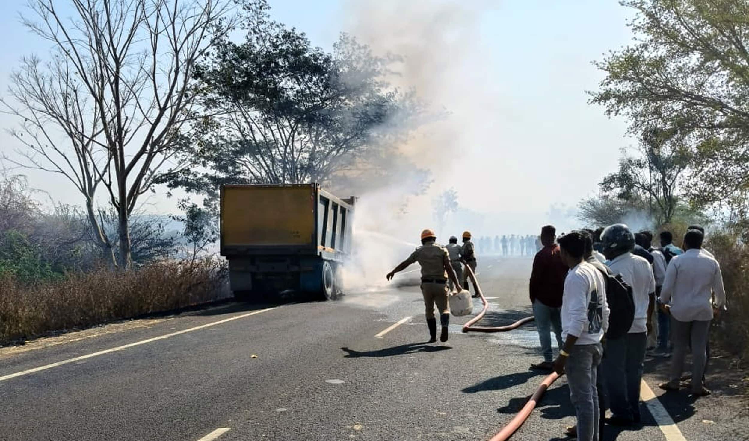 ಆಕಸ್ಮಿಕ ಬೆಂಕಿಯಿಂದ ಹೊತ್ತಿ ಉರಿದ ಟಿಪ್ಪರ್