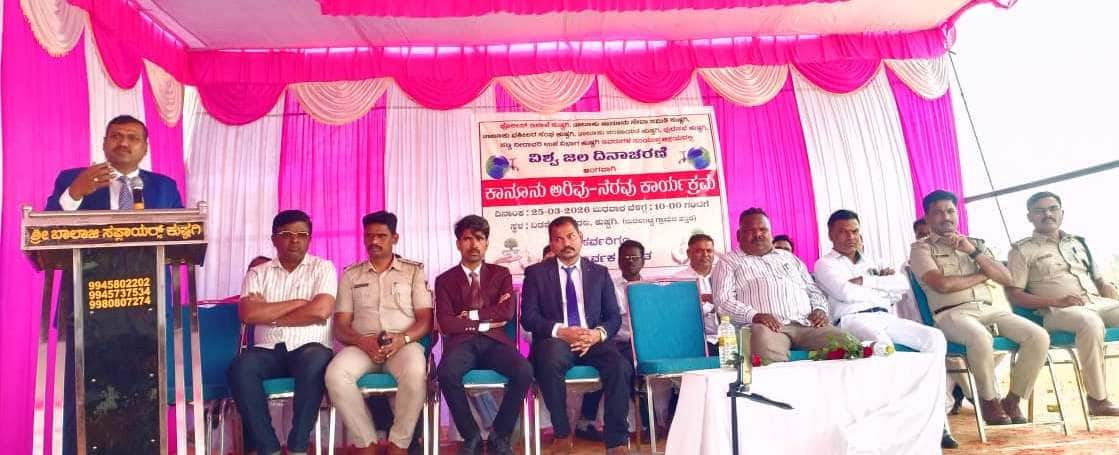 ಸಮೀಪದ ನಿಡಶೇಸಿ ಕೆರೆಯ ಅಂಗಳದಲ್ಲಿ ಪೊಲೀಸ್ ಇಲಾಖೆ, ತಾಲೂಕು ಕಾನೂನು ಸೇವಾ ಸಮಿತಿ, ಕಂದಾಯ ಇಲಾಖೆ, ವಕೀಲರ ಸಂಘ, ತಾಪಂ,ಪುರಸಭೆ, ಸಣ್ಣ ನೀರಾವರಿ ಹಾಗೂ ಅರಣ್ಯ ಇಲಾಖೆಯ ಸಹಯೋಗದಲ್ಲಿ ವಿಶ್ವ ಜಲ ದಿನಾಚರಣೆ ಅಂಗವಾಗಿ ನಡೆದ ಕಾನೂನು ಅರಿವು ನೆರವು ಕಾರ್ಯಕ್ರಮ ಉದ್ಘಾಟಿಸಿ ಮಾತನಾಡಿದರು.ಕೇವಲ ಅಧಿಕಾರಿಗಳಿಂದ ಕೆರೆಯ ರಕ್ಷಣೆ ಮತ್ತು ಅಭಿವೃದ್ಧಿ ಕೆಲಸವಾಗುವದಿಲ್ಲ, ಕೆರೆ ಸುತ್ತಮುತ್ತಲಿನ ಗ್ರಾಮಗಳ ಸಾರ್ವಜನಿಕರ ಸಹಭಾಗೀತ್ವ ಅತಿ ಮುಖ್ಯವಾಗಿದೆ ಎಂದ ಅವರು, ಇಲ್ಲಿನ ಜನರು ಕೆರೆ ದಡದಲ್ಲಿ ಆಗುವ ಮಾಲಿನ್ಯ ತಡೆಗಟ್ಟಬೇಕು ಬಯಲು ಬಹಿರ್ದೇಸೆ,ಬಟ್ಟೆ ತೊಳೆಯುವದು, ಎತ್ತು ತೊಳೆಯುವುದು,ವಾಹನ ತೊಳೆಯುವದು ಮಾಡಬಾರದು ಎಂದರು.