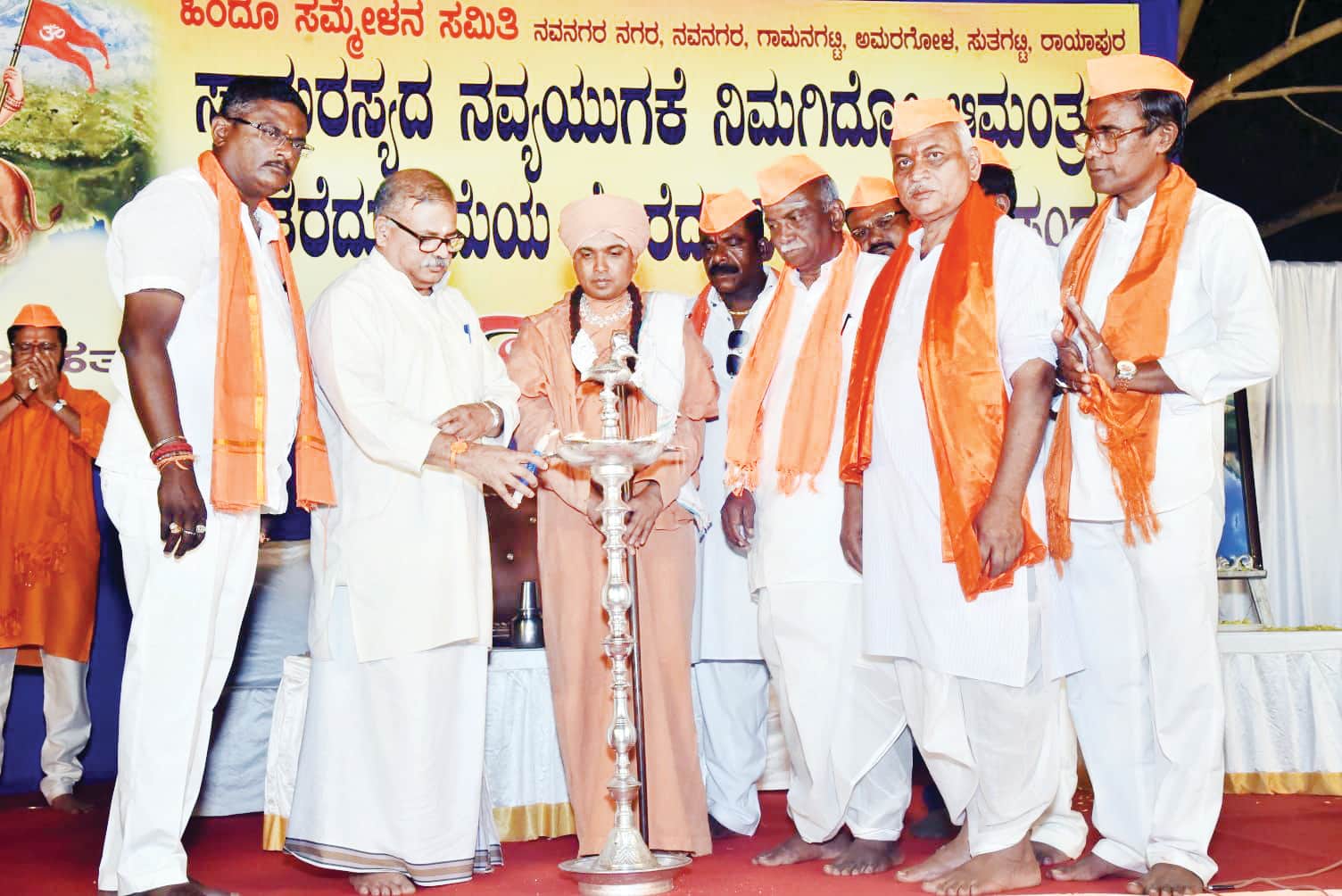 ಇಲ್ಲಿನ ನವನಗರದ ಹಳೇ ಕೆಎಚ್ಬಿ ಕಾಲನಿ ಹತ್ತಿರದ ಬಜರಂಗಿ ಮೈದಾನದಲ್ಲಿ ಭಾನುವಾರ ಸಂಜೆ ನವನಗರ, ಗಾಮನಗಟ್ಟಿ, ಅಮರಗೋಳ, ಸುತಗಟ್ಟಿ, ರಾಯಾಪುರ ಹಿಂದೂ ಸಮ್ಮೇಳನ ಸಮಿತಿಯಿಂದ ಏರ್ಪಡಿಸಿದ್ದ ಬೃಹತ್ ಹಿಂದೂ ಸಮಾವೇಶದಲ್ಲಿ ಮುಖ್ಯ ವಕ್ತಾರರಾಗಿ ಮಾತನಾಡಿದರು.ಭಾರತ ಪುಣ್ಯ ಭೂಮಿ. ಸಾಕ್ಷಾತ್ ಭಗವಂತನೇ ಜನ್ಮ ತಾಳಿದ ದೇವಭೂಮಿ. ಇಲ್ಲಿ ಮತ್ತೊಮ್ಮೆ ಜನಿಸಬೇಕೆಂದು ಬಹಳಷ್ಟು ಜನರ ಬಯಕೆ. ಇಡೀ ವಿಶ್ವವೇ ಸುಖವಾಗಿರಬೇಕು ಎಂದು ಬಯಸುವ ಜನರು ಹಿಂದೂಗಳು. ಸುಸಂಸ್ಕೃತ, ಜ್ಞಾನವನ್ನು ಜಗತ್ತಿಗೆ ಕೊಟ್ಟವರು ನಾವು. ಇಂಥ ರಾಷ್ಟ್ರ ಉಳಿಸಲು ಹಿಂದೂಗಳೆಲ್ಲ ಜಾತಿ-ಭೇದ ಮರೆತು ಒಂದಾಗಬೇಕಿದೆ ಎಂದರು.