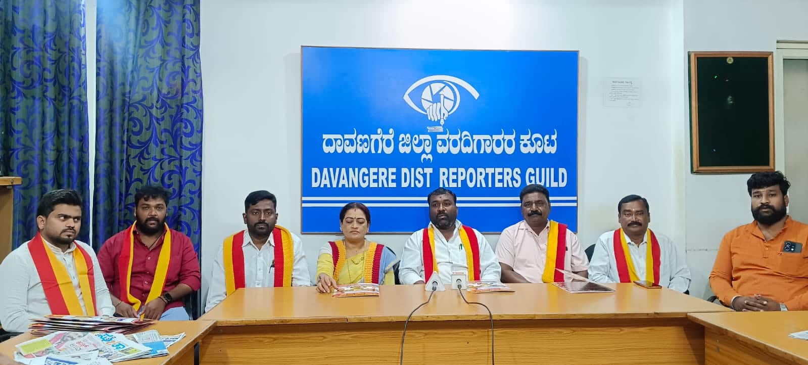 -19ಕೆಡಿವಿಜಿ9: ದಾವಣಗೆರೆಯಲ್ಲಿ ಶುಕ್ರವಾರ ಸಮಗ್ರ ಕರ್ನಾಟಕ ರಕ್ಷಣಾ ವೇದಿಕೆ ಸಂಸ್ಥಾಪಕ ರಾಜ್ಯಾಧ್ಯಕ್ಷ ಅವಿನಾಶ ವಿ. ಅಭಿ ಸುದ್ದಿಗೋಷ್ಠಿಯಲ್ಲಿ ಮಾತನಾಡಿದರು.