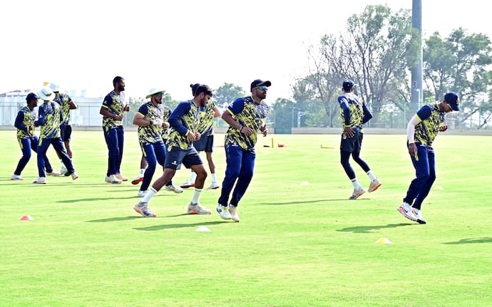 ವಿಶೇಷವಾಗಿ ಕರ್ನಾಟಕ ತಂಡದ ನಾಯಕ ಮಯಾಂಕ ಅಗರವಾಲ್, ಕರುಣ್ ನಾಯರ್, ಅಭಿನವ ಮನೋಹರ ರನ್ನಿಂಗ್ ಪ್ರ್ಯಾಕ್ಟಿಸ್ ಮಾಡಿದರು. ಇನ್ನೊಂದೆಡೆ ವಿದ್ವತ್ ಕಾವೇರಪ್ಪ ಬೌಲಿಂಗ್ ಅಭ್ಯಾಸ ಮಾಡಿದರು.ಇನ್ನೊಂದೆಡೆ ಪಿಚ್ ಕ್ಯುರೇಟರ್ಗಳಾದ ಆರ್. ವೆಂಕಟಕೃಷ್ಣನ್, ಶ್ರೀರಾಮ ಮತ್ತು ಕೆಎಸ್ಸಿಎ ಧಾರವಾಡ ವಲಯದ ಹಂಗಾಮಿ ನಿಯಂತ್ರಕ ನಿಖಿಲ್ ಭೂಸದ ಮೈದಾನದ ಪರಿಶೀಲನೆ ನಡೆಸಿದರು.