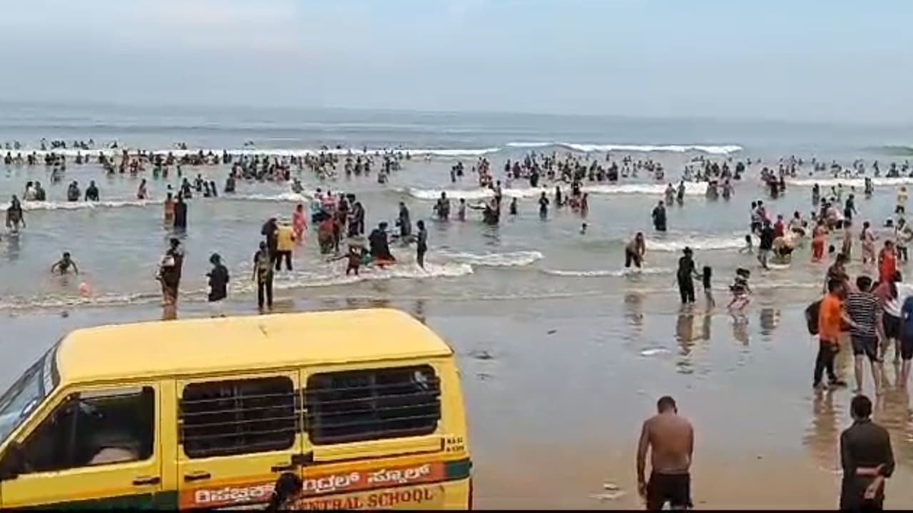 ಭಟ್ಕಳ: ಮುರುಡೇಶ್ವರ ಸಮುದ್ರಕ್ಕೆ ಈಜಲು ತೆರಳಿ ಅಲೆಗಳ ರಭಸಕ್ಕೆ ಸಿಲುಕಿ ನೀರುಪಾಲಾಗುತ್ತಿದ್ದ ಪ್ರವಾಸಿಗರೊಬ್ಬನನ್ನು ಕರಾವಳಿ ಕಾವಲು ಪಡೆಯ ಕೆಎನ್ಡಿ ಹಾಗೂ ಲೈಫ್ ಗಾರ್ಡ್ ಸಿಬ್ಬಂದಿ ರಕ್ಷಿಸಿದ್ದಾರೆ.ಭಾನುವಾರ ಸ್ನೇಹಿತರೊಂದಿಗೆ ಬೆಂಗಳೂರಿನಿಂದ ಪ್ರವಾಸಕ್ಕೆ ಮುರ್ಡೇಶ್ವರಕ್ಕೆ ಬಂದಿದ್ದ ಪುನೀತ್ ಕೆ.(೧೯) ಎಂಬಾತ ಈಜಲು ಸಮುದ್ರಕ್ಕೆ ಇಳಿದಿದ್ದ. ಈಜಲು ಬಾರದ ಈತನಿಗೆ ನೀರಿನ ಸೆಳೆತ ತಿಳಿಯದೇ ಮುಂದೆ ಮುಂದೆ ಹೋಗಿದ್ದರಿಂದ ಅಲೆಯ ರಭಸಕ್ಕೆ ಸಿಲುಕಿ ನೀರಿನಲ್ಲಿ ಕೊಚ್ಚಿ ಹೋಗುತ್ತಿದ್ದ. ತಕ್ಷಣ ಇದನ್ನು ಗಮನಿಸಿದ ಸ್ಥಳದಲ್ಲಿದ್ದ ಕೆಎನ್ಡಿ ಸಿಬ್ಬಂದಿ ಯೋಗೇಶ ಹರಿಕಾಂತ ಹಾಗೂ ಲಕ್ಷ್ಮಣ ಹರಿಕಾಂತ ಅವರು ಪಾತಿ ದೋಣಿಯನ್ನು ತೆಗೆದುಕೊಂಡು ಹೋಗಿ ಮುಳುಗುತ್ತಿದ್ದ ಪುನೀತ್ ಅವರನ್ನು ರಕ್ಷಣೆ ಮಾಡಿದ್ದಾರೆ.