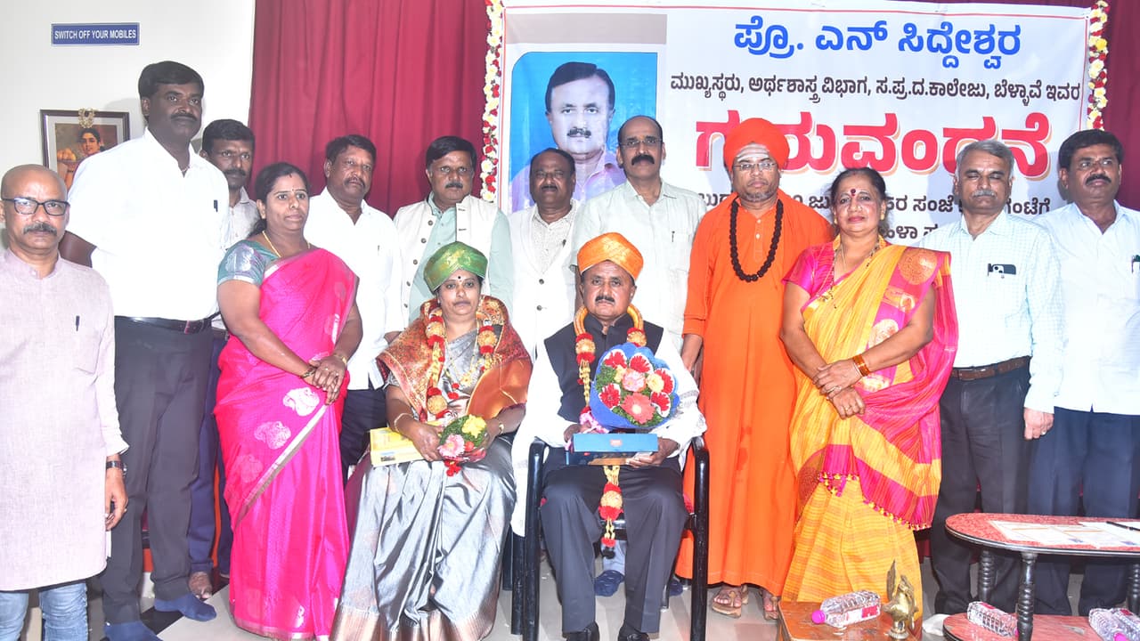 ಕನ್ನಡಪ್ರಭ ವಾರ್ತೆ, ತುಮಕೂರು ಆದರ್ಶ ಶಿಕ್ಷಕ ಎನಿಸಿಕೊಳ್ಳಬೇಕೆಂದರೆ ಸಮಾಜದಲ್ಲಿರುವ ಒಳ್ಳೆಯದನ್ನು ತಾನು ತೆಗೆದುಕೊಂಡು, ಅದನ್ನು ತನ್ನ ಶಿಷ್ಯವೃಂದಕ್ಕೆ ಪಾಠ, ಪ್ರವಚನಗಳ ಮೂಲಕ ವರ್ಗಾಯಿಸಬೇಕು. ಆ ಮೂಲಕ ಸ್ವಸ್ಥ ಸಮಾಜ ನಿರ್ಮಾಣದಲ್ಲಿ ಕೊಡುಗೆ ನೀಡಬೇಕು ಎಂದು ಬೆಳ್ಳಾವೆ ಶ್ರೀಕಾರದ ಮಠದ ಶ್ರೀಕಾರದ ವೀರಬಸವ ಸ್ವಾಮೀಜಿ ಅಭಿಪ್ರಾಯಪಟ್ಟಿದ್ದಾರೆ.ನಗರದ ಶ್ರೀಸಿದ್ದಗಂಗಾ ಮಹಿಳಾ ಪದವಿ ಕಾಲೇಜಿನ ಅಕ್ಕಮಹಾದೇವಿ ಸಭಾಂಗಣದಲ್ಲಿ ವಯೋನಿವೃತ್ತಿ ಹೊಂದಿದ ಬೆಳ್ಳಾವಿ ಪ್ರಥಮ ದರ್ಜೆ ಕಾಲೇಜಿನ ಅರ್ಥಶಾಸ್ತ್ರ ಪ್ರಾಧ್ಯಾಪಕ ಪ್ರೊ.ಎನ್.ಸಿದ್ದೇಶ್ವರ ಅವರಿಗೆ ಹಮ್ಮಿಕೊಂಡಿದ್ದ ಗುರುವಂದನಾ ಕಾರ್ಯಕ್ರಮದ ಸಾನ್ನಿಧ್ಯವಹಿಸಿ, ಕಾರ್ಯಕ್ರಮಕ್ಕೆ ಚಾಲನೆ ನೀಡಿ ಮಾತನಾಡಿದರು.ತಮ್ಮಿಂದ ಕಲಿತ ಶಿಷ್ಯರ ಬಾಳಿಗೆ ಬಂಗಾರದಂತಹ ಮಾರ್ಗದರ್ಶನ ನೀಡಿದವರೇ ನಿಜವಾದ ಶಿಕ್ಷಕರು, ಪ್ರೊ.ಎನ್.ಸಿದ್ದೇಶ್ವರ ಅವರು ಈ ಕೆಲಸವನ್ನು ಕಾಯಾ, ವಾಚಾ, ಮನಸಾ ನಿರ್ವಂಚನೆಯಿಂದ ಮಾಡಿದ್ದಾರೆ. ಅದಕ್ಕೆಇಂದು ಅವರ ಶಿಷ್ಯ ಬಳಗ ನೀಡುತ್ತಿರುವ ಗುರುವಂದನೆಯೇ ಸಾಕ್ಷಿ ಎಂದರು.ನಿವೃತ್ತ ಪ್ರಾಂಶುಪಾಲ ಡಾ.ಟಿ.ಆರ್.ಲೀಲಾವತಿ ಮಾತನಾಡಿ, ಪ್ರೊ.ಎನ್.ಸಿದ್ದೇಶ್ವರ ಅವರು ಅಕಾಡೆಮಿಕ್ ಆಗಿ ಯಾವುದೇ ಕೆಲಸವನ್ನು ಅವರಿಗೆ ವಹಿಸಿದರೂ ಅದನ್ನುಅತ್ಯಂತ ಸಮರ್ಥವಾಗಿ ನಿರ್ವಹಿಸುವ ಗುಣವನ್ನು ಹೊಂದಿದ್ದವರು. ತನ್ನ ವೃತ್ತಿಜೀವನದುದ್ದಕ್ಕೂ ಯಾರಿಗೂ ತೊಂದರೆ ಕೊಡದೆ, ತನ್ನ ಕೆಲಸವನ್ನು ನಿರ್ವಹಿಸಿದ ಆದರ್ಶ ಶಿಕ್ಷಕ. ಅವರ ನಿವೃತ್ತಿಜೀವನ ಸುಖಃಕರವಾಗಿರಲಿ ಎಂದು ಶುಭ ಹಾರೈಸಿದರು.ಪಾವಗಡ ಸರಕಾರಿ ಪ್ರಥಮ ದರ್ಜೆ ಕಾಲೇಜಿನ ಪ್ರಾಂಶುಪಾಲ ಡಾ.ಶಿವಾನಂದಯ್ಯ ಮಾತನಾಡಿ, ಹಿರಿಯರು, ಕಿರಿಯರೆನ್ನದೆ ಎಲ್ಲರನ್ನು ಗೌರವದಿಂದ ಕಾಣುತ್ತಿದ್ದ ಪ್ರೊ.ಎನ್.ಸಿದ್ದೇಶ್ವರ ಅವರು,ತಾವು ಕೆಲಸ ಮಾಡಿದ ಎಲ್ಲಾ ಜಾಗಗಳಲ್ಲಿಯೂ ಒಳ್ಳೆಯ ಹೆಸರು ಪಡೆದಿದ್ದಾರೆ. ತಮ್ಮ ಹೆಜ್ಜೆ ಗುರುತುಗಳನ್ನು ಮೂಡಿಸಿದ್ದಾರೆ ಎಂದರು.ಸಿದ್ದಗಂಗಾ ಮಹಿಳಾ ಪದವಿ ಕಾಲೇಜಿನ ಪ್ರಾಂಶುಪಾಲ ಡಾ.ದಕ್ಷಿಣಮೂರ್ತಿ ಮಾತನಾಡಿ, ಓರ್ವ ಒಳ್ಳೆಯ ಶಿಕ್ಷಕ ಎನಿಸಿಕೊಳ್ಳುವುದು ಇಂದಿನ ದಿನಗಳಲ್ಲಿ ಕಷ್ಟ.ಅದು ನಮ್ಮಿಂದ ಕಲಿತ ವಿದ್ಯಾರ್ಥಿಗಳ ಬೆಳವಣಿಗೆಯ ಮೇಲೆ ನಿಂತಿರುತ್ತದೆ. ಪ್ರೊ,ಎನ್.ಸಿದ್ದೇಶ್ವರ ಒಳ್ಳೆಯ ಶಿಕ್ಷಕ ಎಂಬುದಕ್ಕೆ ಇಂದಿನ ಕಾರ್ಯಕ್ರಮವೇ ಸಾಕ್ಷಿ ಎಂದರು.ಕಾದಂಬರಿಕಾರ, ಕನ್ನಡ ಪ್ರಾಧ್ಯಾಪಕ ಡಾ.ಓ.ನಾಗರಾಜು ಮಾತನಾಡಿ, ಶಿಕ್ಷಣವೆಂಬುದು ವ್ಯಾಪಾರವಾಗಿ, ನೈತಿಕತೆಯನ್ನು ಕಳೆದುಕೊಳ್ಳುತ್ತಿರುವ ಇಂದಿನ ಕಾಲದಲ್ಲಿ, ನಮ್ಮ ವೃತ್ತಿಜೀವನದುದ್ದಕ್ಕೂ ಮಕ್ಕಳಿಗೆ ಉತ್ತಮ ನೈತಿಕ ಮೌಲ್ಯಗಳನ್ನು ಬೋಧಿಸಿಕೊಂಡು ಬಂದಿದ್ದ ಪ್ರೊ.ಎನ್.ಸಿದ್ದೇಶ್ವರ ಓರ್ವಆದರ್ಶ ಶಿಕ್ಷಕರು. ಬೋಧಕರಿಗೆ ಕೊರಳಿನ ಜೊತೆಗೆ, ಎಲ್ಲರನ್ನು ಒಳಗೊಳ್ಳುವ ತಾಯಿ ಕರುಳು ಇದ್ದಾಗ ಮಾತ್ರ ಉತ್ತಮ ಶಿಕ್ಷಕನಾಗಬಲ್ಲ ಎಂದರು.ಪ್ರಾಸ್ತಾವಿಕ ನುಡಿಗಳನ್ನಾಡಿದ ತುಮಕೂರು ವಿವಿ ಕಾಲೇಜು ಅಧ್ಯಾಪಕರ ಸಂಘದ ಅಧ್ಯಕ್ಷ ಡಾ.ಜಿ.ತಿಪ್ಪೇಸ್ವಾಮಿ, 1992-93ರಲ್ಲಿ ನಾನು ಪ್ರೊ,ಎನ್.ಸಿದ್ದೇಶ್ವರ ಅವರ ಶಿಷ್ಯ.ಅವರಿಂದ ಕಲಿತ ಅನೇಕರು ಇಂದು ನನ್ನಂತೆಯೇ ಉಪನ್ಯಾಸಕರಾಗಿ ಕೆಲಸ ಮಾಡುತ್ತಿದ್ದಾರೆ. ಸದಾ ವಿದ್ಯಾರ್ಥಿ ಹಿತ ಬಯಸುವ,ದುರ್ಗುಣಗಳೇ ಇಲ್ಲದ ಓರ್ವ ಆದರ್ಶ ಶಿಕ್ಷಕರು. ಹತ್ತಾರು ವರ್ಷಗಳ ಕಾಲ ಪಾಠ ಮಾಡಿ ವಯೋ ನಿವೃತ್ತ