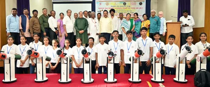 ಮಂಡ್ಯದ ಗಾಂಧಿ ಭವನದಲ್ಲಿ ರಾಜ್ಯ ವೈಜ್ಞಾನಿಕ ಸಂಶೋಧನಾ ಪರಿಷತ್ ಜಿಲ್ಲಾ ಘಟಕ ಆಯೋಜಿಸಿದ್ದ ಟೆಲಿಸ್ಕೋಪ್ ತಯಾರಿಕಾ ಕಾರ್ಯಾಗಾರದಲ್ಲಿ ಮಂಡ್ಯ ಜಿಲ್ಲೆಗೆ ಕೀರ್ತಿ ತಂದ ವಿದ್ಯಾರ್ಥಿಗಳಿಗೆ ಅಭಿನಂದನಾ ಕಾರ್ಯಕ್ರಮದಲ್ಲಿ ‘ನಾನೂ ವಿಜ್ಞಾನಿ’ ವಿದ್ಯಾರ್ಥಿಗಳನ್ನು ಗಣ್ಯರು ಅಭಿನಂದಿಸಿದರು.;Resize=(128,128))