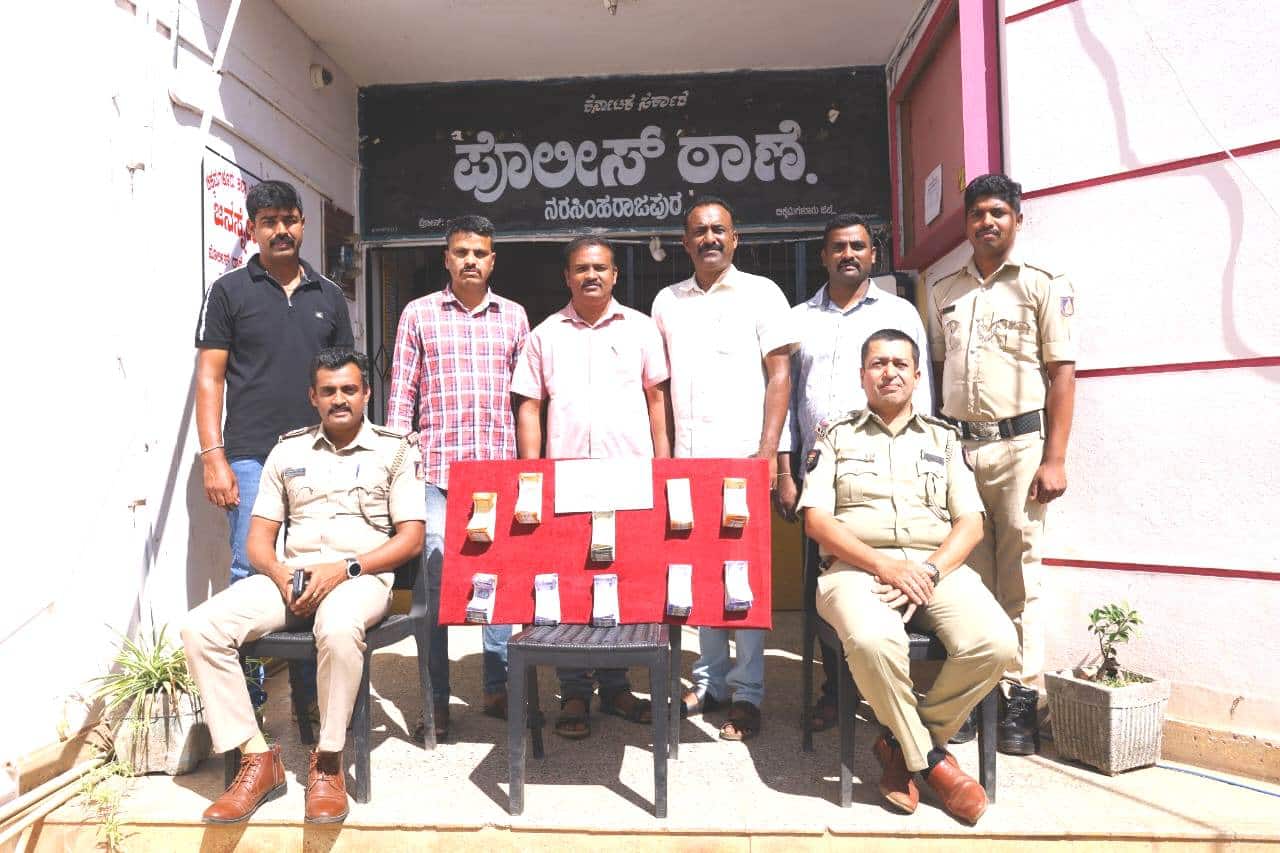ನರಸಿಂಹರಾಜಪುರ: ಹಾಡಹಗಲೇ ರಬ್ಬರ್ ಯಲ್ಲಿದ್ದ ಲಕ್ಷಾಂತರ ರು. ಕಳವುಮಾಡಿದ್ದ ಇಬ್ಬರು ಕಳ್ಳರನ್ನು ಬಂಧಿಸಿದ ನರಸಿಂಹರಾಜಪುರ ಪೊಲೀಸರು ₹1.20 ಲಕ್ಷ ನಗದು ಹಾಗೂ ಬೈಕ್ ವಶಪಡಿಸಿಕೊಂಡಿದ್ದಾರೆ.