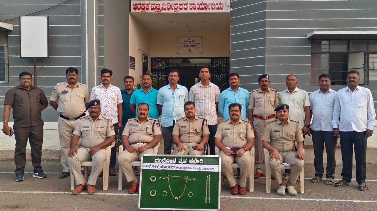 ನಗರದಲ್ಲಿ ಬೀಗ ಹಾಕಿದ ಮನೆಗಳನ್ನು ಗುರಿಯಾಗಿಸಿಕೊಂಡು ಕಳ್ಳತನ ಮಾಡುತ್ತಿದ್ದ ಇಬ್ಬರು ಕುಖ್ಯಾತ ಕಳ್ಳರನ್ನು ಮುಧೋಳ ಪೊಲೀಸರು ಬಂಧಿಸಿದ್ದು, ಬಂಧಿತರಿಂದ ಸುಮಾರು ₹8.09 ಲಕ್ಷ ಮೌಲ್ಯದ ಚಿನ್ನ ಮತ್ತು ಬೆಳ್ಳಿ ಆಭರಣ ವಶಪಡಿಸಿಕೊಂಡಿದ್ದಾರೆ.ಮಹಾಲಿಂಗಪುರ ಕೆಂಗೇರಿ ದಡ್ಡಿ ನಿವಾಸಿ ದುರ್ಗಪ್ಪ ಫಕೀರಪ್ಪ ವಾಲ್ಮೀಕಿ (26), ಜಮಖಂಡಿ ನಿವಾಸಿ ರಾಮಾಚಾರಿ ಯಲ್ಲಪ್ಪ ಗಡ್ಡಿ (40) ಬಂಧಿತರು. ಮುಧೋಳ ನಗರದ ಬಸ್ ನಿಲ್ದಾಣ ಸಮಿಪದ ಬಸವೇಶ್ವರ ವೃತ್ತದ ಬಳಿ ಇಬ್ಬರು ವ್ಯಕ್ತಿಗಳು ಸಂಶಯಾಸ್ಪದವಾಗಿ ತಿರುಗಾಡುತ್ತಿದ್ದರುವುದನ್ನು ಗಮನಿಸಿದ ಪೊಲೀಸರು ಅವರನ್ನು ವಿಚಾರಿಸಿದಾಗ, ತಡವರಿಸುತ್ತ ಸಮರ್ಪಕ ಉತ್ತರ ನೀಡದಿದ್ದಾಗ ಪೊಲೀಸ್ ಠಾಣೆಗೆ ಕರೆದೊಯ್ದು ತೀವ್ರ ವಿಚಾರಣೆಗೆ ಒಳಪಡಿಸಿದಾಗ, ರಾತ್ರಿ ವೇಳೆ ಬೀಗ ಹಾಕಿದ ಮನೆಗಳ ಬೀಗ ಮುರಿದು ಚಿನ್ನಾಭರಣ ಕಳ್ಳತನ ಮಾಡುತ್ತಿದ್ದ ಬಗ್ಗೆ ತಪ್ಪೊಪ್ಪಿಕೊಂಡಿದ್ದಾರೆ. ಆರೋಪಿಗಳಿಂದ 50 ಗ್ರಾಂ ಚಿನ್ನದ ಆಭರಣಗಳು (ಮೌಲ್ಯ₹7,70,000) ಹಾಗೂ 130 ಗ್ರಾಂ ಬೆಳ್ಳಿಯ ಆಭರಣ (ಮೌಲ್ಯ ₹39,000) ಸೇರಿ ಒಟ್ಟು 8.9 ಲಕ್ಷ ಮೌಲ್ಯದ ಸ್ವತ್ತು ಜಪ್ತಿ ಮಾಡಲಾಗಿದೆ. ಮುಧೋಳ ಪೊಲೀಸ್ ಠಾಣೆಯಲ್ಲಿ ಪ್ರಕರಣ ದಾಖಲಾಗಿದೆ.ಬಾಗಲಕೋಟೆ ಎಸ್ಪಿ ಹಾಗೂ ಜಮಖಂಡಿ ಡಿವೈಎಸ್ಪಿ ಅವರ ಮಾರ್ಗದರ್ಶನದಲ್ಲಿ ನಡೆದ ಕಾರ್ಯಾಚರಣೆಯಲ್ಲಿ ಮುಧೋಳ ಸಿಪಿಐ ಎಂ.ಎನ್. ಶಿರಹಟ್ಟಿ, ಪಿಎಸ್ಐ ಅಜಿತಕುಮಾರ ಹೊಸಮನಿ, ಪಿಎಸ್ಐ ಪಿ.ಎಸ್. ಮರನಾಳ ಹಾಗೂ ಸಿಬ್ಬಂದಿಯಾದ ಆರ್.ಬಿ. ಕಟಗೇರಿ, ಬಿ.ಡಿ. ಕುರಿ, ಎಚ್.ಜಿ. ಮಾದರ, ಎಂ.ಬಿ. ದಳವಾಯಿ ಮತ್ತು ಎಂ.ಎಲ್. ಒಡೆಯರ ಕಾರ್ಯಾಚರಣೆಯಲ್ಲಿ ಪಾಲ್ಗೊಂಡಿದ್ದರು. ಪ್ರಕರಣ ಭೇದಿಸುವಲ್ಲಿ ಯಶಸ್ವಿಯಾದ ಪೊಲೀಸ್ ತಂಡದ ಕಾರ್ಯವನ್ನು ಶ್ಲಾಘಿಸಿರುವ ಬಾಗಲಕೋಟೆ ಜಿಲ್ಲಾ ಪೊಲೀಸ್ ವರಿಷ್ಠಾಧಿಕಾರಿ ಸಿದ್ಧಾರ್ಥ ಗೋಯಲ್ ಅವರು ತಂಡಕ್ಕೆ ಸೂಕ್ತ ಬಹುಮಾನ ಘೋಷಿಸಿದ್ದಾರೆ.