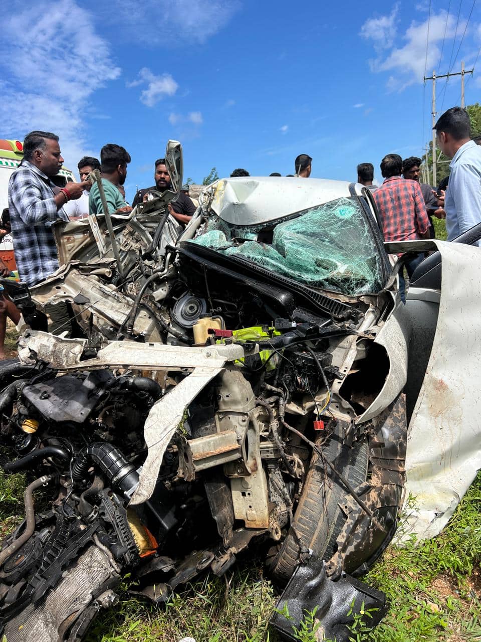 ಘಟನೆ ವಿವರ?:ಮೈಸೂರು ಕಡೆಯಿಂದ ಬರುತ್ತಿದ್ದ ಕಾರು ಮತ್ತೊಂದು ವಾಹನ ಓವರ್ ಟೇಕ್ ಮಾಡಲು ಯತ್ನಿಸುತ್ತಿದ್ದು, ಎದುರು ಬರುತ್ತಿದ್ದ ಟಿಪ್ಪರ್ ಗೆ ಡಿಕ್ಕಿ ಹೊಡೆದಿದೆ ಎಂದು ಪ್ರತ್ಯೇಕ್ಷದರ್ಶಿಗಳು ತಿಳಿಸಿದ್ದಾರೆ. ಬೇಗೂರು ಪೊಲೀಸ್ ಠಾಣೆಯಲ್ಲಿ ಪ್ರಕರಣ ದಾಖಲಾಗಿದ್ದು, ಕಾರು, ಟಿಪ್ಪರ್ ಪೊಲೀಸರು ವಶಕ್ಕೆ ಪಡೆದಿದ್ದಾರೆ.