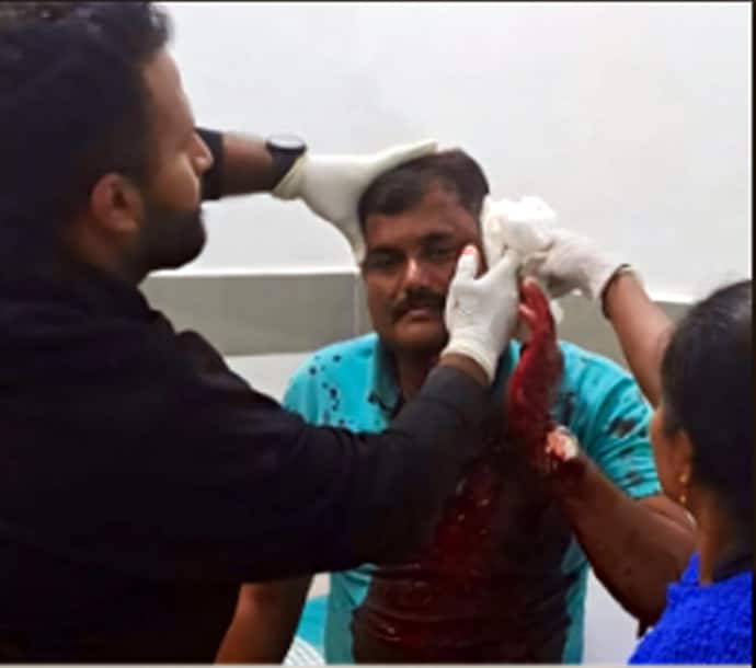 ಸತೀಶ ಅವರಿಗೆ ಗಂಭೀರ ಏಟಾಗಿದ್ದು ಆಸ್ಪತ್ರೆಯಲ್ಲಿ ಚಿಕಿತ್ಸೆ ಪಡೆಯುತ್ತಿದ್ದಾರೆ. ಎಂ. ಶಿವರ ಗ್ರಾ.ಪಂ. ಸದಸ್ಯ ಗೋವಿನಕೆರೆ ಗ್ರಾಮದ ರಾಮು ಅವರ ಮನೆಗೆ ಗಣೇಶ ಹಬ್ಬದ ನಿಮಿತ್ತ ಊಟಕ್ಕೆಂದು ಸತೀಶ ಬಂದಿದ್ದರು. ರಾಮು, ರಘು ಅವರು ಮದ್ಯ ಸೇವನೆ ಮಾಡುತ್ತಾ ಕುಳಿತಿದ್ದಾಗ ಆಹ್ವಾನದ ಮೇರೆಗೆ ರಾಮಸ್ವಾಮಿ ಸಹ ಬಂದಿದ್ದರು. ತಾಲೂಕು ಸರ್ಕಾರಿ ನೌಕರರ ಸಂಘದ ಚುನಾವಣೆ ವಿಚಾರವಾಗಿ ಅಧಿಕಾರಿಗಳಿಬ್ಬರ ನಡುವೆ ವೈಮನಸ್ಸು ಉಂಟಾಗಿ ಮಾತನಾಡುತ್ತಿರಲಿಲ್ಲ. ಮದ್ಯ ಸೇವನೆ ಮಾಡುತ್ತಾ ಕುಳಿತಿದ್ದಾಗ ರಾಮು, ಶಿವರಾಜ್ ಅವರು ಜಗಳ ಬಿಟ್ಟು ಇಬ್ಬರು ಮಾತನಾಡಿಕೊಂಡಿರಿ ಎಂದು ಸಲಹೆ ನೀಡಿದ್ದಾರೆ. ಅದಕ್ಕೆ ಸತೀಶ್, ಅದರ ಬಗ್ಗೆ ಈಗ ಮಾತನಾಡುವುದು ಬೇಡ ಸುಮ್ಮನಿರಿ ಎಂದಿದ್ದಾರೆ. ಅಷ್ಟಕ್ಕೆ ಆಕ್ರೋಶಗೊಂಡ ರಾಮಸ್ವಾಮಿ ಅವಾಚ್ಯ ಶಬ್ದಗಳಿಂದ ನಿಂದಿಸುತ್ತಾ ಎದುರಿಗೆ ಇದ್ದ ಗಾಜಿನ ಬಾಟಲಿಯಿಂದ ತಲೆಗೆ ಹೊಡೆದಿದ್ದಾರೆ. ಗಾಜಿನ ಚೂರು ಮುಖಕ್ಕೆ ಬಿದ್ದು ಏಟಾಗಿದೆ. ಜೊತೆಗಿದ್ದವರೂ ಜಗಳ ಬಿಡಿಸಿ ಇಬ್ಬರನ್ನೂ ಅಲ್ಲಿಂದ ಕಳುಹಿಸಿದ್ದಾರೆ. ಗ್ರಾಮಾಂತರ ಠಾಣೆಯಲ್ಲಿ ದೂರು, ಪ್ರತಿ ದೂರು ದಾಖಲಾಗಿದೆ.