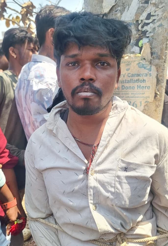 ಆಂಧ್ರಪ್ರಧೇಶದ ತಿರುಪತಿ ಮೂಲದ ರಮೇಶ್- ಉಷಾ ಎಂಬ ದಂಪತಿ ಬೆಂಗಳೂರಿನಲ್ಲಿ ದೊಡ್ಡಮ್ಮನ ಮಗಳ ಮದುವೆಗೆ ಹಣ ಕೊಡಲು ₹6 ಲಕ್ಷ ಹಣ ಕಾರಿನಲ್ಲಿ ತರುತ್ತಿದ್ದರು. ತಿರುಪತಿಯಿಂದ ನೇರವಾಗಿ ಚಿಕ್ಕಬಳ್ಳಾಪುರದ ಹೂವಿನ ಮಾರುಕಟ್ಟೆ ಸಮೀಪ ಬಂದು ಊಟಕ್ಕೆಂದು ಹೋಟೆಲ್ ಬಳಿ ಕಾರನ್ನು ನಿಲ್ಲಿಸಿದ್ದಾರೆ. ಊಟ ಮಾಡಿ ಹಣ ಇದ್ದ ಬ್ಯಾಗಿಂದ ₹500 ತೆಗೆದು ಕೊಟ್ಟಿದ್ದಾರೆ. ಇದನ್ನು ಗಮನಿಸಿಕೊಂಡಿದ್ದ ಕಳ್ಳರು ಬಂದು ತೆಲುಗಿನಲ್ಲಿ ಮಾತನಾಡಿಸಿ, ಇದ್ದಕ್ಕಿದ್ದಂತೆ ನಾಲ್ಕೈದು ಜನ ದಂಪತಿ ಮೇಲೆ ಹಾಡಹಗಲೇ ಅಟ್ಯಾಕ್ ಮಾಡಿ ಹಣ ಇದ್ದ ಬ್ಯಾಗನ್ನು ಕಿತ್ಕೊಂಡು ಅಲ್ಲಿಂದ ಪರಾರಿಯಾಗಿದ್ದಾರೆ. ಆದರೆ, ಕಾರಿನಲ್ಲಿದ್ದ ಆಂಧ್ರದ ಕುಟುಂಬ ಜೋರಾಗಿ ಕಿರುಚಾಡಿಕೊಂಡು ಕಳ್ಳರ ಹಿಂದೆ ಬಿದ್ದು ಅಟ್ಟಾಡಿಸಿದ್ದಾರೆ . ಅಷ್ಟೊತ್ತಿಗೆ ಹೂ ಮಾರುಕಟ್ಟೆಯ ಕಡೆ ಹಣ ಹಿಡಿದು ಓಡಿದ ಕಳ್ಳರು ದಿಕ್ಕಾಪಾಲಾಗಿ ಓಡಿದ್ದಾರೆ. ಕುಟುಂಬದವರು ಕೂಗಾಡುತ್ತಿದ್ದುದ್ದನ್ನು ಕಂಡ ಹೂ ಮಾರುಕಟ್ಟೆಯಲ್ಲಿ ಕೆಲಸ ಮಾಡುವ ಸಿಬ್ಬಂದಿ, ರೈತರು, ಅಲ್ಲಿಯೇ ಆಟವಾಡುತ್ತಿದ್ದ ಕೆ.ವಿ.ಕ್ಯಾಂಪಸ್ ನ ವಿದ್ಯಾರ್ಥಿಗಳು ಮತ್ತು ಸಾರ್ವಜನಿಕರು ಇಬ್ಬರು ಕಳ್ಳರನ್ನು ಹಿಡಿದುಕೊಂಡಿದ್ದಾರೆ. ಇಬ್ಬರು ಕಳ್ಳರನ್ನು ಕರೆತಂದು ಅಲ್ಲಿಯೇ ಇದ್ದ ಕಂಬಕ್ಕೆ ಕಟ್ಟಾಕಿ ಹಿಗ್ಗಾಮುಗ್ಗಾ ಥಳಿಸಿದ್ದಾರೆ. ಅಷ್ಟೊತ್ತಿಗಾಗಲೇ ಹಣದ ಬ್ಯಾಗಿನೊಂದಿಗೆ ಇನ್ನಿಬ್ಬರು ಕಳ್ಳರು ಅಲ್ಲಿಂದ ಪರಾರಿಯಾಗಿದ್ದಾರೆ.ವಿಚಾರ ತಿಳಿದ ನಂದಿ ಗಿರಿಧಾಮ ಪೊಲೀಸ್ ಠಾಣೆ ಸಿಬ್ಬಂದಿ ಸ್ಥಳಕ್ಕೆ ಬಂದು ಕಟ್ಟಾಕ್ಕಿದ್ದ ಕಳ್ಳರನ್ನು ಬಿಡಿಸಿ ವಶಕ್ಕೆ ಪಡೆದುಕೊಂಡು ದೂರು ದಾಖಲಿಸಿಕೊಂಡು ಇನ್ನಿಬ್ಬರು ಆರೋಪಿಗಳಿಗೆ ಬಲೆ ಬೀಸಿದ್ದಾರೆ.