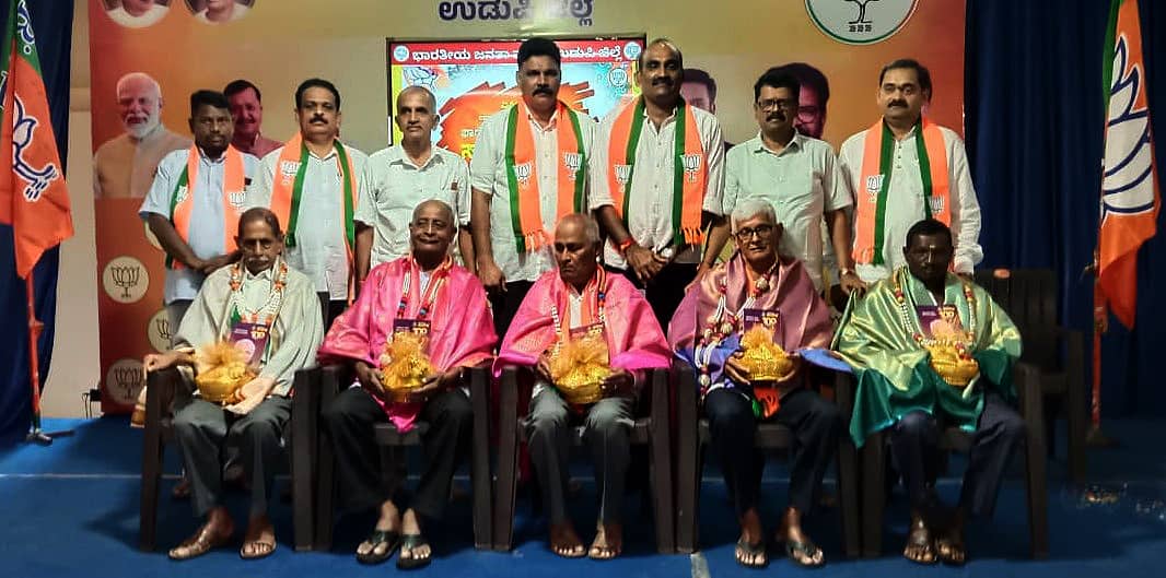 ಈ ಸಂದರ್ಭ ಪಕ್ಷದ ಹಿರಿಯ ಕಾರ್ಯಕರ್ತರಾದ ಕೆ.ಟಿ. ಪೂಜಾರಿ ಕೊಡವೂರು, ಕಾಳು ಶೇರಿಗಾರ್ ಕೊಡವೂರು, ದಯಾನಂದ ನಾಯಕ್ ಮಣಿಪಾಲ, ಬಿ. ರಮಾನಾಥ ಹೆಗ್ಡೆ ಹೆರ್ಗ, ಹೆರಿಯ ಅಮ್ಮುoಜೆ ಅವರನ್ನು ಸನ್ಮಾನಿಸಲಾಯಿತು. ಬಿಜೆಪಿ ಉಡುಪಿ ಜಿಲ್ಲಾಧ್ಯಕ್ಷ ಕುತ್ಯಾರು ನವೀನ್ ಶೆಟ್ಟಿ ಸನ್ಮಾನಿತರನ್ನು ಅಭಿನಂದಿಸಿ, ಸ್ಥಾಪನಾ ದಿನಾಚರಣೆ ಕುರಿತು ಮಾತನಾಡಿದರು. ಉಡುಪಿ ಶಾಸಕ ಯಶ್ಪಾಲ್ ಎ. ಸುವರ್ಣ ಬಿಜೆಪಿ ಸ್ಥಾಪನಾ ದಿನದ ಶುಭಾಶಯ ಹೇಳಿದರು.ಸನ್ಮಾನಿತರ ಪರವಾಗಿ ನಿವೃತ್ತ ಪ್ರಾಂಶುಪಾಲ ದಯಾನಂದ ನಾಯಕ್ ಮಣಿಪಾಲ ಅನಿಸಿಕೆ ವ್ಯಕ್ತಪಡಿಸಿ, ಅನುಭವ ಹಂಚಿಕೊಂಡರು. ಬಿಜೆಪಿ ಮಾಜಿ ಜಿಲ್ಲಾಧ್ಯಕ್ಷ ಕುಯಿಲಾಡಿ ಸುರೇಶ್ ನಾಯಕ್, ರಾಜ್ಯ ಎಸ್ ಸಿ ಮೋರ್ಚಾ ಉಪಾಧ್ಯಕ್ಷ ದಿನಕರ ಬಾಬು, ಬಿಜೆಪಿ ಜಿಲ್ಲಾ ಕಾರ್ಯಾಲಯ ಕಾರ್ಯದರ್ಶಿ ಸತ್ಯಾನಂದ ನಾಯಕ್ ಸಹಿತ ಪಕ್ಷದ ಪ್ರಮುಖರು, ಬಿಜೆಪಿ ಜಿಲ್ಲಾ, ಮೋರ್ಚಾ, ಪ್ರಕೋಷ್ಠ, ಮಂಡಲಗಳ ಸಹಿತ ವಿವಿಧ ಸ್ತರದ ಪದಾಧಿಕಾರಿಗಳು ಮತ್ತು ಕಾರ್ಯಕರ್ತರು ಉಪಸ್ಥಿತರಿದ್ದರು. ಜಿಲ್ಲಾ ಪ್ರಧಾನ ಕಾರ್ಯದರ್ಶಿ ಹಾಗೂ ಕಾರ್ಯಕ್ರಮದ ಜಿಲ್ಲಾ ಸಂಚಾಲಕ ದಿನಕರ ಶೆಟ್ಟಿ ಹೆರ್ಗ ಪ್ರಾಸ್ತಾವಿಕವಾಗಿ ಮಾತನಾಡಿದರು. ಜಿಲ್ಲಾ ಪ್ರಧಾನ ಕಾರ್ಯದರ್ಶಿ ಶ್ರೀಕಾಂತ್ ನಾಯಕ್ ವಂದೇ ಮಾತರಂ ಹಾಡಿದರು. ಜಿಲ್ಲಾ ಕಾರ್ಯದರ್ಶಿ ಶ್ರೀನಿಧಿ ಹೆಗ್ಡೆ ಸ್ವಾಗತಿಸಿ, ಶಿವಕುಮಾರ್ ಅಂಬಲಪಾಡಿ ನಿರೂಪಿಸಿ, ಗಿರೀಶ್ ಎಂ. ಅಂಚನ್ ವಂದಿಸಿದರು.