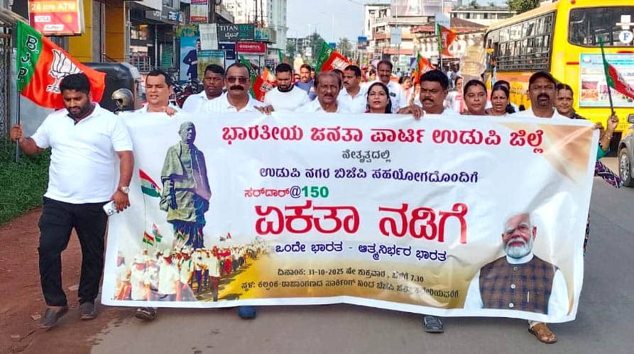 ಉಡುಪಿ: ನಾವು ಸಮಾಜಕ್ಕೆ ಕೊಡುಗೆ ನೀಡಿದ್ದರೆ ಜನತೆ ಸದಾ ನೆನಪಿಸಿಕೊಳ್ಳುತ್ತಾರೆ. ಒಂದು ದೇಶ, ಒಂದು ಸ್ವಾತಂತ್ರ್ಯ ಎಂಬ ಪರಿಕಲ್ಪನೆಯಡಿ ರಾಷ್ಟ್ರೀಯ ಏಕೀಕರಣಕ್ಕೆ ಕಾರಣರಾದ ಸರ್ದಾರ್ ವಲ್ಲಭ ಭಾಯಿ ಪಟೇಲ್ ಅವರ ಸಮರ್ಪಣಾ ಭಾವ, ಸೇವೆ ಸದಾ ಸ್ಮರಣೀಯವಾಗಿದೆ ಎಂದು ಬಿಜೆಪಿ ಮಂಗಳೂರು ವಿಭಾಗ ಪ್ರಭಾರಿ ಕೆ.ಉದಯ ಕುಮಾರ್ ಶೆಟ್ಟಿ ಹೇಳಿದ್ದಾರೆ.ಜಿಲ್ಲಾ ಬಿಜೆಪಿ ವತಿಯಿಂದ ಉಕ್ಕಿನ ಮನುಷ್ಯ ಸರ್ದಾರ್ ವಲ್ಲಭ ಭಾಯಿ ಪಟೇಲ್ ಅವರ 150ನೇ ಜನ್ಮ ದಿನಾಚರಣೆಯ ಅಂಗವಾಗಿ ಶುಕ್ರವಾರ, ಉಡುಪಿ ಕಲ್ಸಂಕದಿಂದ ಬಿಜೆಪಿ ಜಿಲ್ಲಾ ಕಚೇರಿಯ ವರೆಗೆ ನಡೆದ ಏಕತಾ ನಡಿಗೆ ಕಾರ್ಯಕ್ರಮ ಉದ್ದೇಶಿಸಿ ಮಾತನಾಡಿದರು.ಬಿಜೆಪಿ ಜಿಲ್ಲಾ ಉಪಾಧ್ಯಕ್ಷರಾದ ಕಿರಣ್ ಕುಮಾರ್ ಬೈಲೂರು, ಮಹಾವೀರ ಹೆಗ್ಡೆ, ನಳಿನಿ ಪ್ರದೀಪ್ ರಾವ್, ಜಿಲ್ಲಾ ಪ್ರಧಾನ ಕಾರ್ಯದರ್ಶಿಗಳಾದ ದಿನಕರ ಶೆಟ್ಟಿ ಹೆರ್ಗ, ರೇಷ್ಮಾ ಉದಯ ಶೆಟ್ಟಿ, ಶ್ರೀಕಾಂತ್ ನಾಯಕ್, ಜಿಲ್ಲಾ ಕಾರ್ಯದರ್ಶಿಗಳಾದ ಶಿವಕುಮಾರ್ ಅಂಬಲಪಾಡಿ, ಗಿರೀಶ್ ಎಂ. ಅಂಚನ್, ಜಿಲ್ಲಾ ಕಾರ್ಯಾಲಯ ಕಾರ್ಯದರ್ಶಿ ಸತ್ಯಾನಂದ ನಾಯಕ್, ಜಿಲ್ಲಾ ಪ್ರಕೋಷ್ಠಗಳ ಸಂಯೋಜಕ ದಿಲ್ಲೇಶ್ ಶೆಟ್ಟಿ, ರಾಜ್ಯ ಮಹಿಳಾ ಮೋರ್ಚಾ ಪ್ರಧಾನ ಕಾರ್ಯದರ್ಶಿ ಶಿಲ್ಪಾ ಜಿ. ಸುವರ್ಣ, ರಾಜ್ಯ ಎಸ್.ಸಿ. ಮೋರ್ಚಾ ಉಪಾಧ್ಯಕ್ಷ ದಿನಕರ ಬಾಬು, ಜಿಲ್ಲಾ ಮಹಿಳಾ ಮೋರ್ಚಾ ಅಧ್ಯಕ್ಷೆ ಸಂಧ್ಯಾ ರಮೇಶ್, ಪ್ರಮುಖರಾದ ಪೃಥ್ವಿರಾಜ್ ಶೆಟ್ಟಿ ಬಿಲ್ಲಾಡಿ, ಶಶಾಂಕ್ ಶಿವತ್ತಾಯ, ವಿಜಯ ಕೊಡವೂರು, ದಿನೇಶ್ ಅಮೀನ್, ರಾಜೀವ್ ಕುಲಾಲ್, ಪ್ರಭಾಕರ ಪೂಜಾರಿ, ರಜನಿ ಹೆಬ್ಬಾರ್, ರತ್ನಾಕರ ಇಂದ್ರಾಳಿ, ಶೈಲೇಂದ್ರ ಶೆಟ್ಟಿ, ಜಗದೀಶ್ ಆಚಾರ್ಯ ಕಪ್ಪೆಟ್ಟು, ರಶ್ಮಿತಾ ಬಾಲಕೃಷ್ಣ ಶೆಟ್ಟಿ, ನೀತಾ ಪ್ರಭು, ಶ್ರೀವತ್ಸ, ಡೇನಿಸ್ ಮಾಸ್ಕರೇನಸ್, ಸುಮಾ ನಾಯ್ಕ್, ರಮ್ಯಾ ರಾವ್ ಮುಂತಾದವರಿದ್ದರು.