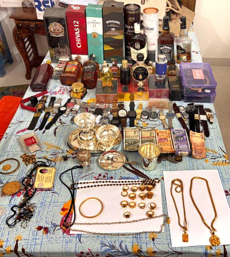 ಉಡುಪಿ: ಉಡುಪಿ ಜಿಲ್ಲಾ ಅಬಕಾರಿ ಜಿಲ್ಲಾ ಅಧಿಕಾರಿ ಶ್ರೀನಿವಾಸ್ ಟಿ.ಎಂ. ಅವರ ಮನೆ, ಕಚೇರಿಗಳಲ್ಲಿ ದಾಳಿ ನಡೆಸಿದ ಕರ್ನಾಟಕ ಲೋಕಾಯುಕ್ತ ಪೊಲೀಸರು ಅದಾಯಕ್ಕೆ ಮೀರಿದ ಸುಮಾರು 8,69,23,435 ರು. ಆಸ್ತಿಪಾಸ್ತಿಗಳನ್ನು ಪತ್ತೆ ಮಾಡಿದ್ದಾರೆ. ಲೋಕಾಯುಕ್ತ ಪೊಲೀಸರು ಶುಕ್ರವಾರ ಖಚಿತ ಮಾಹಿತಿ ಮೇರೆಗೆ ಉಡುಪಿ ಮತ್ತು ಇತರ ಜಿಲ್ಲೆಗಳಲ್ಲಿರುವ ಶ್ರೀನಿವಾಸ್ ಅವರಿಗೆ ಸೇರಿದ ಆಸ್ತಿಪಾಸ್ತಿಗಳಿರುವ 15 ಕಡೆಗಳಲ್ಲಿ ಏಕ ಕಾಲದಲ್ಲಿ ದಾಳಿ ನಡೆಸಿದ್ದರು. ಈ ಸಂದರ್ಭ ಒಟ್ಟು 11 ನಿವೇಶನಗಳು, 6 ವಾಸದ ಮನೆಗಳು, 31 ಎಕರೆ ಕೃಷಿ ಜಮೀನು, ಎಲ್ಲ ಸೇರಿ ಒಟ್ಟು 6.90,64,716 ರು. ಮೌಲ್ಯದ ಸ್ಥಿರಾಸ್ತಿ, 3,95,941 ರು. ನಗದು, 1,47,50,506 ರು. ಮೌಲ್ಯದ ಚಿನ್ನಾಭರಣ, 17,00,000 ರು. ಮೌಲ್ಯದ ವಾಹನಗಳು, 25,75,000 ರು. ಬ್ಯಾಂಕ್ ಠೇವಣಿ, 72,68,554 ರು. ಬೆಲೆಬಾಳುವ ವಿದೇಶಿ ಮದ್ಯ ಮತ್ತಿತರ ವಸ್ತುಗಳು ಸೇರಿ ಒಟ್ಟು ಮೌಲ್ಯ 2,66.90,001 ರು. ಮೌಲ್ಯದ ಚರಾಸ್ತಿಗಳನ್ನು ಪತ್ತೆ ಮಾಡಲಾಗಿದೆ.