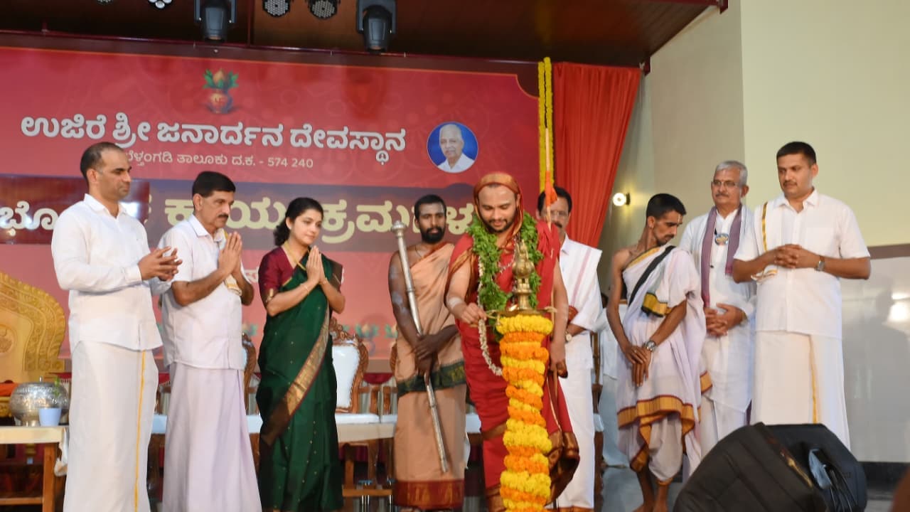 ಬೆಳ್ತಂಗಡಿ: ಆಗಮಗಳ ಪ್ರಕಾರ ದೇವಸ್ಥಾನ ಶರೀರ ಎಂದು ಭಾವಿಸಿದರೆ, ದೇವರು ಆತ್ಮನ ಸ್ವರೂಪದಲ್ಲಿರುತ್ತಾನೆ. ದೇವರ ಸಾನ್ನಿಧ್ಯದಲ್ಲಿ ಅರ್ಚಕರು ಹಾಗೂ ತಂತ್ರಿಗಳು ಮಾಡುವ ವೇದ, ಪುರಾಣಗಳ ಪಾರಾಯಣ, ಮಂತ್ರಪಠಣ, ಅನ್ನದಾನ ಮೊದಲಾದ ಕಾರ್ಯಗಳಿಂದ ದೇವರ ಸಾನ್ನಿಧ್ಯ ವೃದ್ಧಿಯಾಗಿ ಭಕ್ತರ ಪ್ರಾರ್ಥನೆ, ಅಭೀಷ್ಟಗಳು ಈಡೇರುತ್ತವೆ ಎಂದು ಹಂಗಾರಕಟ್ಟೆ ಬಾಳೆಕುದ್ರು ಮಠದ ಶ್ರೀ ವಾಸುದೇವ ಸದಾಶಿವಾಶ್ರಮ ಸ್ವಾಮೀಜಿ ಹೇಳಿದರು.ಅವರು ಸೋಮವಾರ ಉಜಿರೆಯಲ್ಲಿ ಕೃಷ್ಣಾನುಗ್ರಹ ಸಭಾಭವನದಲ್ಲಿ ಶ್ರೀ ಜನಾರ್ದನ ದೇವಸ್ಥಾನದ ಬ್ರಹ್ಮಕಲಶೋತ್ಸವದ ಪ್ರಾರಂಭೋತ್ಸವವನ್ನು ಉದ್ಘಾಟಿಸಿ ಶುಭ ಹಾರೈಸಿದರು.ನಾರಾಯಣ ತೇ ನಮೋ ನಮೋ ಎಂಬ ಭಕ್ತಿಗೀತೆಯನ್ನು ಸ್ವಾಮೀಜಿ ಸುಶ್ರಾವ್ಯವಾಗಿ ಹಾಡಿ ಶ್ರೋತೃಗಳ ಪ್ರಶಂಸೆಗೆ ಪಾತ್ರರಾದರು. ಬ್ರಹ್ಮಕಲಶದೊಂದಿಗೆ ಜನತಾ ಜನಾರ್ದನ ಸೇವೆ ನಿತ್ಯ, ನಿರಂತ ನಡೆಯಲಿ ಎಂದು ಸ್ವಾಮೀಜಿ ಶುಭ ಹಾರೈಸಿದರು. ಸುರುಚಿ ಪಾಕಶಾಲೆ ಉದ್ಘಾಟಿಸಿದ ಬೆಂಗಳೂರು ಕ್ಷೇಮವನದ ಸಿ.ಇ.ಒ. ಶ್ರದ್ಧಾ ಅಮಿತ್, ಮಾತನಾಡಿ ಪಾಕಶಾಲೆಯ ಎಲ್ಲ ವಿಭಾಗಗಳನ್ನೂ ರಂಗೋಲಿ, ಫಲ-ಪುಷ್ಪ, ತರಕಾರಿ, ಎಲೆಗಳು, ಇತ್ಯಾದಿ ಪ್ರಾಕೃತಿಕ ಪರಿಕರಗಳನ್ನು ಬಳಸಿ ಆಕರ್ಷಕ ವಿನ್ಯಾಸದಿಂದ ಸಿಂಗರಿಸಲಾಗಿದೆ ಎಂದು ಸಂತಸ ವ್ಯಕ್ತಪಡಿಸಿದರು.ಅನ್ನದಾನಕ್ಕೆ ವಿಶೇಷ ಮಹತ್ವ ಇದೆ ಹಾಗೂ ಭಕ್ತರು ತೃಪ್ತರಾದರೆ, ಭಗವಂತನೂ ತೃಪ್ತರಾಗುತ್ತಾರೆ ಎಂಬ ನಂಬಿಕೆಯ ನೆಲೆಯಲ್ಲಿ ಧರ್ಮಸ್ಥಳವೂ ಸೇರಿದಂತೆ ಎಲ್ಲ ದೇವಸ್ಥಾನಗಳಲ್ಲಿ ಅನ್ನದಾಸೋಹಕ್ಕೆ ಹೆಚ್ಚಿನ ಮಹತ್ವ ನೀಡುತ್ತಾರೆ. ಭಕ್ತರಲ್ಲೇ ನಾವು ದೇವರನ್ನು ಕಾಣಬಹುದು ಎಂದರು.