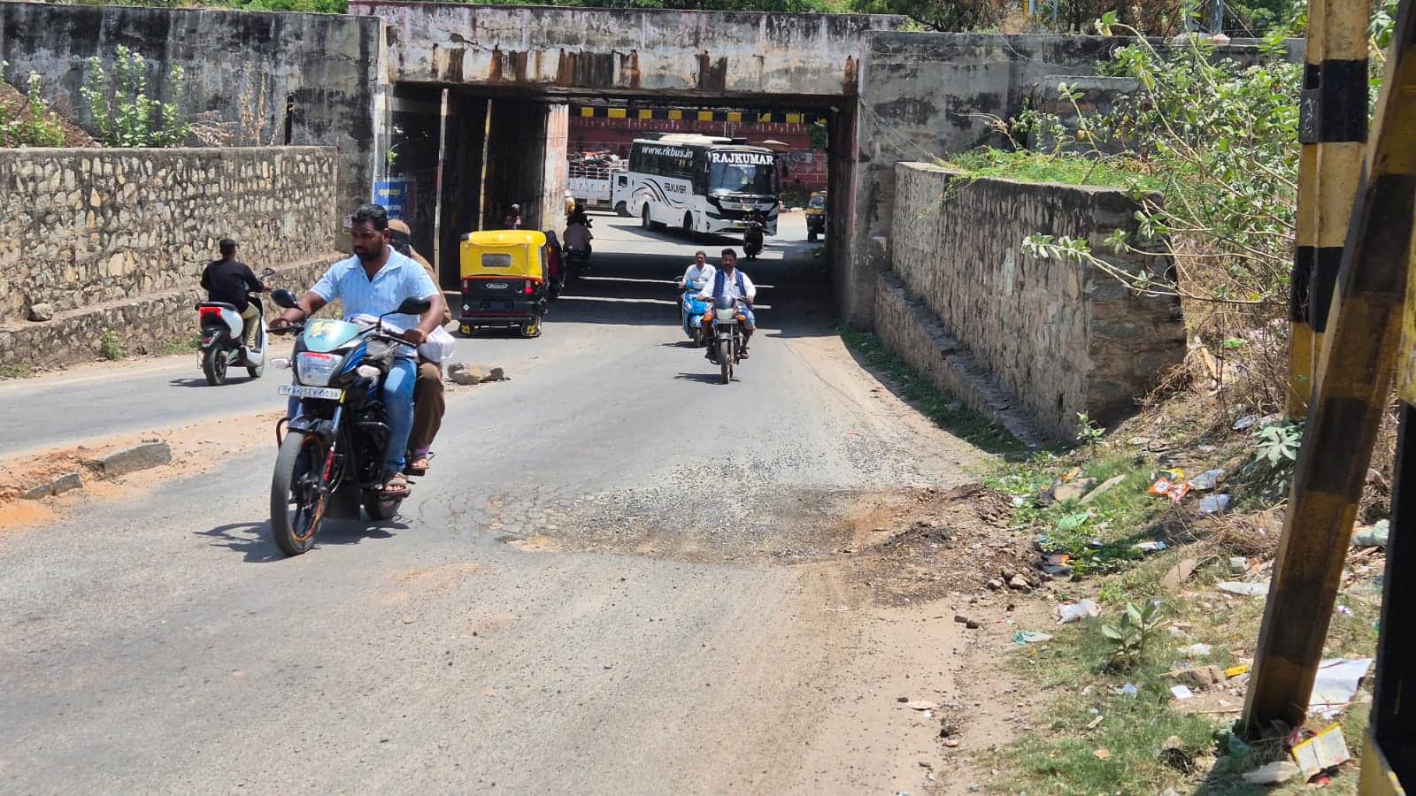 ಕುಸಿಯುತ್ತಿದೆ ರಸ್ತೆ: ಒಂದೆಡೆ ಅಂಡರ್ಪಾಸ್ನಲ್ಲಿ ಭಾರೀ ವಾಹನಗಳು ಸಿಲುಕಿ ಆವಾಂತರ ಸೃಷ್ಟಿಸುತ್ತಿದ್ದರೆ, ಇನ್ನೊಂದೆಡೆ ಅಂಡರ್ಪಾಸ್ ರಸ್ತೆ ನಿಧಾನವಾಗಿ ಕುಸಿಯುತ್ತಿರುವುದು ವಾಹನ ಸವಾರರಿಗೆ ಕಂಟಕವಾಗಿ ಪರಿಣಮಿಸಿದೆ. ಗದಗ ಕಡೆಯಿಂದ ಬೆಟಗೇರಿ ಕಡೆಗೆ ಹೋಗುವ ದ್ವಿಚಕ್ರ ವಾಹನ ಸವಾರರು, ಕುಸಿದ ರಸ್ತೆಯನ್ನು ಗಮನಿಸದೆ ಬಿದ್ದು ಗಾಯಗೊಳ್ಳುತ್ತಿದ್ದಾರೆ. ಸಣ್ಣ ಕಾರುಗಳು ಹಾನಿಗೊಳಗಾಗುತ್ತಿವೆ. ಬೆಟಗೇರಿ ಭಾಗದ ರಸ್ತೆಯ ಒಂದು ಕಡೆ, ನೀರಿನ ಪೈಪ್ಲೈನ್ಗೆ ತೋಡಿದ ಗುಂಡಿ ಮುಚ್ಚಿ ರಸ್ತೆಯಲ್ಲೆ ಗುಡ್ಡ ನಿರ್ಮಾಣವಾಗಿದ್ದರೆ, ಒಂದು ಕಡೆ ಭೂಕುಸಿತ ವಾಹನ ಸವಾರರಿಗೆ ಸವಾಲಾಗಿ ಪರಿಣಮಿಸಿದೆ. ಗದಗ ರೈಲ್ವೆ ನಿಲ್ದಾಣ ಸಮೀಪದ ಅಂಡರ್ಪಾಸ್ನಲ್ಲಿ ಭಾರೀ ವಾಹನಗಳು ಸಿಲುಕಿ ಸಮಸ್ಯೆ ಸೃಷ್ಟಿಸುವುದು ಗಮನಕ್ಕೆ ಬಂದಿದೆ. ಈ ಬಗ್ಗೆ ರೈಲ್ವೆ ಇಲಾಖೆ ಜತೆ ಚರ್ಚೆ ನಡೆಸಿ, ಸೂಕ್ತ ಕ್ರಮ ಕೈಗೊಳ್ಳಲಾಗುವುದು. ಇನ್ನು ಅಂಡರ್ಪಾಸ್ಗಳಲ್ಲಿ ರಸ್ತೆ ಕುಸಿದಿರುವ ಬಗ್ಗೆ ಪರಿಶೀಲನೆ ಮಾಡಿ ಕ್ರಮ ತೆಗೆದುಕೊಳ್ಳಲಾಗುವುದು ಎಂದು ಗದಗ ಬೆಟಗೇರಿ ನಗರಸಭೆ ಪೌರಾಯುಕ್ತ ರಾಜಾರಾಮ ಪವಾರ ಹೇಳಿದರು.