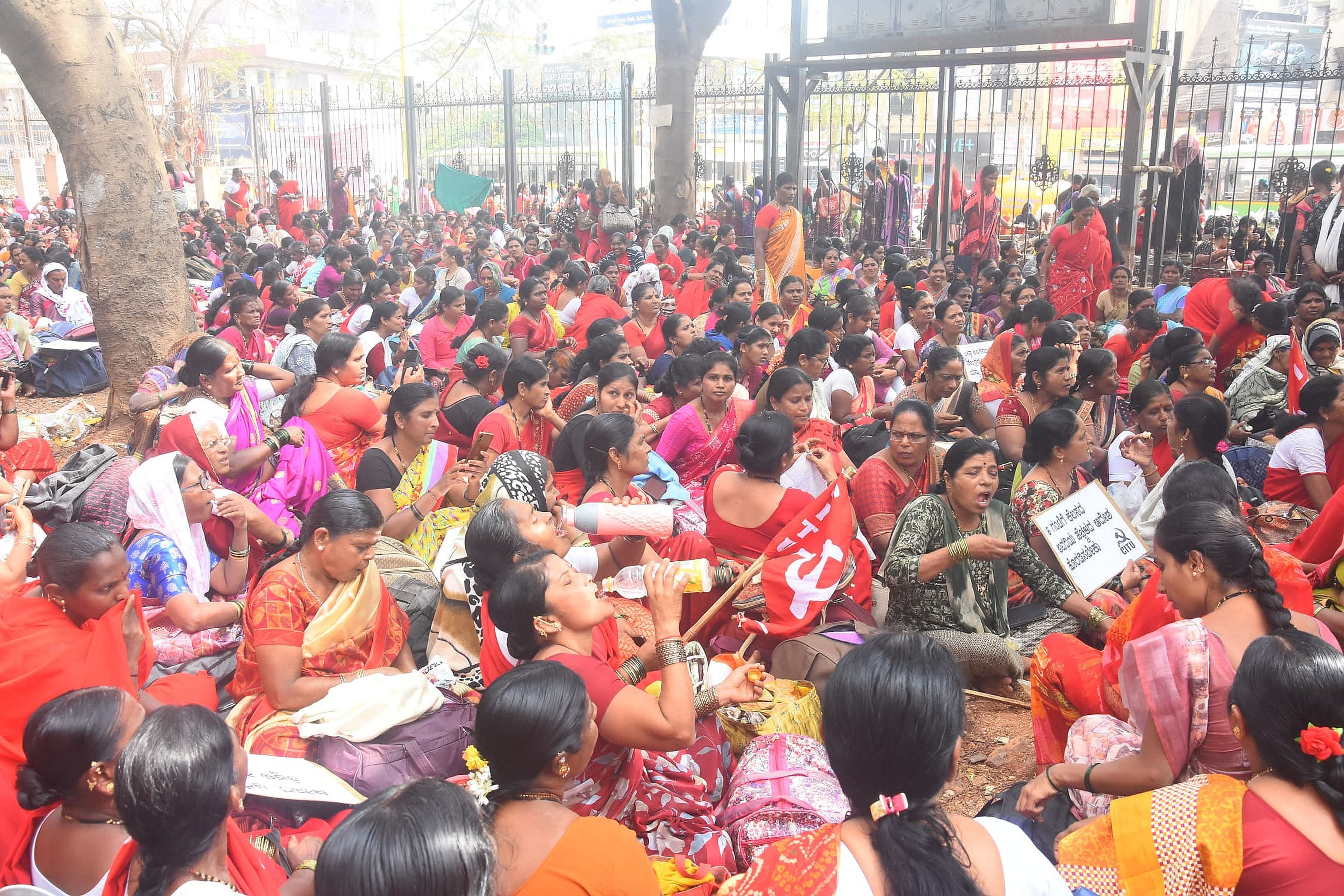 ಅಕ್ಷರದಾಸೋಹ ನೌಕರರ ಸಂಘದ ಪ್ರಧಾನ ಕಾರ್ಯದರ್ಶಿ ಮಾಲಿನಿ ಮೇಸ್ತಾ, ಸಿಐಟಿಯು ರಾಜ್ಯ ಕಾರ್ಯದರ್ಶಿ ಮಹೇಶ ಪತ್ತಾರ, ಅಂಗನವಾಡಿ ನೌಕರರ ಸಂಘದ ರಾಜ್ಯ ಉಪಾಧ್ಯಕ್ಷೆ ಯಮುನಾ ಗಾಂವಕರ, ಮುಖಂಡರಾದ ಲಕ್ಷ್ಮೀದೇವಮ್ಮ, ಸಿದ್ದಮ್ಮ ಕಲ್ಗುಡಿ, ಚನ್ನಮ್ನ ಡೊಳ್ಳಿನ, ದೊಡ್ಡವ್ವ ಪೂಜಾರ, ಶಾರದಾ ರೋಣದ, ಮಹೇಶ ಹಿರೇಮಠ, ಯಶೋದಾ ಬೇಟಗೇರಿ, ವಿದ್ಯಾ ವೈದ್ಯ, ಗಂಗಾ ನಾಯ್ಕ, ಜಯಶ್ರೀ ಹಿರೇಕರ, ಕಲಾವತಿ ಸೇರಿದಂತೆ ಸಾವಿರಾರು ಕಾರ್ಯಕರ್ತೆಯರು ಪಾಲ್ಗೊಂಡಿದ್ದರು.ಚಳಿಯಲ್ಲೇ ಮಲಗಿದ ಮಹಿಳೆಯರು