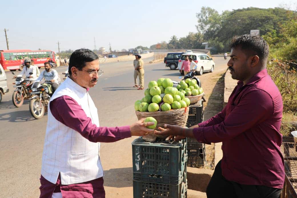 ಪ್ರಯಾಣದ ಮಧ್ಯೆ ನವಲೂರಿನ ಬಳಿ ಕೇಂದ್ರ ಸಚಿವ ಪ್ರಹ್ಲಾದ್ ಜೋಶಿ ಗಮನ ಸೆಳೆದಿದ್ದು, ತಮ್ಮ ವಾಹನವನ್ನು ನಿಲ್ಲಿಸಿ ಪೇರಲ ಹಣ್ಣು ಸವಿ ಸವಿದರು.
