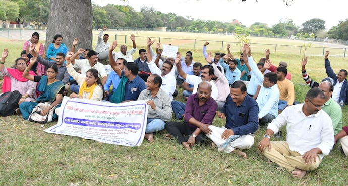 ಕನ್ನಡಪ್ರಭ ವಾರ್ತೆ ಮೈಸೂರುತಾತ್ಕಾಲಿಕ ಉಪನ್ಯಾಸಕರ ನೇಮಕಾತಿಯಲ್ಲಿ ಯುಜಿಸಿ, ನಾನ್ ಯುಜಿಸಿ ಎಂಬ ತಾರತಮ್ಯ ಮಾಡದೆ ವಿವಿಧ ಬೇಡಿಕೆ ಈಡೇರಿಸುವಂತೆ ಆಗ್ರಹಿಸಿ ಸರ್ಕಾರಿ ಪದವಿ ಕಾಲೇಜುಗಳ ಅತಿಥಿ ಉಪನ್ಯಾಸಕರ ರಾಜ್ಯ ಸಮನ್ವಯ ಸಮಿತಿ ಪದಾಧಿಕಾರಿಗಳು ನಗರದ ಮೈಸೂರು ವಿವಿ ಕ್ರಾಫರ್ಡ್ ಭವನದ ಎದುರು ಪ್ರತಿಭಟಿಸಿದರು.ಸೇವಾ ಜೇಷ್ಠತೆ, ಬೋಧನಾ ಅನುಭವ ಅತಿಥಿ ಉಪನ್ಯಾಸಕರ ಆಯ್ಕೆಯಲ್ಲಿ ಮಾನದಂಡ ಆಗಬೇಕು. ಈಗ ಉದ್ಭವಿಸಿರುವ ಕಾನೂನಾತ್ಮಕ ಬಿಕ್ಕಟ್ಟನ್ನು ಸರ್ಕಾರದ ಹಂತದಲ್ಲೇ ತೀರ್ಮಾನಿಸಬೇಕು. ಅತಿಥಿ ಉಪನ್ಯಾಸಕರ ಶಾಶ್ವತ ನೇಮಕಾತಿ ನಿಯಮ ರೂಪಿಸಲು ತಜ್ಞರ ಸಮಿತಿ ರಚಿಸಬೇಕು. ಇಡುಗಂಟನ್ನು 5 ಲಕ್ಷದಿಂದ 25 ಲಕ್ಷಕ್ಕೆ ಹೆಚ್ಚಿಸಬೇಕು ಎಂದು ಅವರು ಆಗ್ರಹಿಸಿದರು.ರಾಜ್ಯದ 432 ಸರ್ಕಾರಿ ಪ್ರಥಮ ದರ್ಜೆ ಕಾಲೇಜುಗಳಲ್ಲಿ 11 ಸಾವಿರಕ್ಕೂ ಹೆಚ್ಚು ಉಪನ್ಯಾಸಕರು ಕನಿಷ್ಠ ಗೌರವಧನ ಪಡೆದು ಕೆಲಸ ನಿರ್ವಹಿಸುತ್ತಿದ್ದಾರೆ. ರಾಜ್ಯ ಹೈ ಕೋರ್ಟ್ರಿಟ್ ಅರ್ಜಿಗೆ ಸಂಬಂಧಿಸಿದಂತೆ 2024ರ ಸೆ. 5ರಂದು ನೀಡಿರುವ ತೀರ್ಪು ಅತಿಥಿ ಉಪನ್ಯಾಸಕರ ಪಾಲಿಗೆ ಮರಣ ಶಾಸನವಾಗಿದೆ. ಈ ಹಿನ್ನೆಲೆಯಲ್ಲಿ 5,353 ಮಂದಿ ಅತಿಥಿ ಉಪನ್ಯಾಸಕರು ತಾತ್ಕಾಲಿಕ ಉದ್ಯೋಗದಿಂದ ವಂಚಿತರಾಗುತ್ತಾರೆ. ಈ ಹಿನ್ನೆಲೆಯಲ್ಲಿ ಸರ್ಕಾರ ಅತಿಥಿ ಉಪನ್ಯಾಸಕರ ಆಯ್ಕೆ ಪ್ರಕ್ರಿಯೆಯಲ್ಲಿ ಯುಜಿಸಿ ನಿಯಮ 2018ಕ್ಕಿಂತ ಹಿಂದಿನಿಂದ ಕಾರ್ಯನಿರ್ವಹಿಸಿದವರಿಗೆ ಅನ್ವಯಿಸಬಾರದು ಎಂದು ಅವರು ಕೋರಿದರು.ಈ ವೇಳೆ ಸಿಎಂ ನಿವಾಸಕ್ಕೆ ಮುತ್ತಿಗೆ ಹಾಕಲು ಯತ್ನಿಸಿದ ಪ್ರತಿಭಟನಾಕಾರರನ್ನು ಒವೆಲ್ ಮೈದಾನದಲ್ಲಿ ತಡೆದರು. ಅತಿಥಿ ಉಪನ್ಯಾಸಕರು ಅಲ್ಲೇ ಪ್ರತಿಭಟನೆ ಮುಂದುವರೆಸಿದರು.ಈ ಹಿನ್ನೆಲೆಯಲ್ಲಿ ಪೊಲೀಸರು ಸಿಎಂ ಭೇಟಿಗೆ ಸಮಯಾವಕಾಶ ಕೊಡಿಸಿದ್ದು, ಈ ಬಗ್ಗೆ ತೀರ್ಮಾನ ಆಗುವವರೆಗೂ ಓವೆಲ್ ಮೈದಾನದಲ್ಲೇ ಧರಣಿ ಮುಂದುವರೆಸಲು ನಿರ್ಧರಿಸಿದರು.ಪ್ರತಿಭಟನೆಯಲ್ಲಿ ಸರ್ಕಾರಿ ಪದವಿ ಕಾಲೇಜುಗಳ ಅತಿಥಿ ಉಪನ್ಯಾಸಕರ ರಾಜ್ಯ ಸಮನ್ವಯ ಸಮಿತಿ ರಾಜ್ಯಾಧ್ಯಕ್ಷ ಡಾ. ಸೋಮಶೇಖರ್ ಎಚ್. ಶಿಮೊಗ್ಗಿ, ರಾಜ್ಯ ಸಂಘಟನಾ ಕಾರ್ಯದರ್ಶಿ ನಾಗರಾಜು ಜಿ.ಎಸ್.ಮದ್ದೂರು, ಹನುಮಂತೇಶ್, ಹಾರೀಫ್, ರಾಜ್ಯ ಮಹಿಳಾ ಸಂಯೋಜಕಿ ಹರ್ಷಿತಾ, ಚಂದ್ರ ಕಾಂತ್ ಬೀದರ್, ಡಾ. ದಿವಾಕರ್ ಕೆ.ಆರ್.ನಗರ, ನೂರ್ ಅಹಮ್ಮದ್ ಕೋಲಾರ, ಸುನಿತಾ ಮೊದಲಾದವರು ಇದ್ದರು. ಮೂವತ್ತು ಮಂದಿಗೆ ಮೂನ್ನೂರು ಪೊಲೀಸರುಸರ್ಕಾರಿ ಪದವಿ ಕಾಲೇಜುಗಳ ಅತಿಥಿ ಉಪನ್ಯಾಸಕರು ಪ್ರತಿಭಟನೆಯಲ್ಲಿ ಕೇವಲ 25 ರಿಂದ 30 ಮಂದಿ ಮಾತ್ರ ಇದ್ದರು. ಆದರೆ ಅವರಿಗೆ ಬಂದೋಬಸ್ತ್ಕಲ್ಪಿಸಿದ್ದು ಮಾತ್ರ 300ಕ್ಕೂ ಹೆಚ್ಚು ಮಂದಿ ಪೊಲೀಸರು. ಅಶ್ಚರ್ಯ ಎಂದರೂ ಸತ್ಯ.ಪ್ರತಿಭಟನಾಕಾರರು ನ. 21ರಂದು ಮೈಸೂರಿಗೆ ಮುಖ್ಯಮಂತ್ರಿ ಸಿದ್ದರಾಮಯ್ಯ ಅವರು ಆಗಮಿಸುತ್ತಿರುವುದರಿಂದ ಅವರನ್ನು ಭೇಟಿಯಾಗಲು ಸಮಯಾವಕಾಶ ಕೇಳಿದ್ದೆ ಇಷ್ಟಕ್ಕೆ ಕಾರಣ. ನೀವು ಮುಖ್ಯಮಂತ್ರಿಗಳನ್ನು ಭೇಟಿಯಾಗಿ ಕೇಳುವುದು ಏನಿದೆ ಎಂಬುದು ಪೊಲೀಸರ ವಾದ.ಇದಿಷ್ಟಕ್ಕೆ 3 ವ್ಯಾನ್ಗಳಲ್ಲಿ ಪೊಲೀಸರು, ನಾಲ್ಕು ಮಂದಿ ಇನ್ಸ್ಪೆಕ್ಟರ್ಗಳು, ಒಬ್ಬರು ಎಸಿಪಿ, ಹತ್ತಕ್ಕೂ ಹೆಚ್ಚು ಮಂದಿ ಎಸ್ಐಗಳು, ನೂರಾರು ಮಂದಿ ಪೊಲೀಸರು ಇದ್ದರು. ಪ್ರತಿಭಟನೆಯಲ್ಲಿ ಪಾಲ್ಗೊಂಡಿದ್ದ ಮೂವರು ಮಹಿಳಾ ಅತಿಥಿ ಉಪನ್ಯಾಸಕರಿಗೆ ಮಫ್ತಿಯಲ್ಲಿ 15 ಮಂದಿ ಮಹಿಳಾ ಪೊಲೀಸರು ಕಾವಲಿದ್ದರು. ಇದಿಷ್ಟನ್ನೂ ನೋಡಿದ ಸಾರ್ವಜನಿಕರು ಏನೋ ಆಗಬಾ