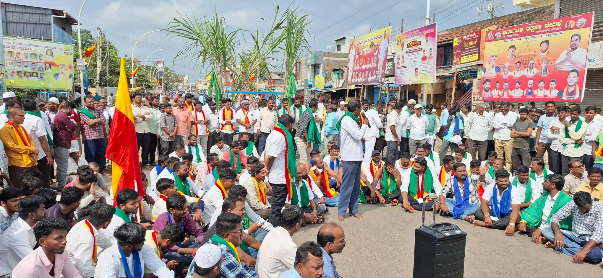 ಪ್ರತಿ ಟನ್ ಕಬ್ಬಿಗೆ ₹3500 ನಿಗದಿ ಪಡಿಸುವಂತೆ ಆಗ್ರಹಿಸಿ ಗುರ್ಲಾಪುರ ಕ್ರಾಸ್ದಲ್ಲಿ ಕಬ್ಬು ಬೆಳೆಗಾರರು ನಡೆಸುತ್ತಿರುವ ಹೋರಾಟಕ್ಕೆ ಬೆಂಬಲ ನೀಡಿ ದಲಿತ, ಕನ್ನಡ ಪರ ಸಂಘಟನೆ ಮತ್ತು ರೈತರು ಬುಧವಾರ ಕರೆ ನೀಡಿದ್ದ ರಾಯಬಾಗ ಪಟ್ಟಣ ಬಂದ್ಗೆ ಪಟ್ಟಣದ ನಾಗರಿಕರಿಂದ ಅಭೂತಪೂರ್ವ ಬೆಂಬಲ ವ್ಯಕ್ತವಾಯಿತು.