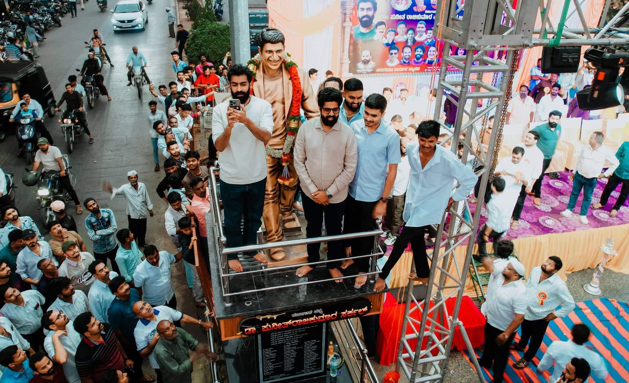 ಕನ್ನಡ ಚಿತ್ರರಂಗದಲ್ಲಿ ಡಾ.ರಾಜಕುಮಾರ ಅವರಂತೆಯೇ ನಮ್ಮ ಚಿಕ್ಕಪ್ಪ ಡಾ.ಪುನೀತರಾಜಕುಮಾರ ಅವರ ಕೊಡುಗೆ ಅಪಾರವಾಗಿದೆ. ಗೋಕಾಕ ಚಳುವಳಿಯ ಸಂದರ್ಭ ಹಾಗೂ ಇತರೆ ಸಂದರ್ಭದಲ್ಲಿ ಗೋಕಾಕ ನಗರಕ್ಕೆ ಡಾ.ರಾಜಕುಮಾರ ಒಡನಾಟವನ್ನು ನಟ ವಿನಯರಾಜಕುಮಾರ ಭಾವುಕರಾದರು.ನಗರದ ಲಕ್ಷ್ಮೀ ಚಿತ್ರಮಂದಿರದ ಬಳಿಯ ಕರ್ನಾಟಕ ರತ್ನ ಡಾ.ಪುನೀತ ರಾಜಕುಮಾರ ವೃತ್ತದಲ್ಲಿ ಅವರ ಅಭಿಮಾನಿ ಬಳಗ ನಿರ್ಮಿಸಿರುವ ನೂತನ ಡಾ.ಪುನೀತ ರಾಜಕುಮಾರ ಅವರ ಪುತ್ಥಳಿಯನ್ನು ಭಾನುವಾರ ಅನಾವರಣಗೊಳಿಸಿ ಮಾತನಾಡಿದರು. ಈ ಹಿಂದೆ ನಮ್ಮ ತಾತ ಡಾ.ರಾಜಕುಮಾರ ಅವರೊಂದಿಗೆ ಒಂದು ವರ್ಷದ ಮಗುವಿದ್ದಾಗ ಚಿತ್ರಕರಣ ಸಂದರ್ಭದಲ್ಲಿ ಗೋಕಾಕಕ್ಕೆ ಆಗಮಿಸಿದ್ದೆ. ಈಗ ಮತ್ತೆ ಗೋಕಾಕ ನಗರಕ್ಕೆ ಬರುವ ಭಾಗ್ಯ ಒದಗಿ ಬಂದಿದೆ ಎಂದರು.ನಗರಕ್ಕೆ ಆಗಮಿಸಿದ್ದ ನಟ ವಿನಯರಾಜಕುಮಾರರನ್ನು ಬೈಕ್ ರ್ಯಾಲಿ ಮೂಲಕ ಅಭಿಮಾನಿಗಳು ವೇದಿಕೆಗೆ ಸ್ವಾಗತಿಸಿದರು. ಕಾರ್ಯಕ್ರಮವನ್ನು ಡಿಸಿಸಿ ಬ್ಯಾಂಕ್ ನಿರ್ದೇಶಕ ಅಮರನಾಥ ಜಾರಕಿಹೊಳಿ ಉದ್ಘಾಟಿಸಿದರು. ಅಫೇಕ್ಸ್ ಬ್ಯಾಂಕ್ ನಿರ್ದೇಶಕ ರಾಹುಲ ಜಾರಕಿಹೊಳಿ, ಯುವನಾಯಕ ಸರ್ವೋತ್ತಮ ಜಾರಕಿಹೊಳಿ, ಮುಖಂಡರಾದ ಬಸವರಾಜ ಕಲ್ಯಾಣಶೆಟ್ಟಿ, ಜಾವೇದ ಗೋಕಾಕ, ಇಸ್ಮಾಯಿಲ, ರಾಮಣ್ಣ ತಳ್ಳಿ, ಸಂಜು ಚಿಪ್ಪಲಕಟ್ಟಿ, ಶಂಕರ ಅಂಕದವರ, ಶಶಿ ಕನ್ನಪ್ಪನವರ, ರಮೇಶ ಮಾದರ, ಭಗವಂತ ಹುಳ್ಳಿ, ನೀಲಕಂಠ ಕಪ್ಪಲಗುದ್ದಿ, ಪ್ರಕಾಶ ತಳ್ಳಿ, ರಮೇಶ ಬಡೆಪ್ಪಗೋಳ, ಡಾ.ಪುನೀತ ರಾಜಕುಮಾರ ಅಭಿಮಾನಿ ಬಳಗದ ಅಧ್ಯಕ್ಷ ಅಪ್ಪು ಬಡೆಪ್ಪಗೋಳ, ಉಪಾಧ್ಯಕ್ಷ ಗೋವಿಂದ ವಡ್ಡರ ಸೇರಿ ಹಲವರು ಇದ್ದರು..