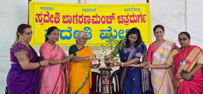 ಚಿತ್ರದುರ್ಗ ನಗರದಲ್ಲಿ ನಡೆಯುತ್ತಿರುವ ಸ್ವದೇಶಿ ಮೇಳದ ಎರಡನೇ ದಿನ ನಡೆದ ನಿತ್ಯ ಬಳಕೆ ವಸ್ತುಗಳ ತಯಾರಿಕಾ ಶಿಬಿರದಲ್ಲಿ ಮಂಜುಳಾ ಭೀಮರಾವ್ ಭಾಗವಹಿಸಿ ಮಾತನಾಡಿದರು.