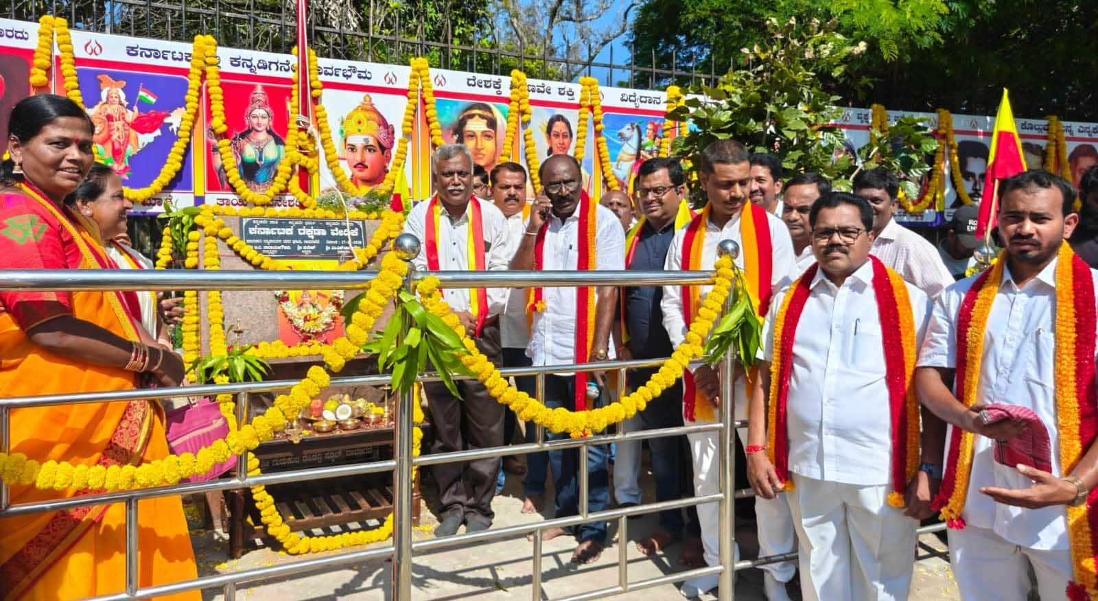 ಪಾಲಿಕೆ ಮಾಜಿ ಸದಸ್ಯ ಗಡಿಗುಡಾಳ ಮಂಜುನಾಥ ಮಾತನಾಡಿ, ನಮ್ಮ ಭಾಷೆ ಕನ್ನಡ ಉಳಿಸಿ ಬೆಳೆಸಲು 1947 ರಿಂದಲೂ ಕೂಡಾ ಅನೇಕ ಮಹನೀಯರು ಹೋರಾಟ ಮಾಡುತ್ತಾ ಬಂದಿದ್ದಾರೆ. 1956ರಲ್ಲಿ ಏಕೀಕರಣವಾಯಿತು. ಇದಕ್ಕೂ ಮೊದಲು ಸುಮಾರು 500ಕ್ಕೂ ಹೆಚ್ಚು ರಾಜ ವಂಶಸ್ಥರು ಆಡಳಿತ ಮಾಡಿಕೊಂಡು ಬಂದಿದ್ದರು. ಕನ್ನಡ ಏಕೀಕರಣವಾದ ಮೇಲೆ ಒಂದಾಗಿದೆ ಎಂದರು.ಕರವೇ ಜಿಲ್ಲಾಧ್ಯಕ್ಷ ಎಂ.ಎಸ್.ರಾಮೇಗೌಡ ಪ್ರಾಸ್ತಾವಿಕವಾಗಿ ಮಾತನಾಡಿ, ಕರವೇ ಹೋರಾಟದ ಹಾದಿಯನ್ನು ಸವಿವರವಾಗಿ ವಿವರಿಸಿದರು.