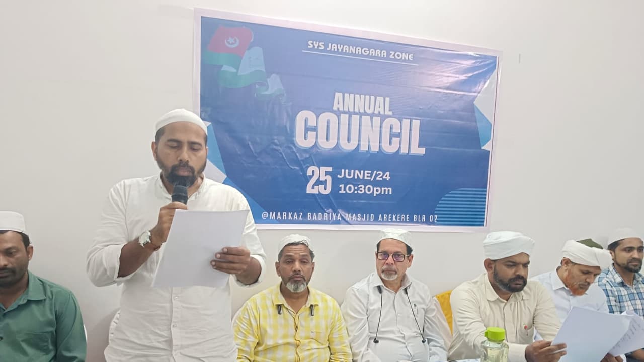 ಝೋನ್ ಕಾರ್ಯದರ್ಶಿ ಕಾರ್ಯದರ್ಶಿ ಅಕ್ನಾಸ್ ಆರೀಕೆರೆ ಮತ್ತು ಕೋಶಧಿಕಾರಿ ಆಶಿಕ್ ಪಯಾಡತ್ ಸಮಿತಿಯ ವಾರ್ಷಿಕ ವರದಿ ಮಂಡಿಸಿದರು. ಬಶೀರ್ ಸಅದಿಯವರ ಅಧ್ಯಕ್ಷತೆಯಲ್ಲಿ ನಡೆದ ವಾರ್ಷಿಕ ಕೌನ್ಸಿಲ್ ನಲ್ಲಿ ಮುಸ್ಲಿಂ ಜಮಾಅತ್ ಜಿಲ್ಲಾ ಕಾರ್ಯದರ್ಶಿ ಶಂಸುದ್ದೀನ್, ಫಿರ್ದೌಸ್ ಮಾರತಹಳ್ಳಿ ಉಪಸ್ಥಿತರಿದ್ದರು.ಶಿಹಾಬ್ ಮಡಿವಾಳ ಸ್ವಾಗತಿಸಿ, ಜಮಾಲ್ ಸಖಾಫಿ ಧನ್ಯವಾದ ಸಮರ್ಪಿಸಿದರು.