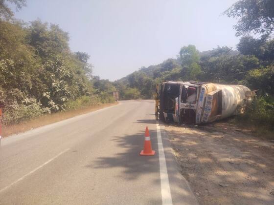 ಮಿಥೆನಾಲ್ ಗ್ಯಾಸ್ ಟ್ಯಾಂಕರ್ ಪಲ್ಟಿ: ಗ್ಯಾಸ್ ಸೋರಿಕೆ ತಡೆಗೆ ಕಾರ್ಯಾಚರಣೆ