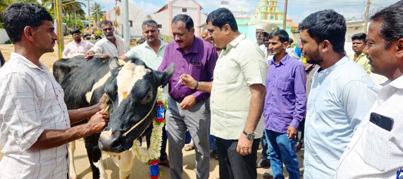 ಮೂರು ತಿಂಗಳು ತುಂಬಿದ ಎಲ್ಲಾ ಕರುಗಳಿಗೂ ಈ ಲಸಿಕೆ ಹಾಕಿಸುವುದು ಮತ್ತು ಮೂರರಿಂದ ಐದು ವಾರಗಳ ನಂತರ ಆ ರಾಸುಗಳಿಗೆ ಬೂಸ್ಟರ್ ಡೋಸ್ ಹಾಕಿಸುವುದು ಕಡ್ಡಾಯ. ಗರ್ಭಧರಿಸಿದ ರಾಸುಗಳಿಗೂ ಸಹ ಈ ಲಸಿಕೆ ಹಾಕಿಸಬೇಕು ಎಂದು ಮನವಿ ಮಾಡಿದರು.ಕಾರ್ಯಕ್ರಮದಲ್ಲಿ ಪಶು ವೈದ್ಯಕೀಯ ಸೇವಾ ಇಲಾಖೆ ಸಹಾಯಕ ನಿರ್ದೇಶಕ ಜವರೇಗೌಡ, ಡಾ.ಎಚ್.ಎಸ್.ದೇವರಾಜು, ಪಶು ವೈದ್ಯಾಧಿಕಾರಿಗಳಾದ ಡಾ.ಚೇತನ್, ಡಾ.ಸಾಗರ್, ಕತ್ತರಘಟ್ಟ ಡೇರಿ ಅಧ್ಯಕ್ಷ ಕೆ.ಎಸ್.ಉಪಾಧ್ಯಕ್ಷ ಶೇಖರ್, ಕಾರ್ಯದರ್ಶಿ ಚಂದ್ರಶೇಖರ್, ನಿರ್ದೇಶಕರಾದ ಸತೀಶ್ ಕುಮಾರ್, ವಿಶ್ವನಾಥ್, ಮನ್ಮುಲ್ ಸಿಬ್ಬಂದಿ ಮಂಜಯ್ಯ, ಮಂಜುನಾಥ್, ಚೇತನ್ ಚಂದ್ರು, ಪಶುಸಕಿ ರಮಾಮಣಿ, ಗೋವಿಂದರಾಜು, ವಿನಯ್ ಸೇರಿದಂತೆ ಹಲವರಿದ್ದರು.