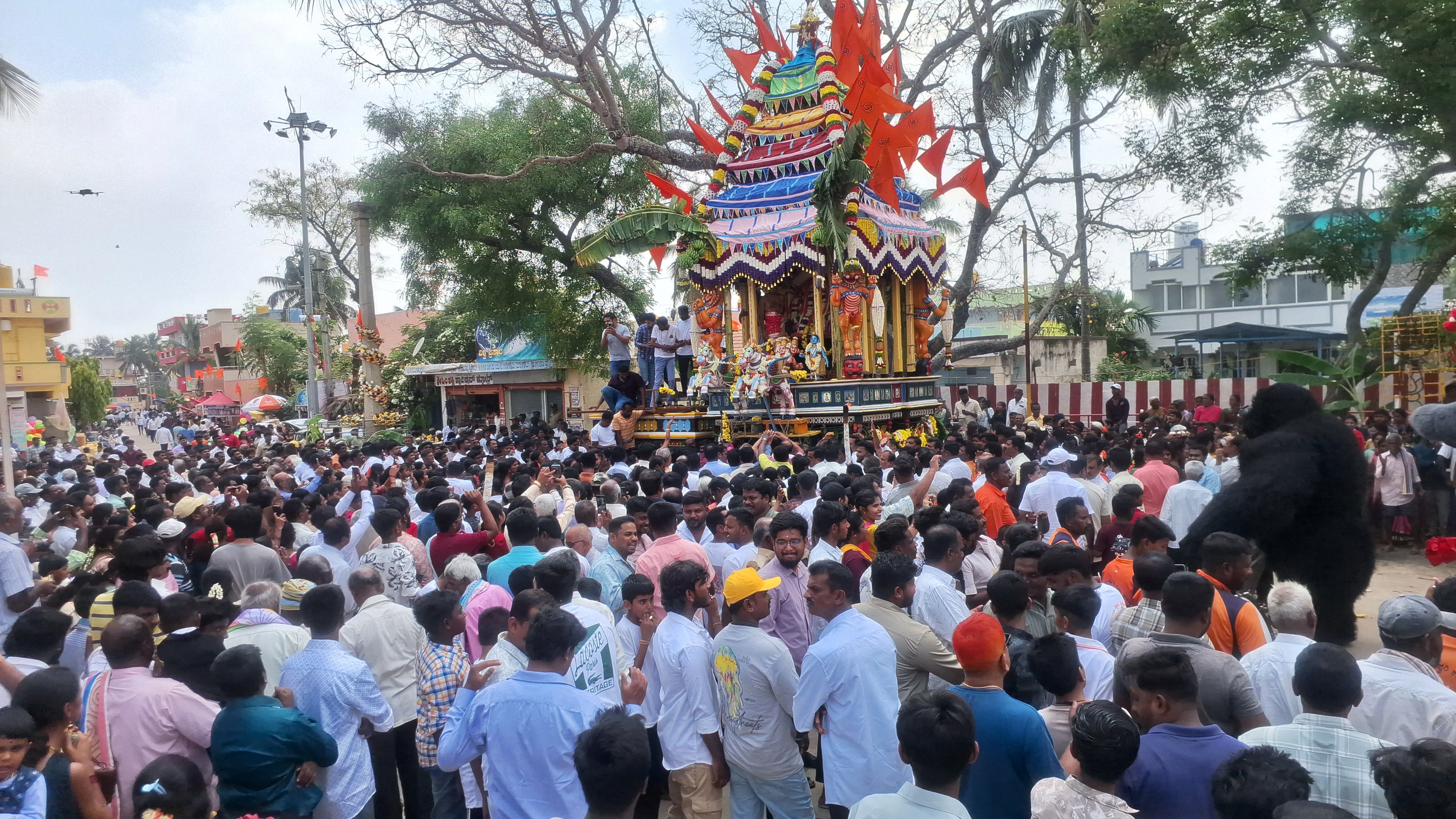 ವರದರಾಜಸ್ವಾಮಿ ಮೂರ್ತಿಗೆ ಪಂಚಾಮೃತ ಅಭಿಷೇಕ, ಹೂವಿನ ಅಲಂಕಾರ ಮಾಡಿ ಉತ್ಸವ ಮೂರ್ತಿಗಳಿಗೆ ವಿಶೇಷ ಪೂಜೆ ಸಲ್ಲಿಸಿ ರಥದಲ್ಲಿ ಕೂರಿಸಲಾಯಿತು. ಮಾಜಿ ಸಂಸದ ಬಿ.ಎನ್.ಬಚ್ಚೇಗೌಡರು ರಥಕ್ಕೆ ಪೂಜೆ ಸಲ್ಲಿಸಿ ಚಾಲನೆ ನೀಡಿದರು. ವರದರಾಜಸ್ವಾಮಿ ರಥಕ್ಕೆ ಧವನ ಬಾಳೆಹಣ್ಣು ಸಮರ್ಪಿಸಿ ಭಕ್ತರು ಹರಕೆ ತೀರಿಸಿದರು. ಭಕ್ತರಿಗೆ ಪಾನಕ, ಕೋಸಂಬರಿ, ಅನ್ನ ಸಂತರ್ಪಣೆ ಏರ್ಪಡಿಸಲಾಗಿತ್ತು.ರಥೋತ್ಸವ ಆಚರಣಾ ಸಮಿತಿ ಅಧ್ಯಕ್ಷ ನರೇಂದ್ರಪ್ಪ, ಧರ್ಮದರ್ಶಿ ಭಗವಾನ್, ರಥೋತ್ಸವ ಆಚರಣಾ ಸಮಿತಿ ಕಾರ್ಯದರ್ಶಿ ಹರಿಪ್ರಸಾದ್, ಶಾಸಕ ಶರತ್ ಪತ್ನಿ ಪ್ರತಿಭಾ, ಮುಖಂಡರಾದ ಸೊಣ್ಣೇಗೌಡ, ವಿ.ಎನ್.ಬ್ಯಾಟೇಗೌಡ, ವರದರಾಜು, ಸಿದ್ದಪ್ಪ, ವಿವಿ ನರೇಂದ್ರ, ವಿಎ.ಬ್ಯಾಟೇಗೌಡ, ಹರೀಶ್ ಕುಮಾರ್, ವಿಕೆ.ಸುರೇಶ್, ವಿವಿ.ಮಂಜುನಾಥ್, ಬಿಎಂ.ಮಂಜುನಾಥ್, ವಿಎಸ್.ಕೆಂಪೇಗೌಡ, ಸಂಪಂಗಿ ರಾಮಯ್ಯ ಗಣ್ಯರು ಹಾಜರಿದ್ದರು.