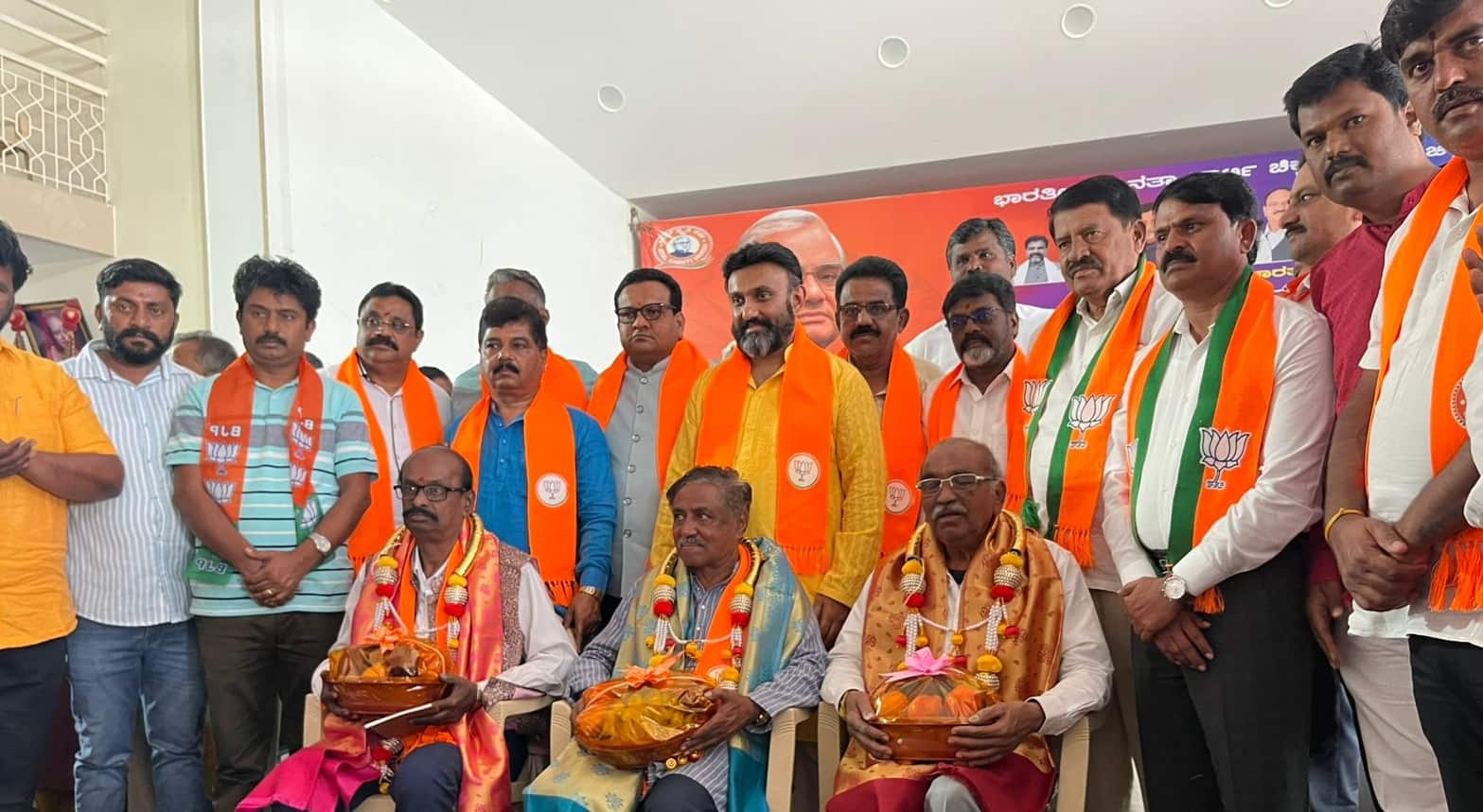 ಇದೇ ವೇಳೆ ಪಕ್ಷಕ್ಕಾಗಿ ದುಡಿದ ಹಿರಿಯರಾದ ಪತ್ರಕರ್ತ ರೂಪಸಿ ರಮೇಶ್, ನಿವೃತ್ತ ಪ್ರಾಂಶುಪಾಲ ಬಿ.ವಿ.ಕೃಷ್ಣಪ್ಪ ಮತ್ತು ಸಂಘ ಪರಿವಾರದ ಲಕ್ಷ್ಮೀನಾರಾಯಣಗುಪ್ತರನ್ನು ಸನ್ಮಾನಿಸಲಾಯಿತು.