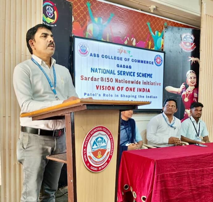 ಗದಗ: ಸರ್ದಾರ್ ವಲ್ಲಭಭಾಯಿ ಪಟೇಲರು ಭಾರತದ ಸಂವಿಧಾನ ರಚನೆಯಲ್ಲಿ ಪ್ರಮುಖ ಪಾತ್ರ ವಹಿಸಿದ್ದಾರೆ ಎಂದು ಪ್ರಾ. ಡಾ. ವಿ.ಟಿ. ನಾಯ್ಕರ್ ತಿಳಿಸಿದರು.ನಗರದ ಆದರ್ಶ ಶಿಕ್ಷಣ ಸಮಿತಿಯ ವಿ.ಆರ್. ಕುಷ್ಟಗಿ ಮೆಮೋರಿಯಲ್ ಕಾಲೇಜ್ ಆಫ್ ಕಾಮರ್ಸ್ನಲ್ಲಿ ರಾಷ್ಟ್ರೀಯ ಸೇವಾ ಯೋಜನಾ ಘಟಕದಿಂದ ಉಕ್ಕಿನ ಮನುಷ್ಯ ಸರ್ದಾರ್ ವಲ್ಲಭಭಾಯಿ ಪಟೇಲ್ ಅವರ 150ನೇ ಜಯಂತ್ಯುತ್ಸವ ಪ್ರಯುಕ್ತ ನಡೆದ ವಿಶೇಷ ಉಪನ್ಯಾಸ ಕಾರ್ಯಕ್ರಮ ಉದ್ಘಾಟಿಸಿ ಮಾತನಾಡಿದರು.