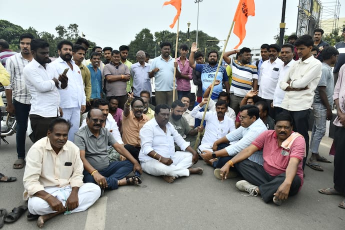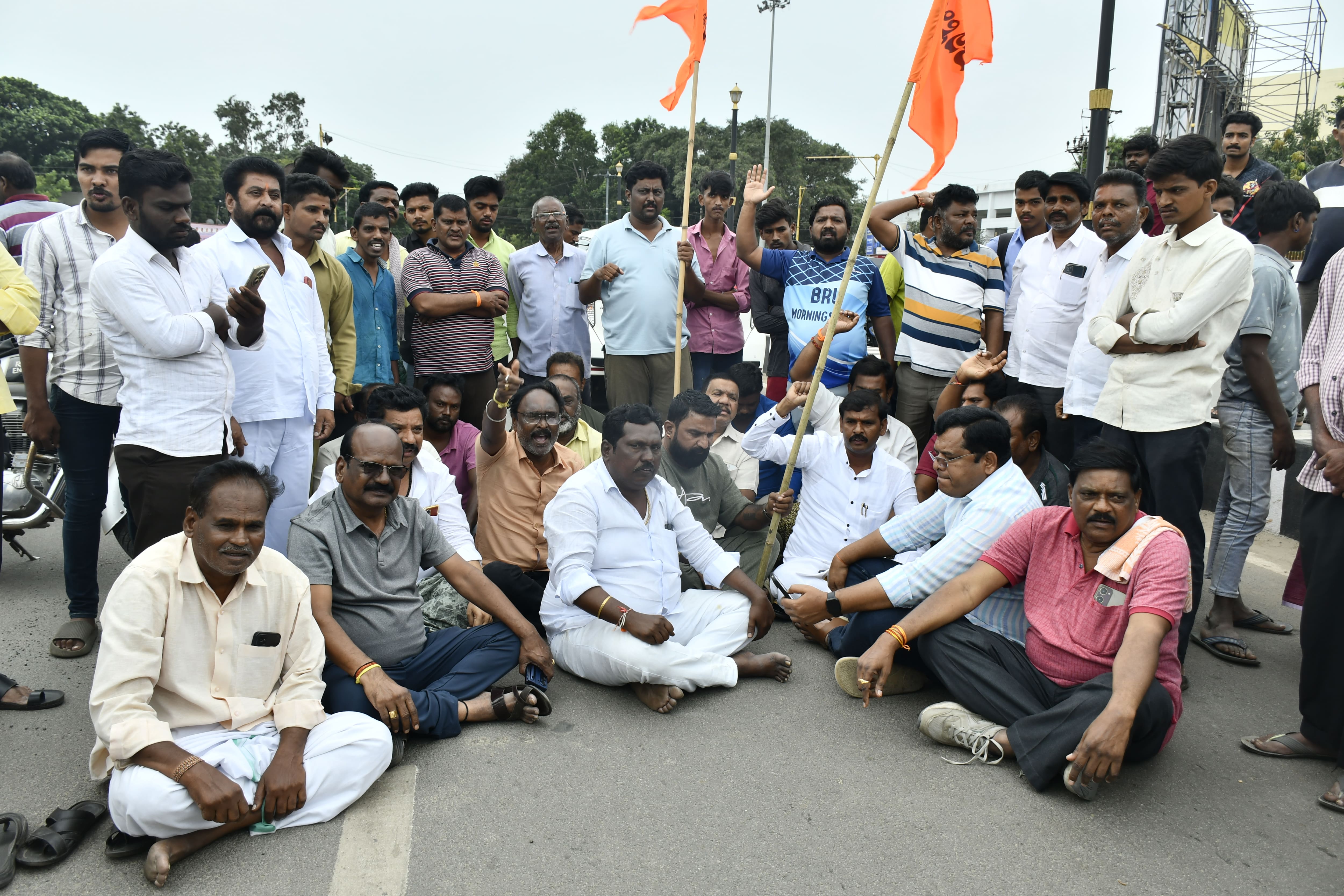 ಇಲ್ಲಿನ ಸಂಗಮ ವೃತ್ತ ಹಾಗೂ ಮಹಾನಗರ ಪಾಲಿಕೆ ಎದುರು ಜಮಾವಣೆಗೊಂಡ ವಾಲ್ಮೀಕಿ ಸಮಾಜದ ಮುಖಂಡರು ಬ್ಯಾನರ್ ತೆರವಿಗೆ ಆಕ್ರೋಶ ವ್ಯಕ್ತಪಡಿಸಿದರು.ಜಯಂತಿ ಅಂಗವಾಗಿ ಮಹಾನಗರ ಪಾಲಿಕೆಯ ಅನುಮತಿ ಪಡೆದು ನಗರದ ವಿವಿಧೆಡೆ ಅಳವಡಿಸಲಾಗಿದ್ದ 38 ಬ್ಯಾನರ್ಗಳನ್ನು ತೆರವುಗೊಳಿಸಲಾಗಿದೆ. ಬೇರೆ ಜಯಂತಿಗಳಲ್ಲಿ ಹಾಕಿದ ಬ್ಯಾನರ್ಗಳನ್ನು ತೆರವುಗೊಳಿಸದ ಪಾಲಿಕೆ ಅಧಿಕಾರಿಗಳು, ವಾಲ್ಮೀಕಿ ಜಯಂತಿಯ ಬ್ಯಾನರ್ಗಳನ್ನು ಮಾತ್ರ ತೆರವುಗೊಳಿಸುವುದರ ಉದ್ದೇಶವೇನು ? ಬ್ಯಾನರ್ ಕಿತ್ತು ರಸ್ತೆಗೆ ಎಸೆದಿದ್ದಾರೆ. ಇದು ಮಹರ್ಷಿ ವಾಲ್ಮೀಕಿ ಹಾಗೂ ಇಡೀ ವಾಲ್ಮೀಕಿ ಸಮುದಾಯಕ್ಕೆ ಮಾಡಿದ ಅಪಮಾನವಾಗಿದೆ ಎಂದು ಕಿಡಿಕಾರಿದರು.ಪ್ರತಿಭಟನಾ ಸ್ಥಳಕ್ಕೆ ಆಗಮಿಸಿದ ಜಿಲ್ಲಾಧಿಕಾರಿ ಕೆ.ನಾಗೇಂದ್ರ ಪ್ರಸಾದ್, ಆಯುಕ್ತ ಪಿ.ಎಸ್.ಮಂಜುನಾಥ ಹಾಗೂ ಜಿಲ್ಲಾ ಪೊಲೀಸ್ ವರಿಷ್ಠಾಧಿಕಾರಿ ಡಾ.ಶೋಭಾರಾಣಿ ಅವರು ಮನವೊಲಿಸಿದರಲ್ಲದೆ, ಬ್ಯಾನರ್ ತೆರವುಗೊಳಿಸಿದವರ ವಿರುದ್ಧ ಕ್ರಮ ಜರುಗಿಸಲಾಗುವುದು. ಹೋರಾಟವನ್ನು ಕೈ ಬಿಟ್ಟು ಸಹಕರಿಸಿ ಎಂದು ಮನವಿ ಮಾಡಿದರು.ಬಳಿಕ ಎಸ್ಪಿ ಕಚೇರಿಗೆ ತೆರಳಿದ ಸಮಾಜದ ಮುಖಂಡರು ಜಿಲ್ಲಾ ಪೊಲೀಸ್ ವರಿಷ್ಠಾಧಿಕಾರಿಗಳ ಜೊತೆ ಚರ್ಚಿಸಿದರು. ತೆರವುಗೊಳಿಸಿರುವ ಎಲ್ಲ ಬ್ಯಾನರ್ಗಳನ್ನು ಮತ್ತೆ ಅಳವಡಿಸಲು ಕ್ರಮ ವಹಿಸುತ್ತೇವೆ. ಸಮಾಜದ ಮುಖಂಡರ ಬೇಡಿಕೆಯಂತೆಯೇ ತಪ್ಪಿಸ್ಥರ ವಿರುದ್ಧ ಕ್ರಮ ಜರುಗಿಸುತ್ತೇವೆ ಎಂದು ಎಸ್ಪಿ ಶೋಭಾರಾಣಿ ಭರವಸೆ ನೀಡಿದ ಬಳಿಕ ಪ್ರತಿಭಟನೆ ಹಿಂದಕ್ಕೆ ಪಡೆಯಲಾಯಿತು.ಅಖಂಡ ಕರ್ನಾಟಕ ವಾಲ್ಮೀಕಿ ನಾಯಕರ ಒಕ್ಕೂಟದ ರಾಜ್ಯಾಧ್ಯಕ್ಷ ತಿಮ್ಮಪ್ಪ ಜೋಳದರಾಶಿ, ಜಿಲ್ಲಾ ಪ್ರಮುಖ ಮುಖಂಡರಾದ ಬಿ.ಆರ್.ಎಲ್. ಸೀನಾ, ಜೆಡಿಎಸ್ ಜಿಲ್ಲಾಧ್ಯಕ್ಷ ಮೀನಳ್ಳಿ ತಾಯಣ್ಣ, ಹಿರಿಯ ವಕೀಲ ಪಿ.ಜಯರಾಮ್, ಜನಾರ್ದನ ನಾಯಕ, ಬಿ.ರುದ್ರಪ್ಪ, ಎನ್.ದುರುಗಪ್ಪ, ಯರಗುಡಿ ಮುದಿ ಮಲ್ಲಯ್ಯ, ಸತ್ಯನಾರಾಯಣ, ಕಾಯಿಪಲ್ಯೆ ಬಸವರಾಜ್, ರೂಪನಗುಡಿ ಗೋವಿಂದಪ್ಪ, ಮೆಡಿಕಲ್ ಮಲ್ಲಿಕಾರ್ಜುನ, ಪಾಲಿಕೆ ಸದಸ್ಯ ಹನುಮಂತಪ್ಪ, ರೂಪನಗುಡಿ ವೆಂಕಟೇಶ್, ವಿ.ಕೆ.ಬಸಪ್ಪ, ಚಂದ್ರಶೇಖರ ಜೋಳದರಾಶಿ, ಬಸರಕೋಡು ಗಾದಿಲಿಂಗಪ್ಪ, ಹುಲಿಗೇಶ್, ಹವಾಂಭಾವಿ ಲೋಕೇಶ್, ಚನ್ನಕೇಶವ, ಸಂಗನಕಲ್ಲು ವಿಜಯಕುಮಾರ್ ಸೇರಿದಂತೆ ನೂರಾರು ಜನರು ಪ್ರತಿಭಟನೆಯಲ್ಲಿ ಭಾಗವಹಿಸಿದ್ದರು.