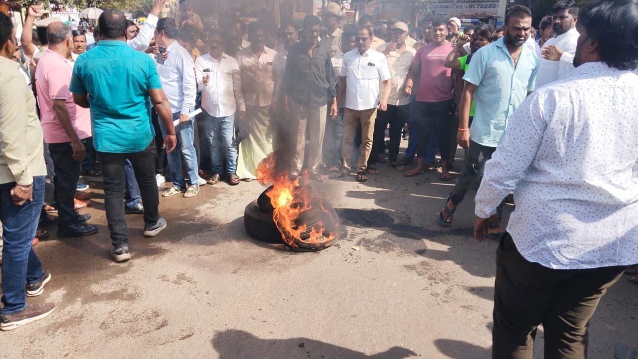 ನಗರದ ವಾಲ್ಮೀಕಿ ವೃತ್ತದಿಂದ ಎಸ್ಪಿ ಕಚೇರಿ ವರೆಗೆ ಬೈಕ್ ರ್ಯಾಲಿ ನಡೆಸಿ ಎಎಸ್ಪಿ ಸಲೀಂ ಪಾಷಾ ಅವರಿಗೆ ಮನವಿಪತ್ರ ಸಲ್ಲಿಸಿ, ಪ್ರಕರಣ ದಾಖಲಿಸಬೇಕು ಎಂದು ಮುಖಂಡರು ಒತ್ತಾಯಿಸಿದರು.ವಾಗ್ವಾದನಗರದ ವಾಲ್ಮೀಕಿ ವೃತ್ತದಲ್ಲಿ ಟೈರ್ಗೆ ಬೆಂಕಿ ಹಚ್ಚಿದಾಗ ಪೊಲೀಸರು ಹಾಗೂ ಮಾಜಿ ಸಚಿವ ಬಿ. ಶ್ರೀರಾಮುಲು ಬೆಂಬಲಿಗರ ನಡುವೆ ವಾಗ್ವಾದ ಕೂಡ ನಡೆಯಿತು. ಪ್ರತಿಭಟನೆ ಮಾಡೋಕೆ ಮಾತ್ರ ಅವಕಾಶ ಇದೆ. ಟೈರ್ ಗೆ ಬೆಂಕಿ ಹಚ್ಚೋಕೆ ಅವಕಾಶವಿಲ್ಲ ಎಂದು ಪೊಲೀಸರು ಹೇಳಿದಾಗ ವಾಗ್ವಾದ ನಡೆಯಿತು. ಬಳಿಕ ಬೈಕ್ ರ್ಯಾಲಿ ನಡೆಸಿ ಶಾಸಕ ಜನಾರ್ದನ ರೆಡ್ಡಿ ವಿರುದ್ಧ ಘೋಷಣೆ ಕೂಗಿ ಆಕ್ರೋಶ ವ್ಯಕ್ತಪಡಿಸಿದರು.