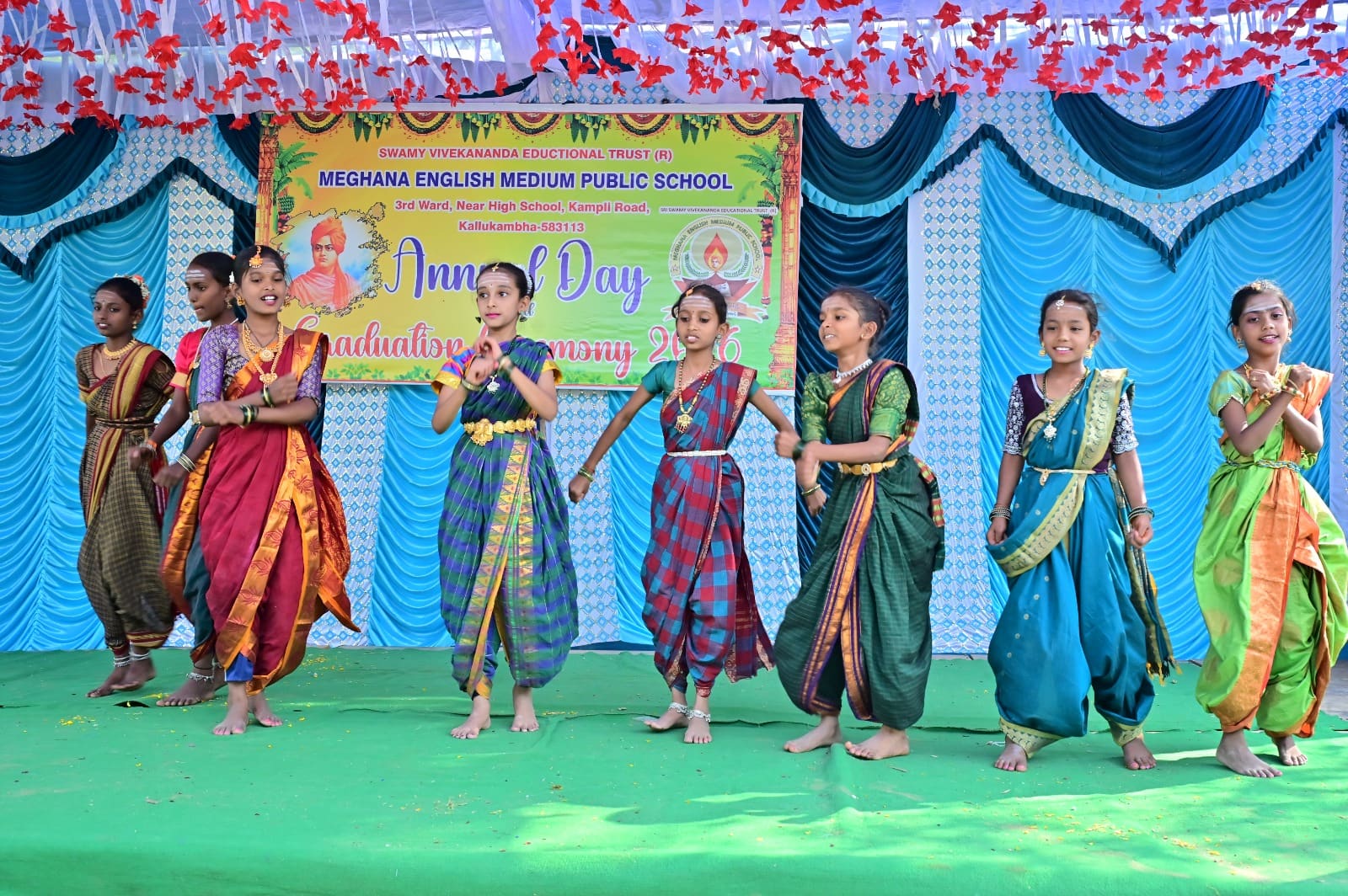 ಕುರುಗೋಡು ತಾಲೂಕು ಸಮೀಪದ ಕಲ್ಲುಕಂಭದ ಗ್ರಾಮದ ಮೇಘನಾ ಶಾಲೆಯಲ್ಲಿ ನಡೆದ ವಾರ್ಷಿಕೋತ್ಸವದಲ್ಲಿ ವಿದ್ಯಾರ್ಥಿಗಳು ಸಾಂಸ್ಕೃತಿಕ ಕಾರ್ಯಕ್ರಮಗಳು ಜರುಗಿದವು.