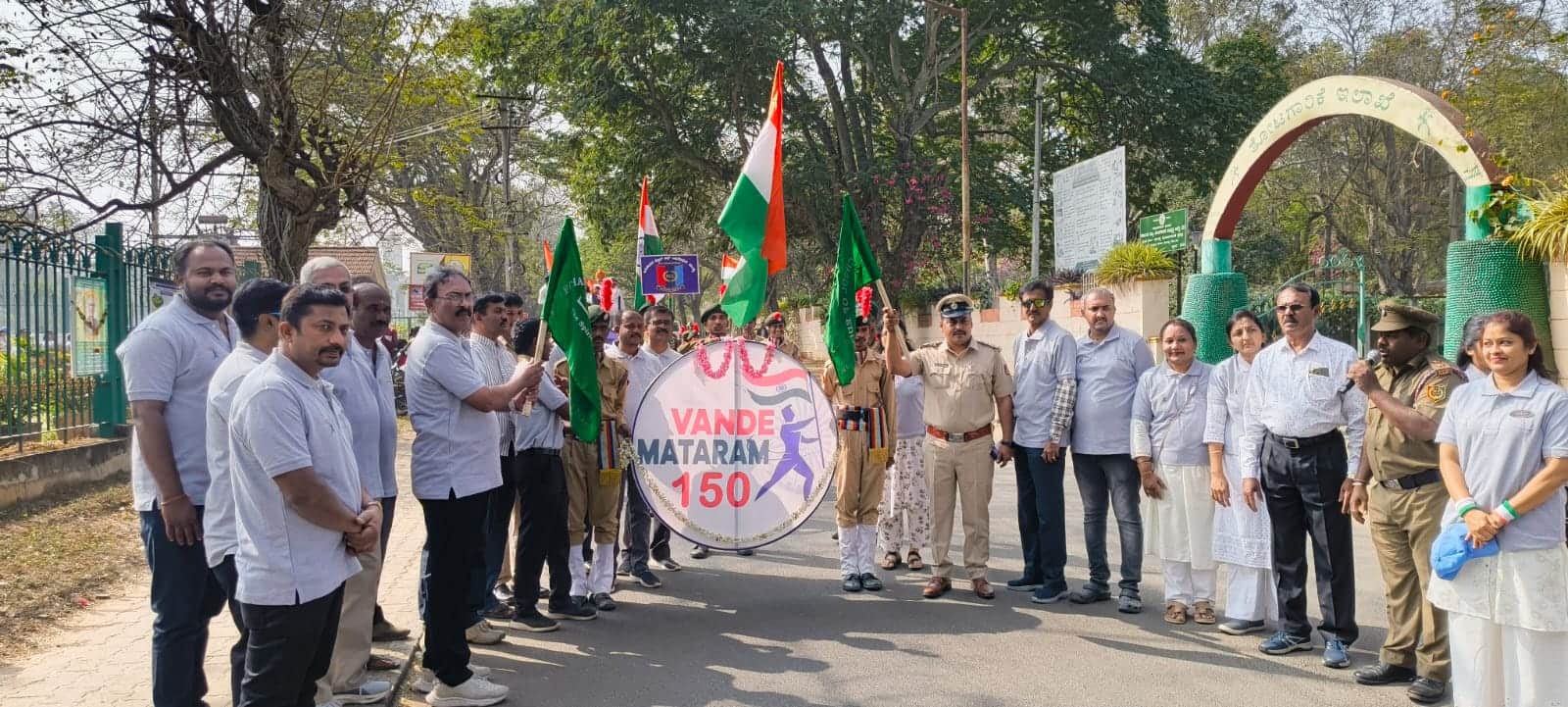 ಎನ್ಸಿಸಿ ಗೈಡ್ ಮಾಸ್ಟರ್ ರಾಜು ಮಾತನಾಡಿ, ಬ್ರಿಟಿಷರ ಸಂಕೋಲೆಯಲ್ಲಿ ದೇಶವಿದ್ದಾಗ ಸಾಹಿತಿ ಬಂಕಿಮ ಚಂದ್ರ ಚಟರ್ಜಿ ಅವರು 1875ರಲ್ಲಿ ಏಕತೆ ಮತ್ತು ಶೌರ್ಯ ಪ್ರತಿಬಿಂಬಿಸುವ ಹೋರಾಟದ ಗೀತೆಯಾಗಿ ಒಂದೇ ಮಾತರಂ ರಚನೆಗೊಳ್ಳುತ್ತದೆ.ಸ್ವಾತಂತ್ರ್ಯ ಸಂಗ್ರಾಮದ ಪೂರ್ತಿದಾಯಕ ಗೀತೆಯಾಗಿ ವಂದೇ ಮಾತರಂ ಗೀತೆಯು ಭಾರತ ದೇಶದಲ್ಲಿ ಸ್ವಾತಂತ್ರ್ಯ ಚಳವಳಿ ಹೋರಾಟ ಗೀತೆಯಾಗಿ ಮೈ ರೋಮಾಂಚನಗೊಳಿಸುವಂತೆ ಸದ್ದು ಮಾಡಿತು ಎಂದರು.