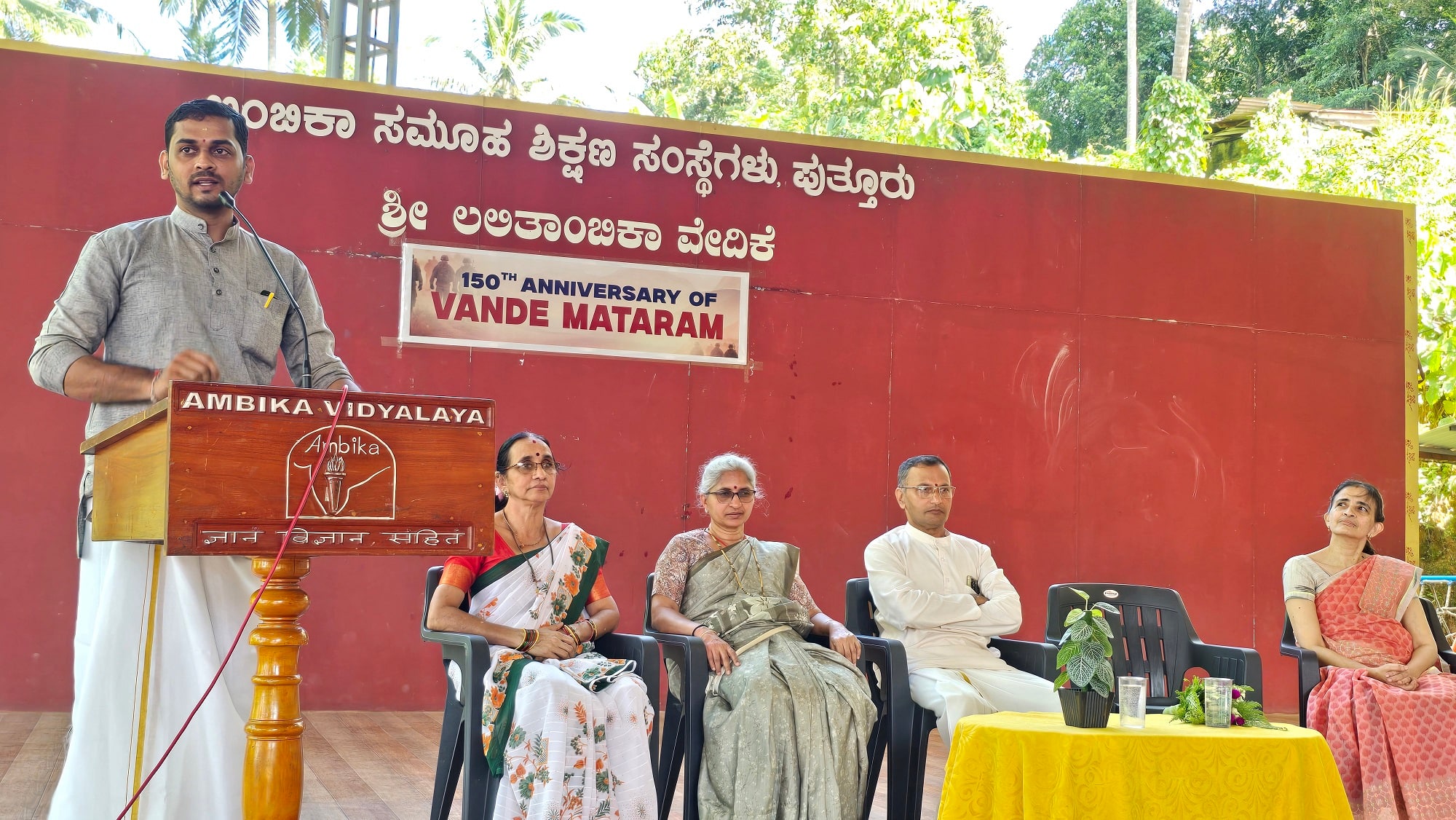 ಭಾರತ ಮಾತೆಯನ್ನು ದುರ್ಗೆಯಾಗಿ, ಸರಸ್ವತಿಯಾಗಿ, ಲಕ್ಷ್ಮೀಯಾಗಿ, ಅಮಲೆಯಾಗಿ, ಸುಜಲೆಯಾಗಿ, ಸುಶ್ಮಿತೆಯಾಗಿ ಕಂಡ ಕವಿ ಬಂಕಿಮಚಂದ್ರ ಚಟರ್ಜಿ ಅವರ ಲೇಖನಿಯಿಂದ ಮೂಡಿದ ಗೀತೆಯೇ ವಂದೇ ಮಾತರಂ. ಮೊಟ್ಟಮೊದಲ ಬಾರಿಗೆ ಅಂದಿನ ಕಾಂಗ್ರೆಸ್ ಸಮ್ಮೇಳನದಲ್ಲಿ ಹಾಡಿ ಈ ಗೀತೆಗೆ ಶಕ್ತಿಯನ್ನು ತುಂಬಿದವರು ವಿಷ್ಣು ದಿಗಂಬರ ಪುಲಸ್ಕರ್ ಎಂದು ಅಂಬಿಕಾ ಪದವಿಪೂರ್ವ ವಿದ್ಯಾಲಯದ ಉಪನ್ಯಾಸಕ ಆದರ್ಶ ಗೋಖಲೆ ಹೇಳಿದರು.ಅವರು ನಗರದ ನಟ್ಟೋಜ ಫೌಂಡೇಶನ್ ಟ್ರಸ್ಟ್ ಮುನ್ನಡೆಸುತ್ತಿರುವ ಬಪ್ಪಳಿಗೆಯಲ್ಲಿನ ಅಂಬಿಕಾ ವಿದ್ಯಾಲಯ ಸಿಬಿಎಸ್ಇ ಸಂಸ್ಥೆಯಲ್ಲಿ ವಂದೇ ಮಾತರಂ ಹಾಡಿನ ೧೫೦ನೇ ವರ್ಷಾಚರಣೆಯ ಪ್ರಯುಕ್ತ ಆಯೋಜಿಸಲಾದ ವಿಶೇಷ ಕಾರ್ಯಕ್ರಮದಲ್ಲಿ ಭಾಗವಹಿಸಿ ಉಪನ್ಯಾಸ ನೀಡಿದರು.ವೇದಿಕೆಯಲ್ಲಿ ಸಂಸ್ಥೆಯ ಅಧ್ಯಕ್ಷ ಸುಬ್ರಹ್ಮಣ್ಯ ನಟ್ಟೋಜ, ಕಾರ್ಯದರ್ಶಿ ರಾಜಶ್ರೀ ನಟ್ಟೋಜ, ಪ್ರಾಂಶುಪಾಲೆ ಮಾಲತಿ ಡಿ. ಹಾಗೂ ಉಪ ಪ್ರಾಂಶುಪಾಲೆ ಸುಜನಿ ಬೋರ್ಕರ್ ಉಪಸ್ಥಿತರಿದ್ದರು. ಸಭಾ ಕಾರ್ಯಕ್ರಮದ ಬಳಿಕ ವಿದ್ಯಾರ್ಥಿಗಳು ವಂದೇ ಮಾತರಂ ಹಾಡಿನ ಮಹತ್ವವನ್ನು ನಾಟಕದ ಮೂಲಕ ಪ್ರದರ್ಶಿಸಿ ವಂದೇ ಮಾತರಂ ಹಾಡಿಗೆ ಹೆಜ್ಜೆ ಹಾಕಿದರು. ವಿದ್ಯಾರ್ಥಿನಿಯರಾದ ಅನ್ವಿತಾ ಸ್ವಾಗತಿಸಿದರು. ಮನಸ್ವಿ ಕಾರ್ಯಕ್ರಮ ನಿರ್ವಹಿಸಿದರು. ಸಾಂಸ್ಕೃತಿಕ ಕಾರ್ಯಕ್ರಮವನ್ನು ಮಾನ್ಯ ಲಕ್ಷ್ಮೀ ಹಾಗೂ ಕುವಿರ ನಿರೂಪಿಸಿದರು.;Resize=(128,128))