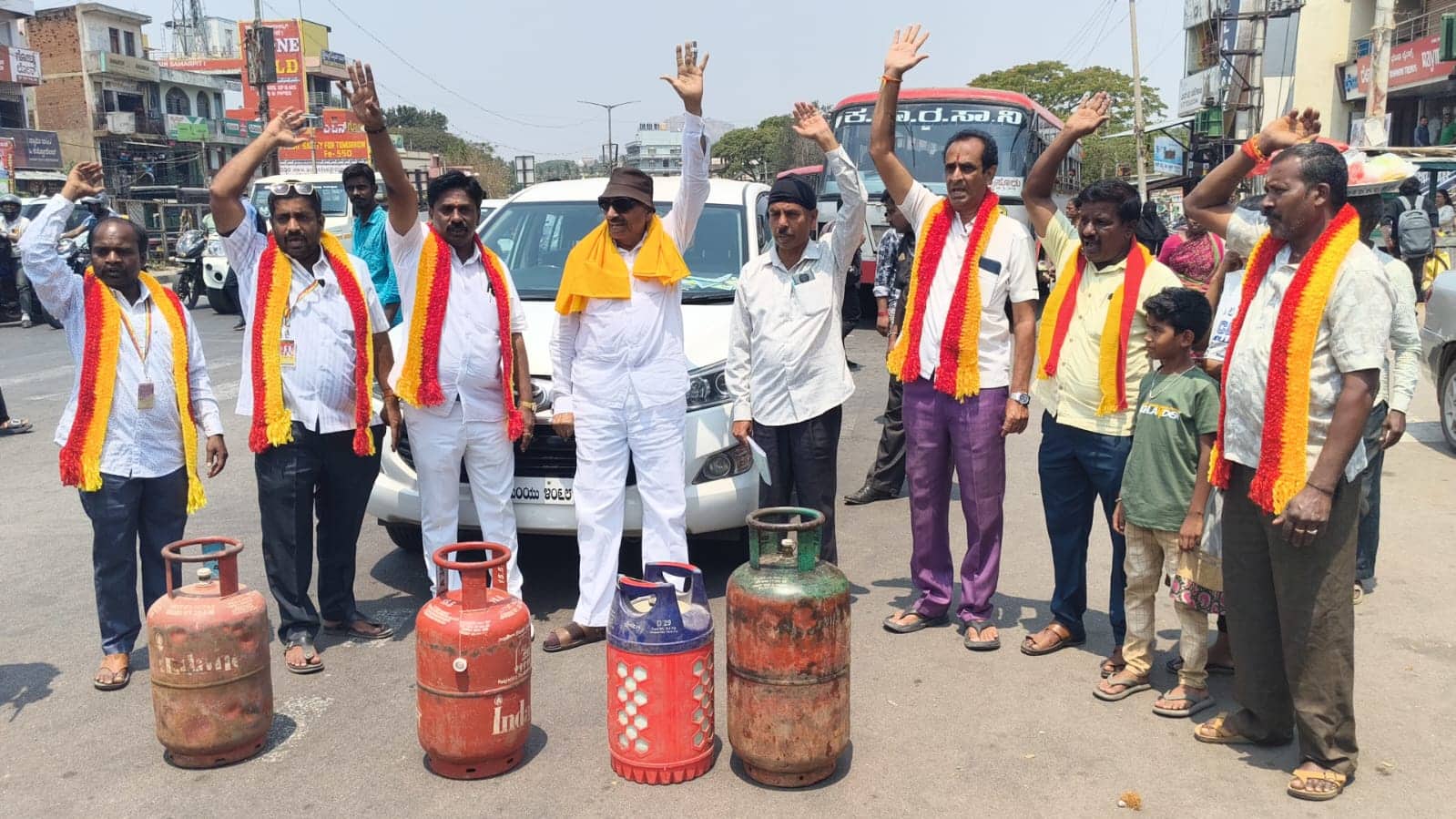 ಕೇಂದ್ರ ಮತ್ತು ರಾಜ್ಯ ಸರ್ಕಾರಗಳು ಜನಸಾಮಾನ್ಯರಿಗೆ ಅಡುಗೆ ಅನಿಲ ಸಿಲಿಂಡರ್ ಗಳನ್ನು ಸಮರ್ಪಕವಾಗಿ ಪೂರೈಕೆ ಮಾಡಬೇಕೆಂದು ಆಗ್ರಹಿಸಿ ಕನ್ನಡ ಚಳವಳಿ ವಾಟಾಳ್ ಪಕ್ಷದ ರಾಜ್ಯಾಧ್ಯಕ್ಷ ವಾಟಾಳ್ ನಾಗರಾಜ್ ಖಾಲಿ ಸಿಲಿಂಡರ್ ಮೇಲೆ ಕುಳಿತು ಸತ್ಯಾಗ್ರಹ ನಡೆಸಿದರು. ನಗರದ ಐಜೂರು ವೃತ್ತದಲ್ಲಿ ಕನ್ನಡಪರ ಸಂಘಟನೆಗಳೊಂದಿಗೆ ಖಾಲಿ ಸಿಲಿಂಡರ್ ಮೇಲೆ ಕುಳಿತು, ‘ನಿಲ್ಲಿಸಿ ನಿಲ್ಲಿಸಿ ಯುದ್ಧ ನಿಲ್ಲಿಸಿ’ ಎಂದು ಘೋಷಣೆಗಳೊಂದಿಗೆ ಸತ್ಯಾಗ್ರಹ ನಡೆಸಿದ ವಾಟಾಳ್ ನಾಗರಾಜ್ ರವರು, ಜನರ ಜೀವನ ಅಡುಗೆ ಅನಿಲದ ಮೇಲೆಯೇ ಅವಲಂಬಿಸಿದೆ. ಆದ್ದರಿಂದ ಗ್ಯಾಸ್ ಕೊರತೆಯಾಗದಂತೆ ಸರ್ಕಾರಗಳು ಕ್ರಮ ವಹಿಸಬೇಕು ಎಂದು ಆಗ್ರಹಿಸಿದರು.ಈ ಸಂದರ್ಭದಲ್ಲಿ ಮಾತನಾಡಿದ ವಾಟಾಳ್ ನಾಗರಾಜ್ , ಪ್ರಧಾನಮಂತ್ರಿ ನರೇಂದ್ರ ಮೋದಿ ಮತ್ತು ವಿಪಕ್ಷ ನಾಯಕ ರಾಹುಲ್ ಗಾಂಧಿಯವರು ನಿಯೋಗದಲ್ಲಿ ಅಮೆರಿಕಾ, ಇಸ್ರೇಲ್ ಹಾಗೂ ಇರಾನ್ ದೇಶಗಳ ನಾಯಕರನ್ನು ಭೇಟಿ ಮಾಡಿ ಮಹಾತ್ಮ ಗಾಂಧೀಜಿಯವರ ಶಾಂತಿ ಸಂದೇಶ ಸಾರಬೇಕು. ಜೊತೆಗೆ ಅವರ ತತ್ವ- ಸಿದ್ಧಾಂತಗಳಿಗೆ ಬದ್ಧರಾಗಿ ಯುದ್ಧ ನಿಲ್ಲಿಸುವಂತೆ ಮನವರಿಕೆ ಮಾಡಿಕೊಡಬೇಕು ಎಂದು ಒತ್ತಾಯಿಸಿದರು.