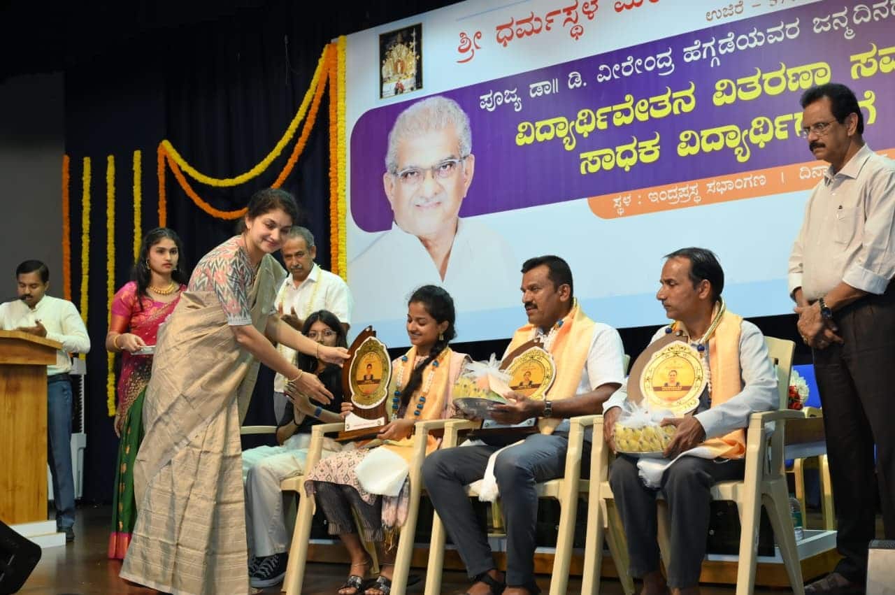 ಸಾಧಕ ವಿದ್ಯಾರ್ಥಿಗಳಿಗೆ ಸನ್ಮಾನ:2024- 25ನೇ ಸಾಲಿನ ದ್ವಿತೀಯ ಪಿಯುಸಿ ಪರೀಕ್ಷೆಯಲ್ಲಿ ಅತಿ ಹೆಚ್ಚು ಅಂಕ ಗಳಿಸಿ , ರಾಜ್ಯ ಮಟ್ಟದಲ್ಲಿ ಗುರುತಿಸಿಕೊಂಡ ಎಸ್.ಡಿ.ಎಂ. ಸಂಸ್ಥೆಯ ಪದವಿ ಪೂರ್ವ ಕಾಲೇಜಿನ ಸಾಧಕ ವಿದ್ಯಾರ್ಥಿಗಳಾದ ತುಷಾರ (ವಿಜ್ಞಾನ ವಿಭಾಗ), ನೀತಿ (ವಿಜ್ಞಾನ ವಿಭಾಗ), ಆರ್ಯ ದಿನೇಶ್ (ವಾಣಿಜ್ಯ ವಿಭಾಗ), ಅನನ್ಯಾ (ವಾಣಿಜ್ಯ ವಿಭಾಗ ) ಶ್ರೇಯಾ( ಕಲಾ ವಿಭಾಗ) ರವರಿಗೆ ಎಸ್.ಡಿ.ಎಂ ಸಂಸ್ಥೆ ಮತ್ತು ಪದವಿ ಪೂರ್ವ ಕಾಲೇಜಿನ ವತಿಯಿಂದ ಮುಖ್ಯ ಅಭ್ಯಾಗತರಾಗಿದ್ದ ಬೆಂಗಳೂರಿನ ಕ್ಷೇಮವನದ ಕಾರ್ಯನಿರ್ವಾಹಕ ನಿರ್ದೇಶಕಿ ಶ್ರದ್ಧಾ ಅಮಿತ್ ಸನ್ಮಾನಿಸಿದರು.ವಿದ್ಯಾರ್ಥಿ ವೇತನ ವಿತರಣೆ:ಡಾ.ಹೆಗ್ಗಡೆ ಜನ್ಮ ದಿನಾಚರಣೆಯ ಅಂಗವಾಗಿ ಕಾಲೇಜಿನಲ್ಲಿ ಶೈಕ್ಷಣಿಕವಾಗಿ ಸಾಧನೆಗೈದ ಒಟ್ಟು 129 ವಿದ್ಯಾರ್ಥಿಗಳಿಗೆ ಸುಮಾರು 30 ಲಕ್ಷ ರು.ಗೂ ಅಧಿಕ ಮೊತ್ತದ ವಿದ್ಯಾರ್ಥಿ ವೇತನ ನೀಡಲಾಯಿತು. ಸಾಂಕೇತಿಕವಾಗಿ ವೇದಿಕೆಯಲ್ಲಿ 10 ವಿದ್ಯಾರ್ಥಿಗಳಿಗೆ ಎಸ್.ಡಿ.ಎಂ ಶಿಕ್ಷಣ ಸಂಸ್ಥೆಗಳ ಕಾರ್ಯದರ್ಶಿ ಡಾ.ಸತೀಶ್ಚಂದ್ರ ಎಸ್. ವಿದ್ಯಾರ್ಥಿ ವೇತನ ಹಸ್ತಾಂತರಿಸಿದರು.