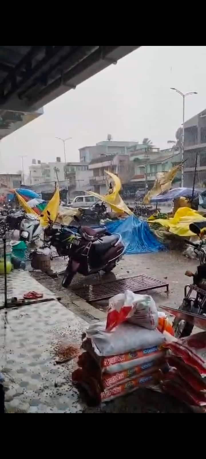 ಪಟ್ಟಣದಲ್ಲಿ ಮಂಗಳವಾರ ಸಂಜೆ ದಿಢೀರ್ ಸುರಿದ ಅಕಾಲಿಕ ಮಳೆಯಿಂದಾಗಿ ಜನ ಜೀವನ ಕೆಲಕಾಲ ಅಸ್ತವ್ಯಸ್ತಗೊಂಡಿತ್ತು. ಏಕಾಏಕಿ ಸುರಿದ ಮಳೆಯಿಂದಾಗಿ ಪಟ್ಟಣದಲ್ಲಿ ತರಕಾರಿ, ಹೂ, ಹಣ್ಣು ಮುಂತಾದವುಗಳ ಬೀದಿಬದಿ ವ್ಯಾಪಾರಿಗಳು ಪರದಾಡುವಂತಹ ಪರಿಸ್ಥಿತಿ ನಿರ್ಮಾಣವಾಗಿತ್ತು.ಮಳೆಯಿಂದಾಗಿ ತಮ್ಮ ತರಕಾರಿ ಮುಂತಾದ ವಸ್ತುಗಳನ್ನು ಕಾಪಾಡಿಕೊಳ್ಳಲು ಮಳೆಯಲ್ಲಿ ನೆನೆದುಕೊಂಡೆ ಟಾರ್ಪಲ್ ಗಳನ್ನು ಮುಚ್ಚುತ್ತಿದ್ದ ಇವರ ಗೋಳನ್ನು ಕೇಳುವವರು ಯಾರೂ ಇಲ್ಲದಂತಾಗಿದ್ದು, ವ್ಯಾಪಾರಕ್ಕೆ ಸೂಕ್ತ ವ್ಯವಸ್ಥೆ ಕಲ್ಪಿಸದೆ ಈ ಹಿಂದೆ ತಾವು ನಿರ್ಮಿಸಿಕೊಂಡಿದ್ದ ಟೆಂಟ್ ಗಳನ್ನು ತೆರವುಗೊಳಿಸಿದ ಪಟ್ಟಣ ಪಂಚಾಯಿತಿ ಅಧಿಕಾರಿಗಳಿಗೆ ಹಿಡಿ ಶಾಪ ಹಾಕಿಕೊಂಡೇ ತಮ್ಮ ಪದಾರ್ಥಗಳನ್ನು ರಕ್ಷಿಸಲು ಹರಸಾಹಸ ಪಡುವಂತಾಗಿತ್ತು.