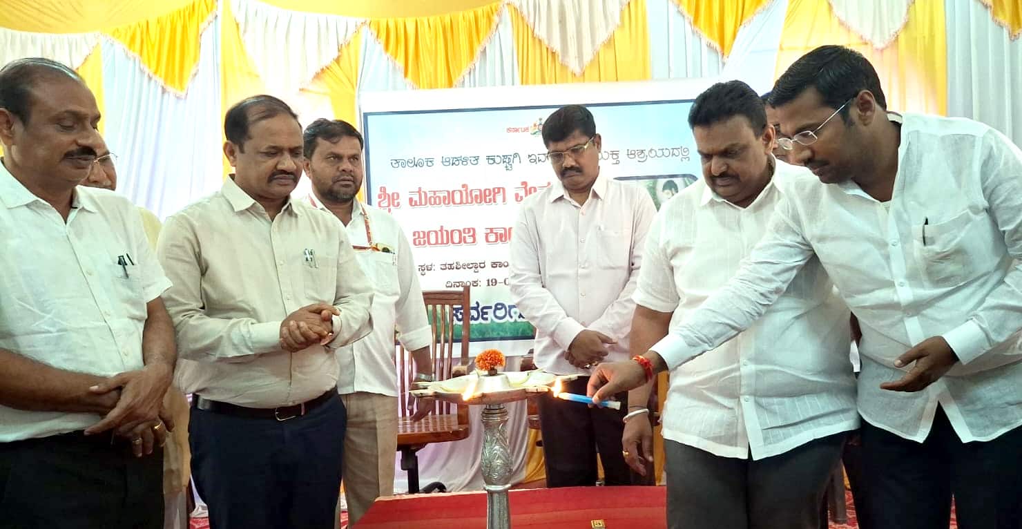 ಪಟ್ಟಣದ ತಹಸೀಲ್ದಾರ್ ಕಾರ್ಯಾಲಯದಲ್ಲಿ ನಡೆದ ವೇಮನ ಜಯಂತಿ ಕಾರ್ಯಕ್ರಮದಲ್ಲಿ ಭಾಗವಹಿಸಿ ಮಾತನಾಡಿದರು. ಕನ್ನಡದಲ್ಲಿ ಸರ್ವಜ್ಞ ತಮಿಳಿನ ತಿರುವಳ್ಳುವರ್ ಅವರಂತೆ ತೆಲುಗಿಗೆ ವೇಮನ ವಚನಕಾರರು ಮಹಾಕವಿ ಮಹಾಯೋಗಿಯಾಗಿದ್ದಾರೆ. ಮಹಾಯೋಗಿ ವೇಮನರು ಲೋಕ ಶಾಂತಿ ಸಾರಿದ ಮಹಾತ್ಮರು ಎಂದರು.ಉಪವಿಭಾಗಾಧಿಕಾರಿ ಕ್ಯಾಪ್ಟನ್ ಮಹೇಶ ಮಾಲಗಿತ್ತಿ, ಜಿಪಂ ಉಪಕಾರ್ಯದರ್ಶಿ ಟಿ. ಕೃಷ್ಣಮೂರ್ತಿ, ತಹಸೀಲ್ದಾರ್ ಅಶೋಕ ಶಿಗ್ಗಾಂವಿ, ಯುವ ಮುಖಂಡ ದೊಡ್ಡಬಸವನಗೌಡ ಬಯ್ಯಾಪುರ ಹಾಜರಿದ್ದರು.